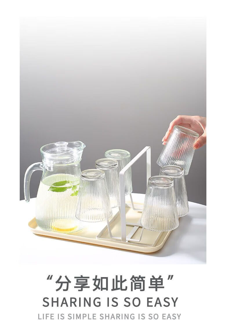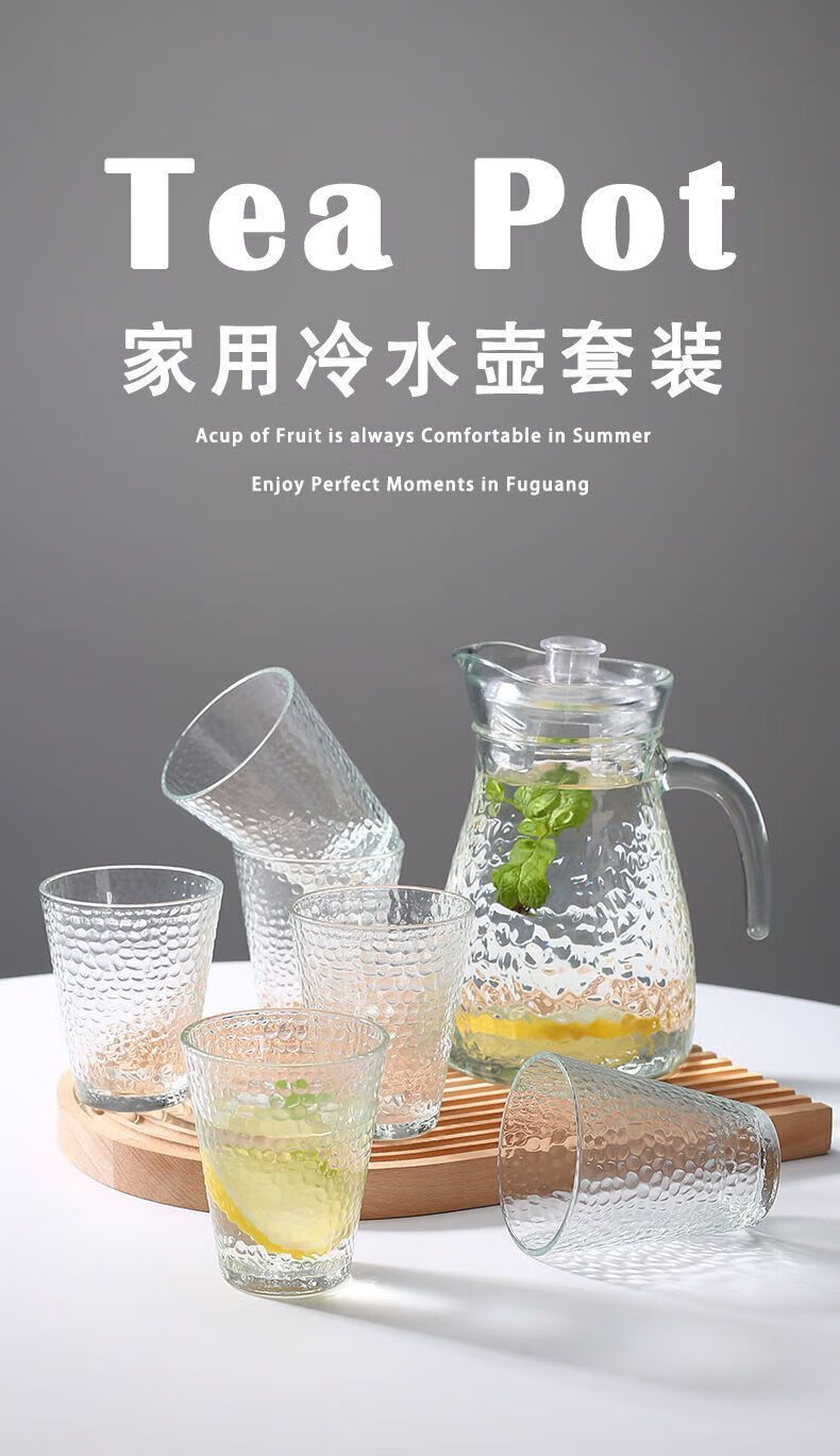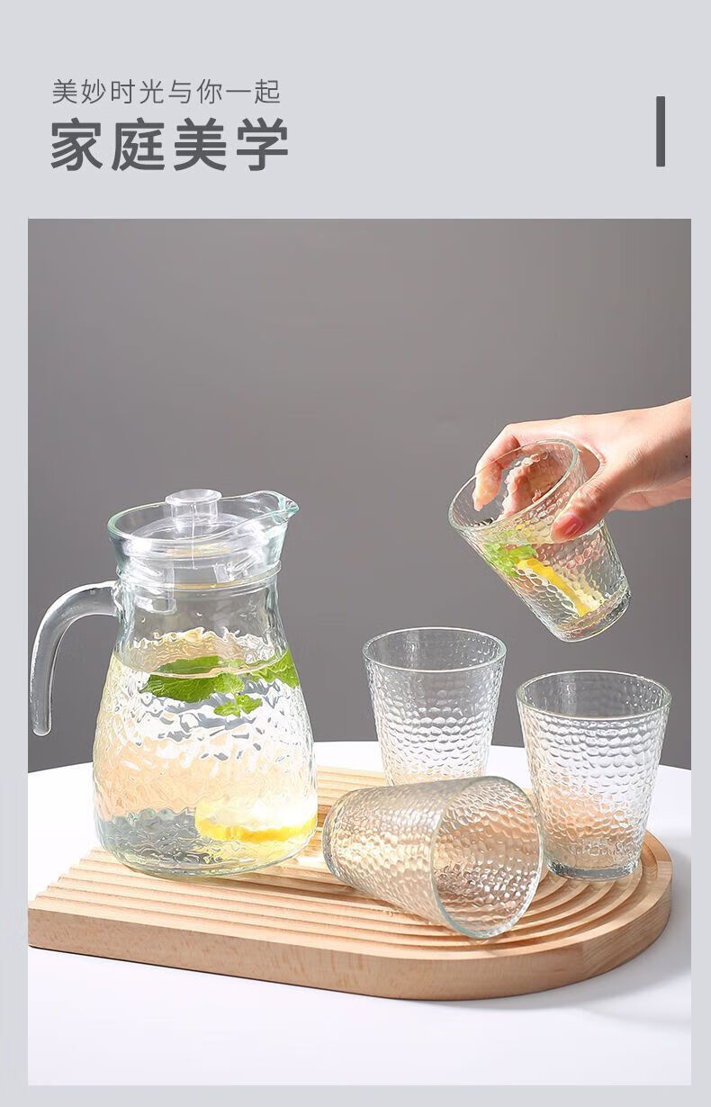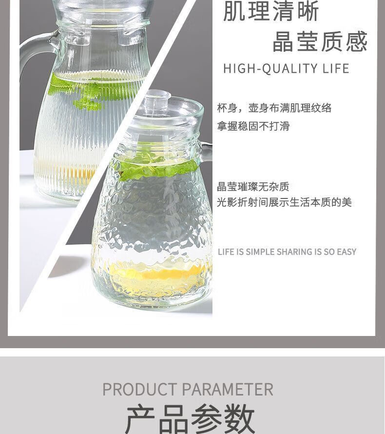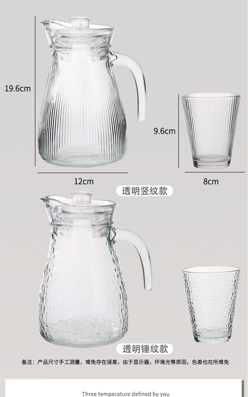 Qinkai Cold Kettle Large Capacity Cold Kettle Handle Juice Teapot Thickened Glass Kettle Cool White 1 Hammered Cold Kettle - Large Capacity 1100ml Thickened Glass