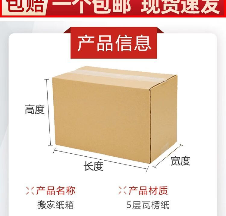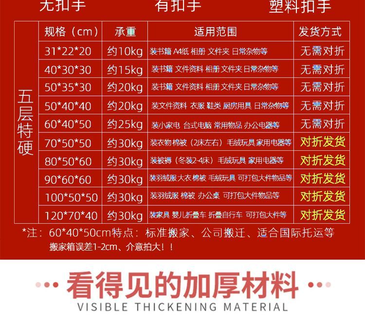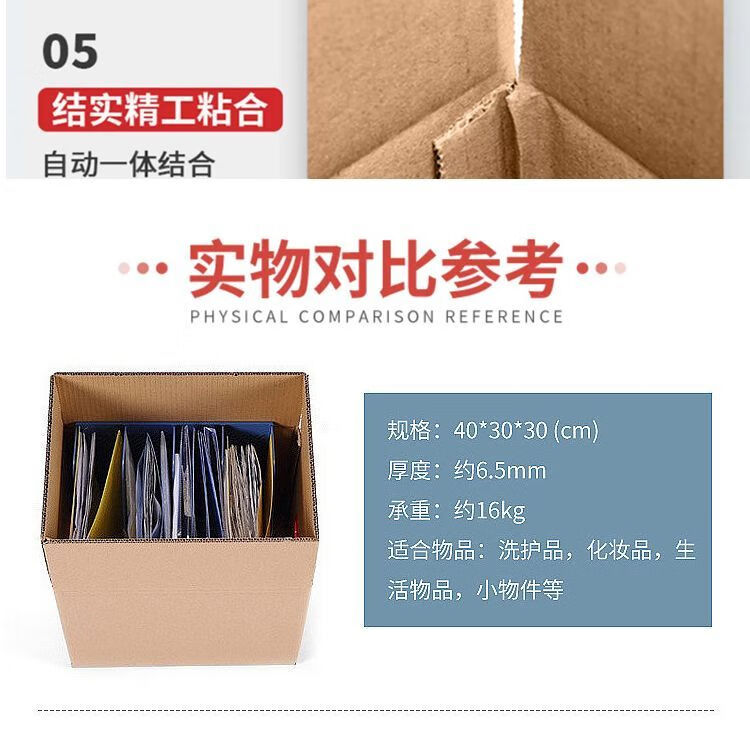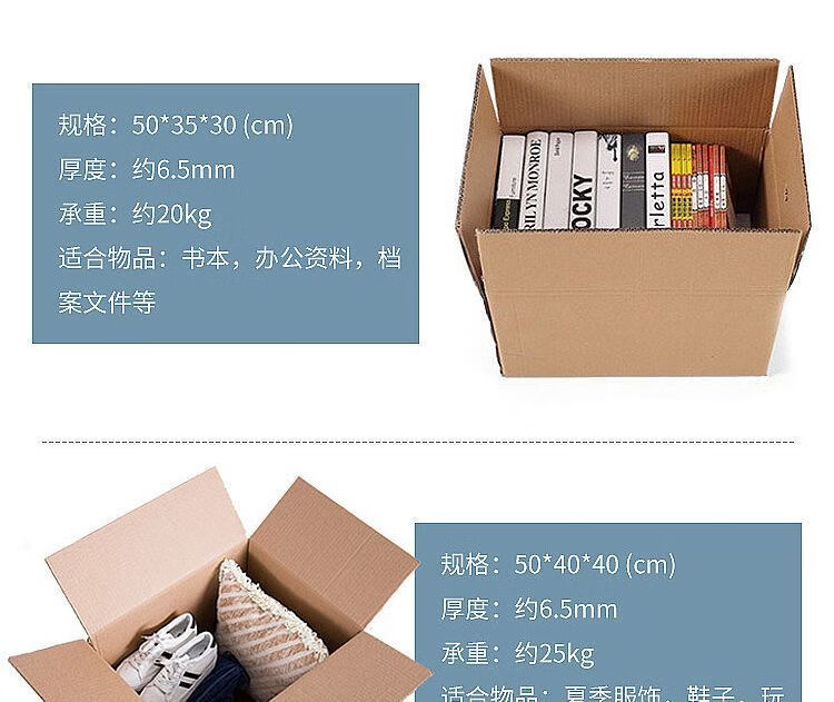 Bun Peng large carton extra large extra hard moving carton thickened household wholesale packaging express logistics packaging storage and organization 5 pieces - plastic buckle five layers extra hard 50*40*40 small items moving