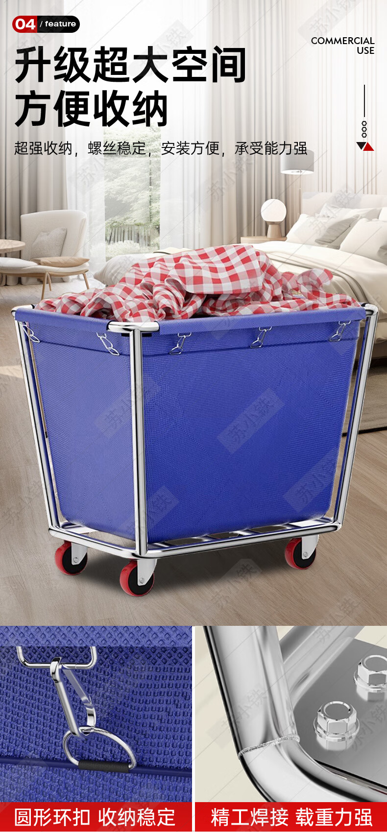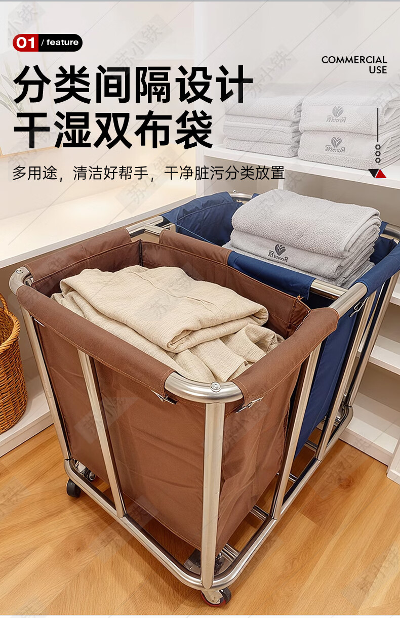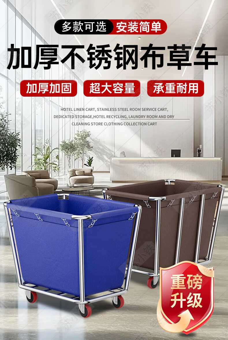 Su Xiaotie recycled linen cart, special cleaning stainless steel conical storage service cart for hotel guest laundry room, 4-inch carpet wheel-integrated welding, thickened blue 4 tubes, integral welding model