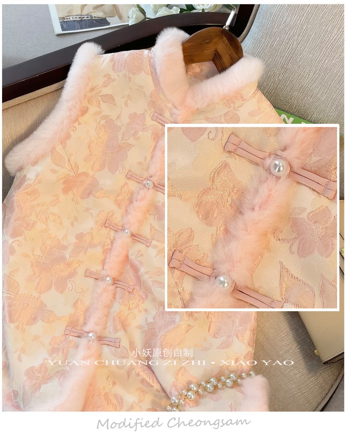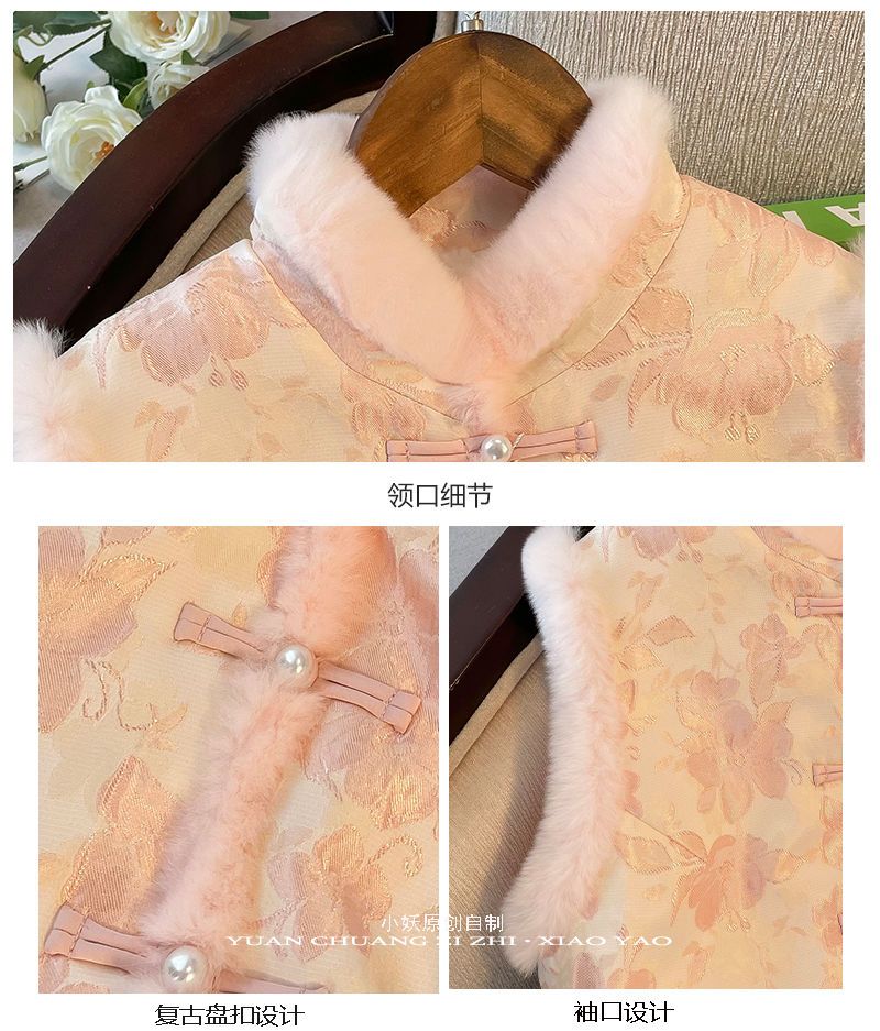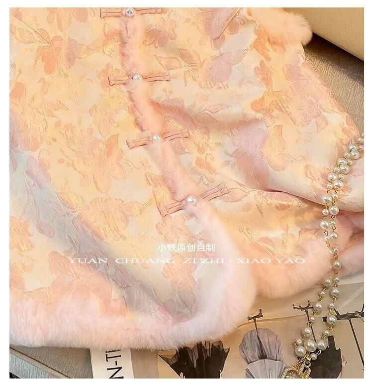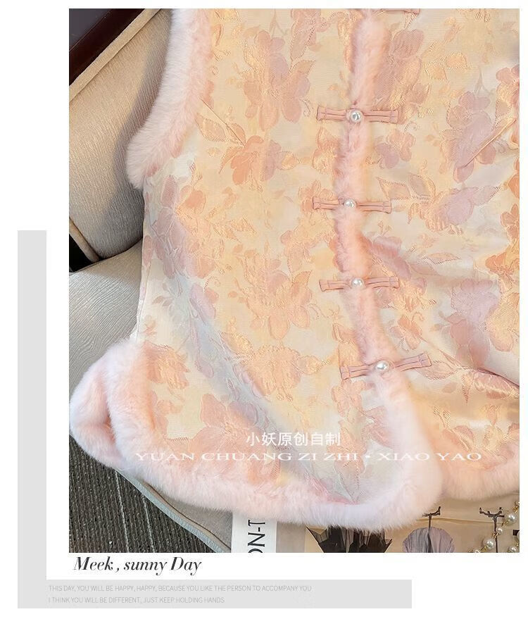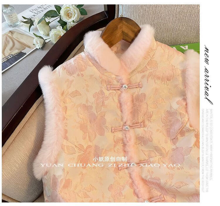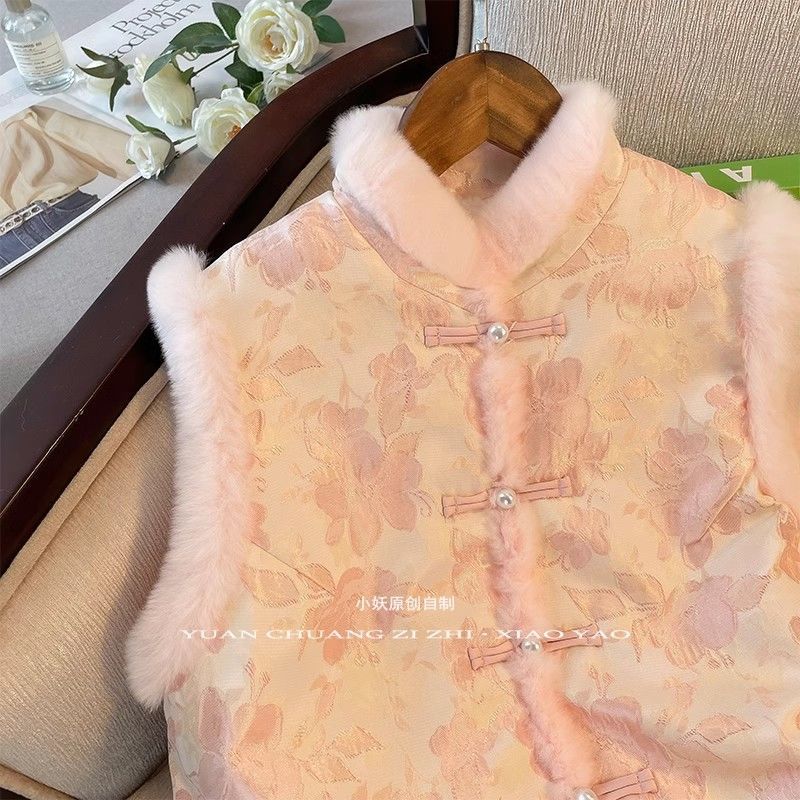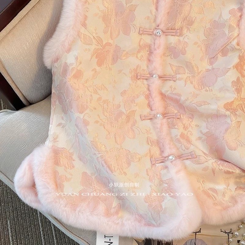 Playboy (PLAYBOY) Retro New Chinese Style National Style Thickened Velvet Improved Vest Women's Rabbit Fur Stand Collar Button Cheongsam Jacket Warm Top Pink Official Flagship Edition L