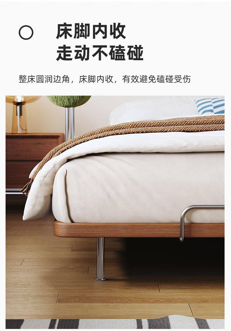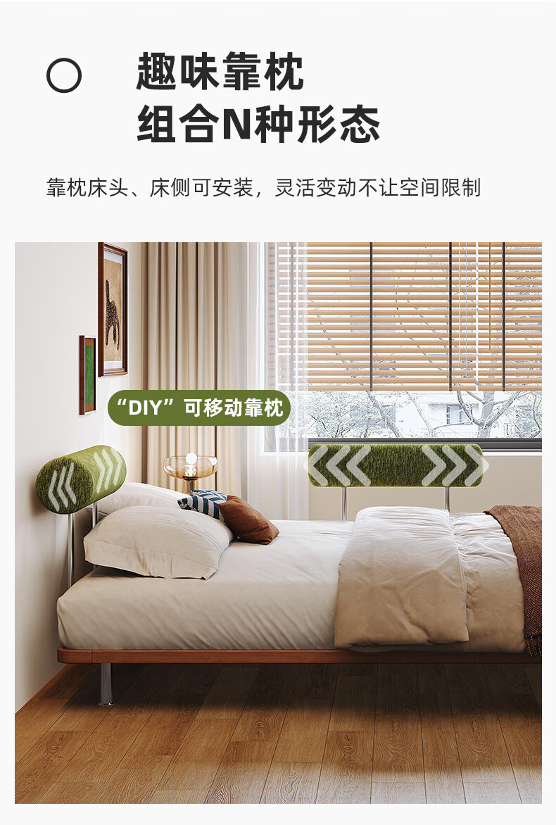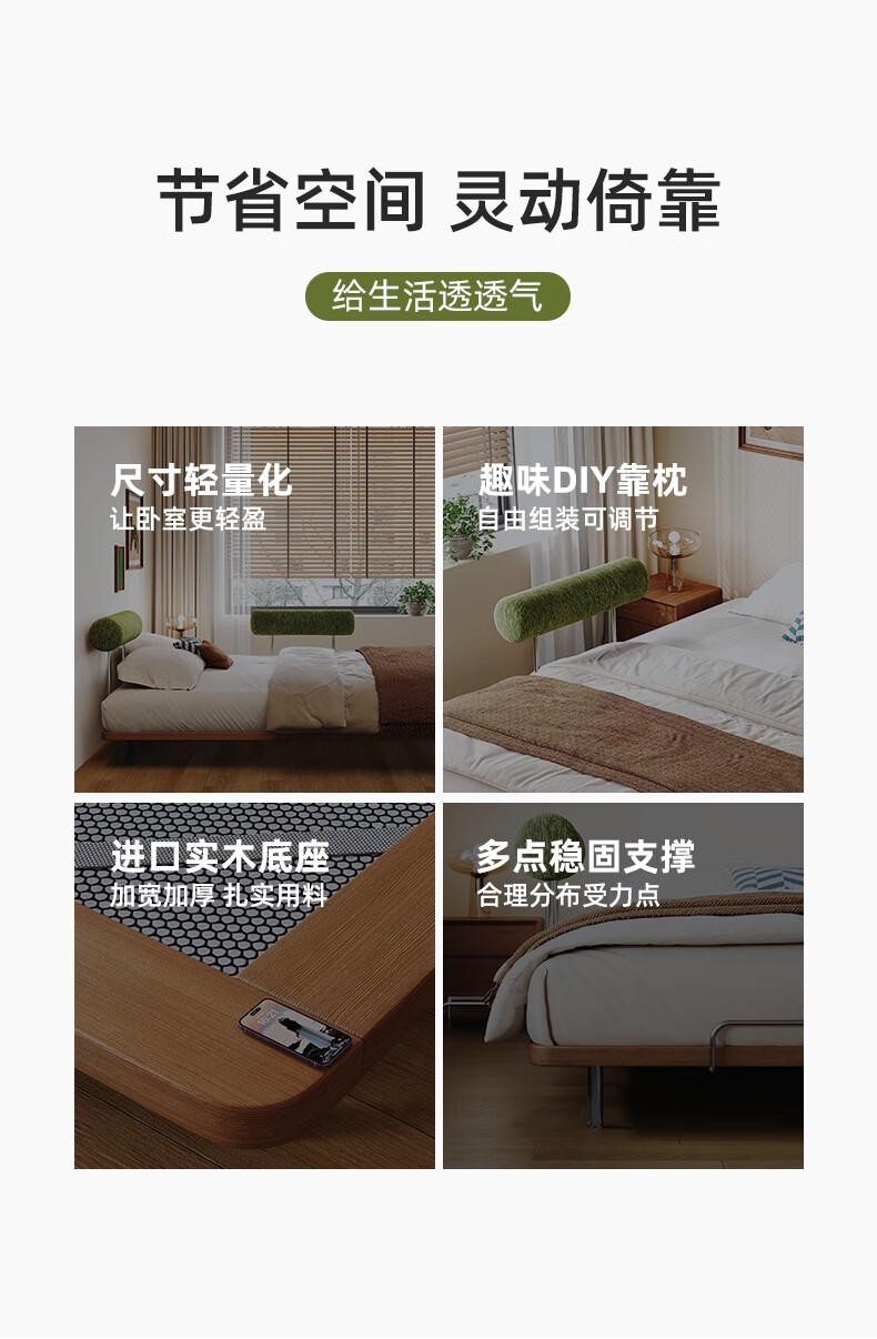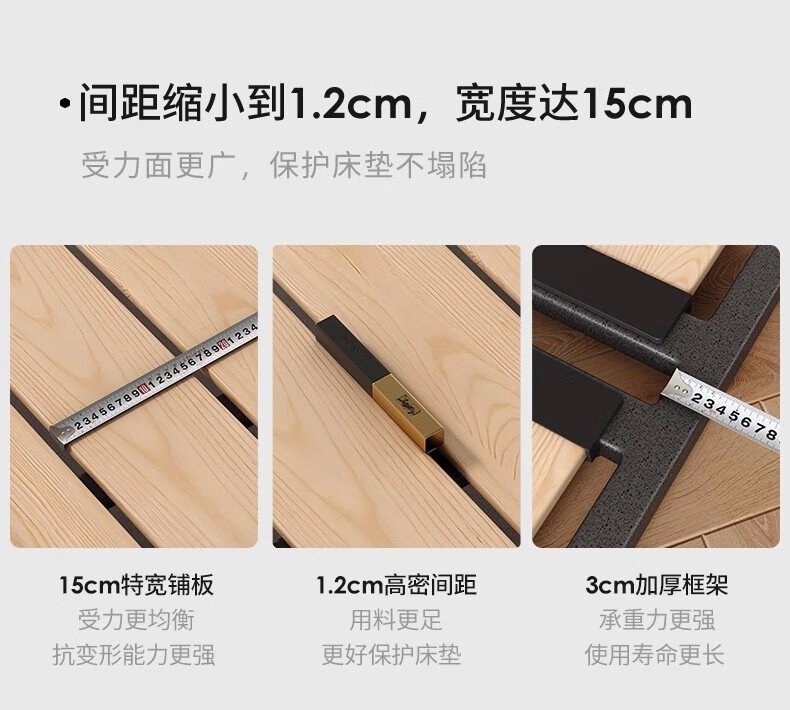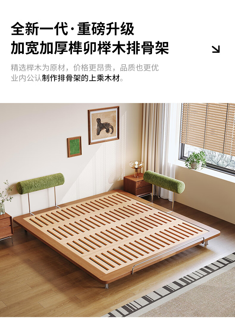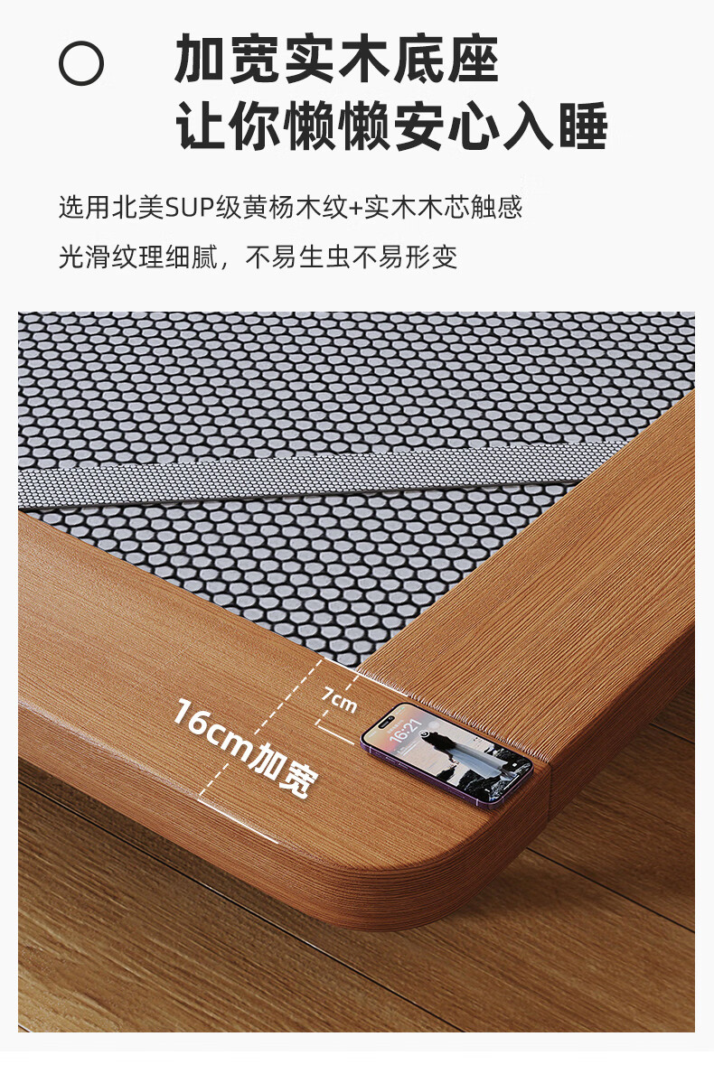 He Jiagong no bedside solid wood suspended bed mid-century style double fabric small apartment movable cushions flush side tatami bed Comfort version 15cm extra loose wooden frame single bed + 2 bedsides 1800mm*2000mm x bracket structure