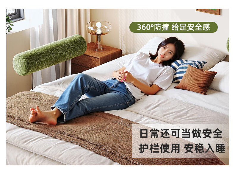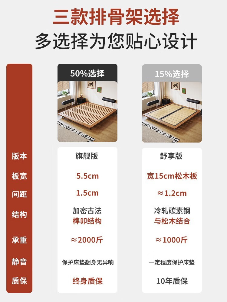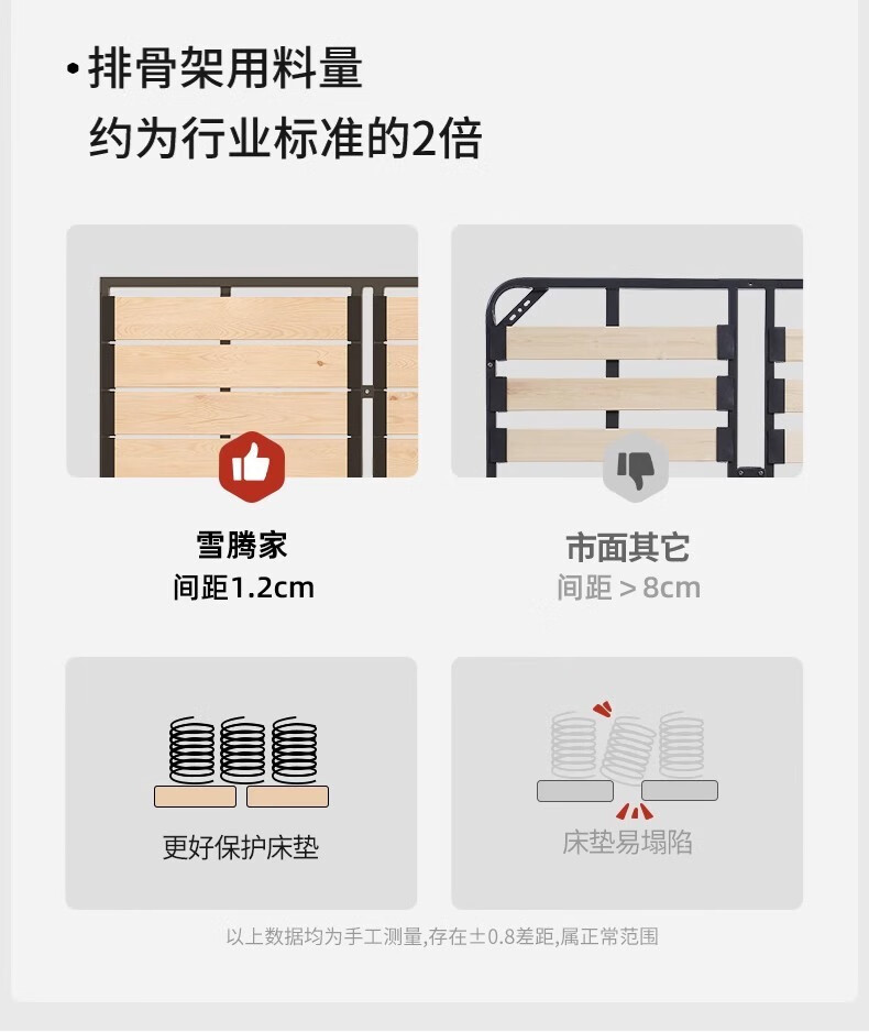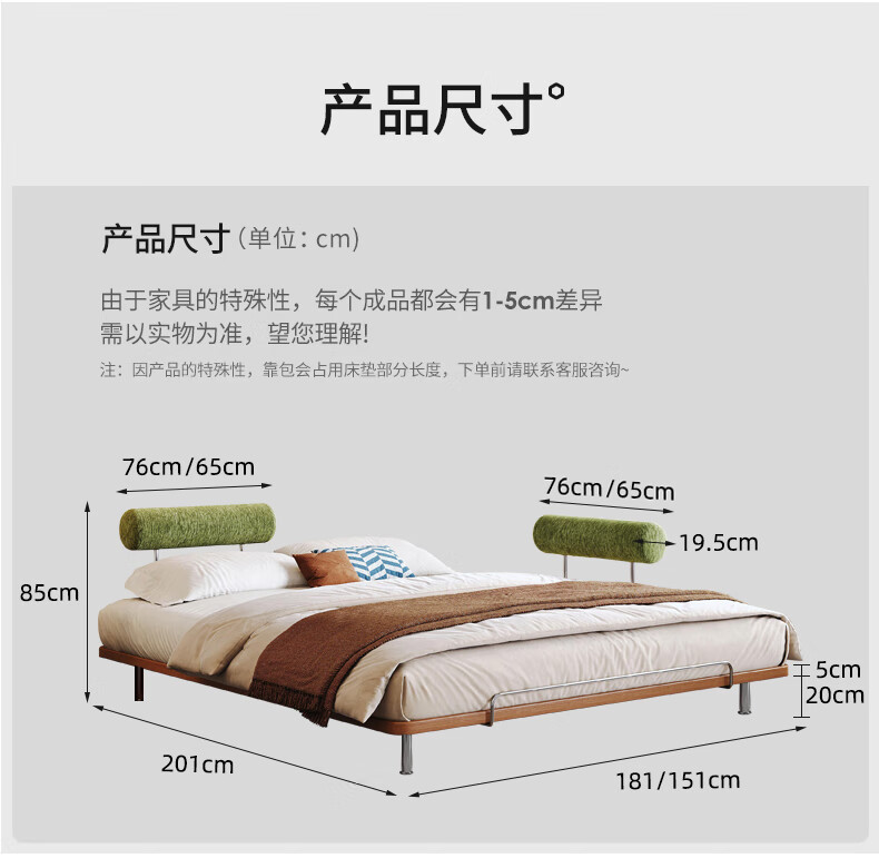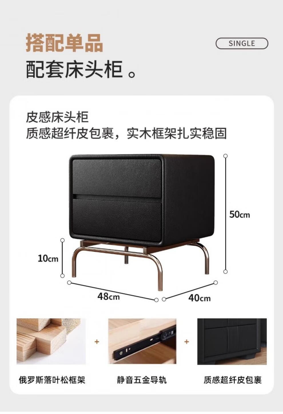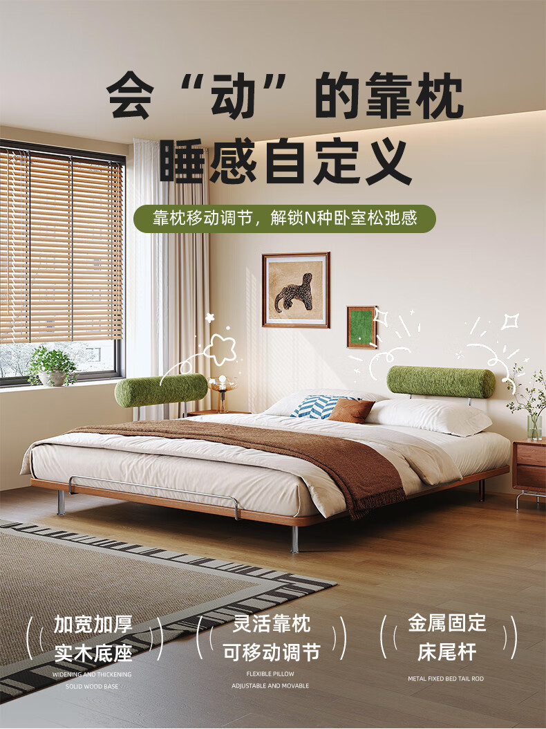 He Jiagong no bedside solid wood suspended bed mid-century style double fabric small apartment movable cushions flush side tatami bed Comfort version 15cm extra loose wooden frame single bed + 2 bedsides 1800mm*2000mm x bracket structure