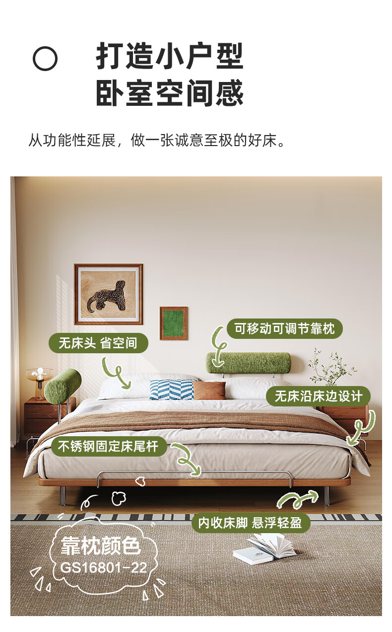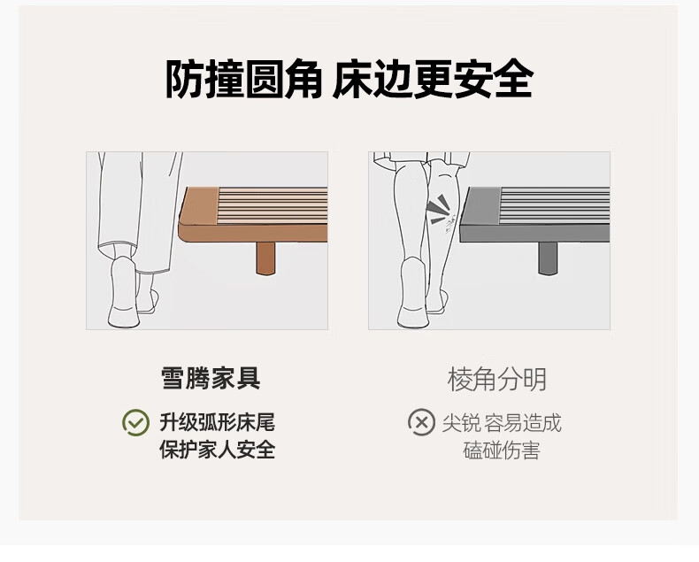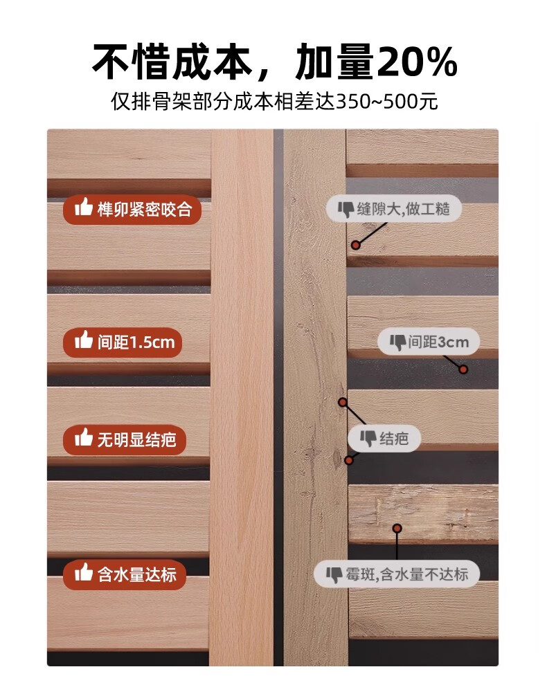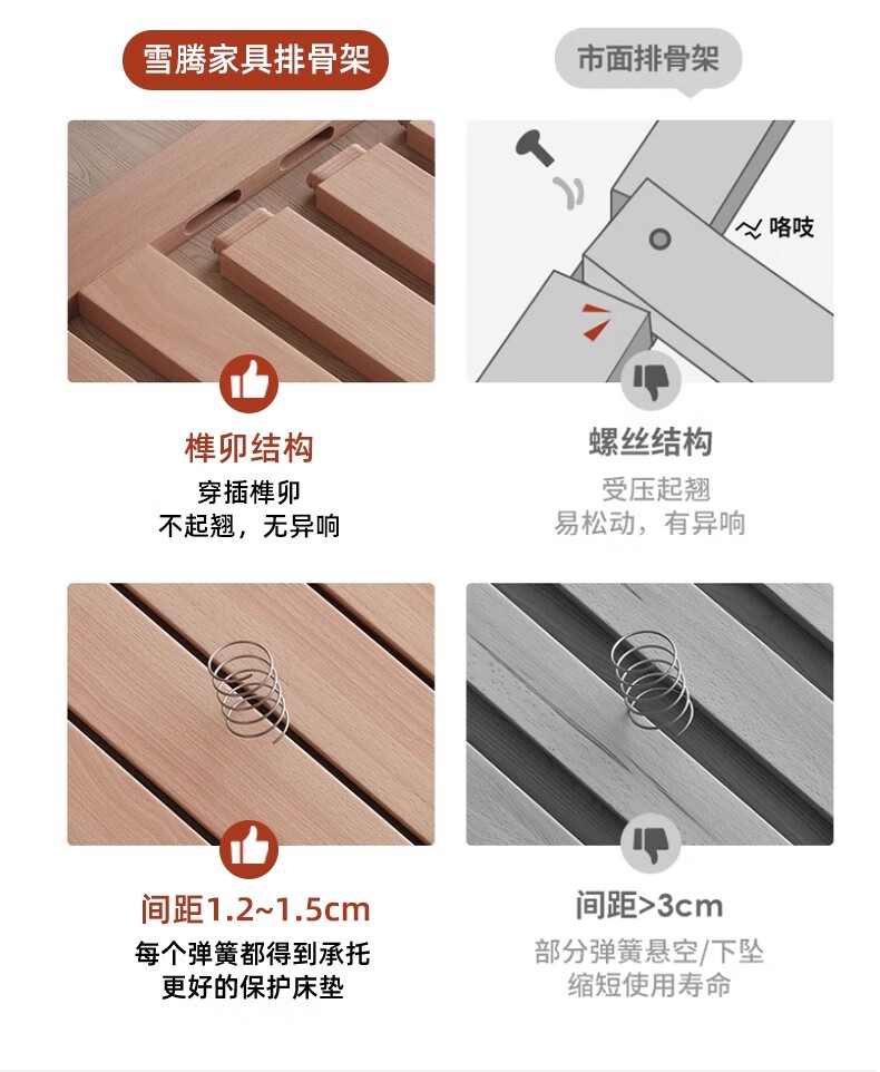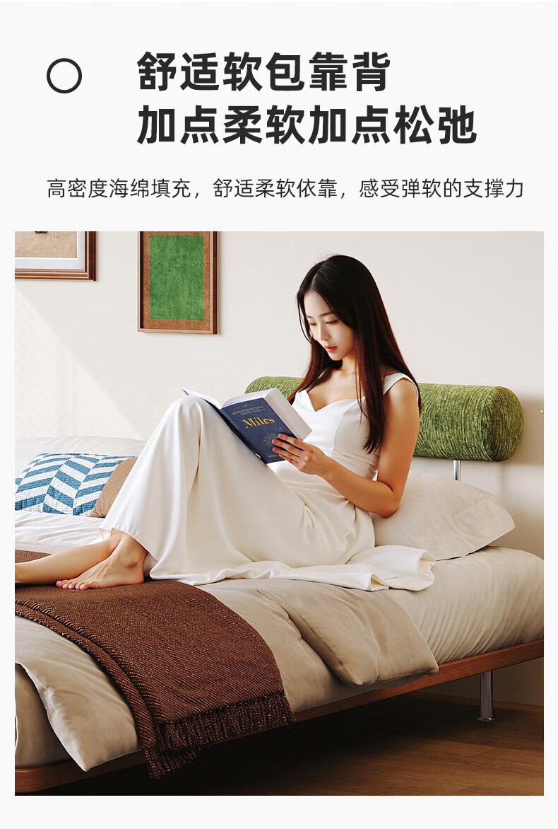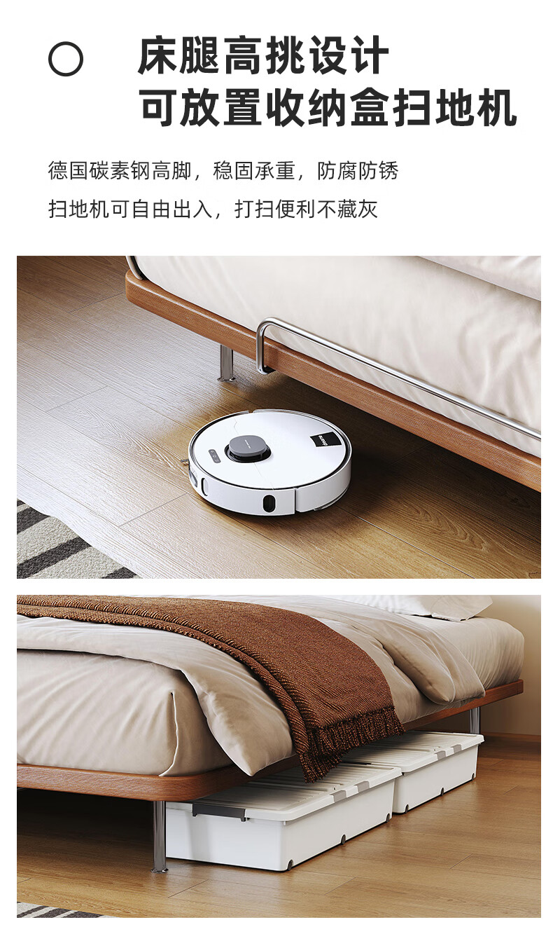 He Jiagong no bedside solid wood suspended bed mid-century style double fabric small apartment movable cushions flush side tatami bed Comfort version 15cm extra loose wooden frame single bed + 2 bedsides 1800mm*2000mm x bracket structure