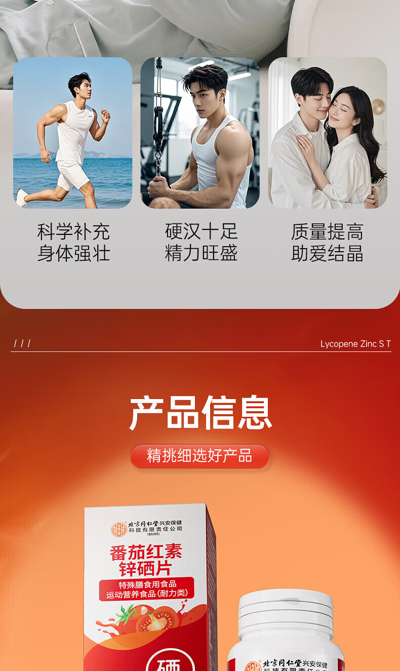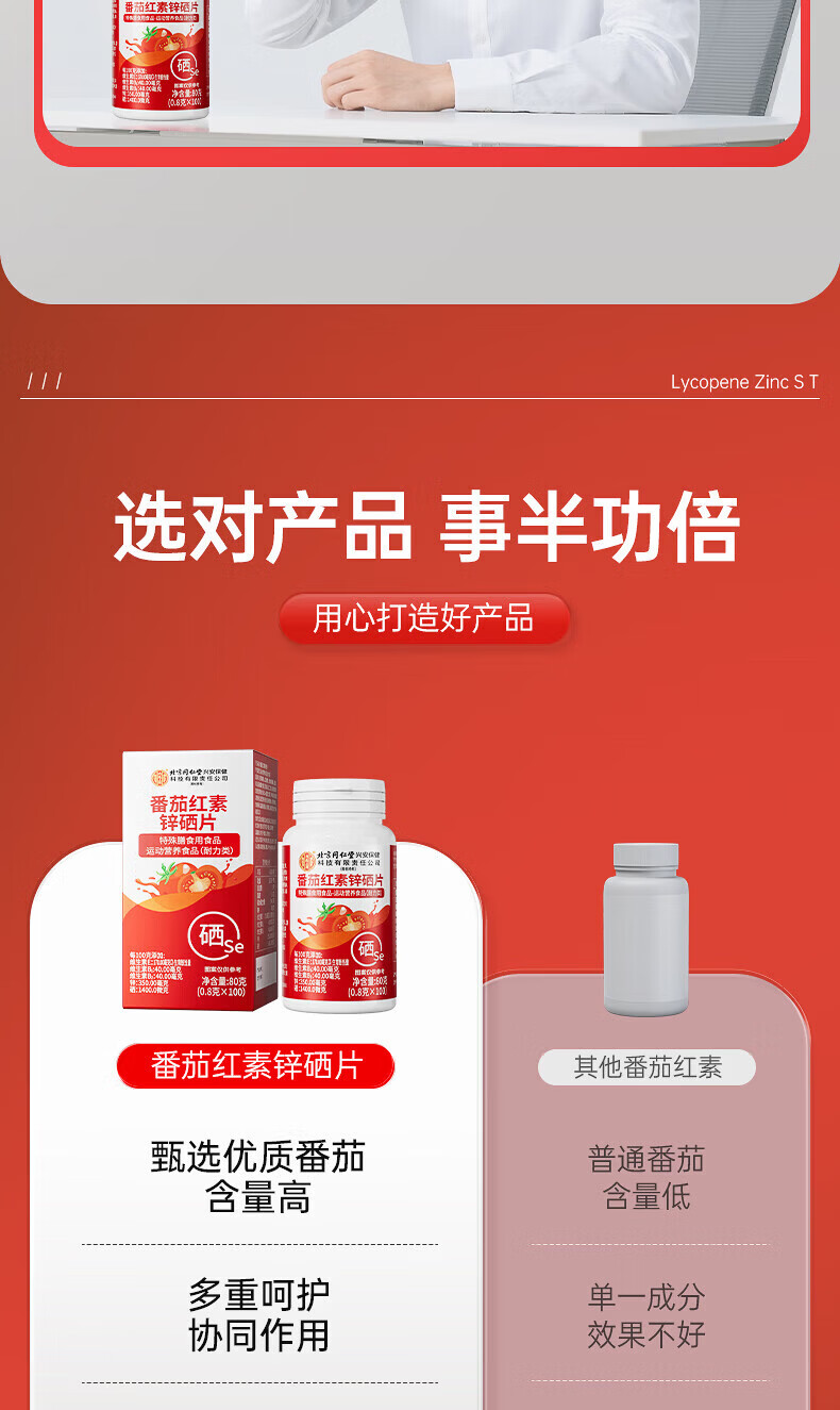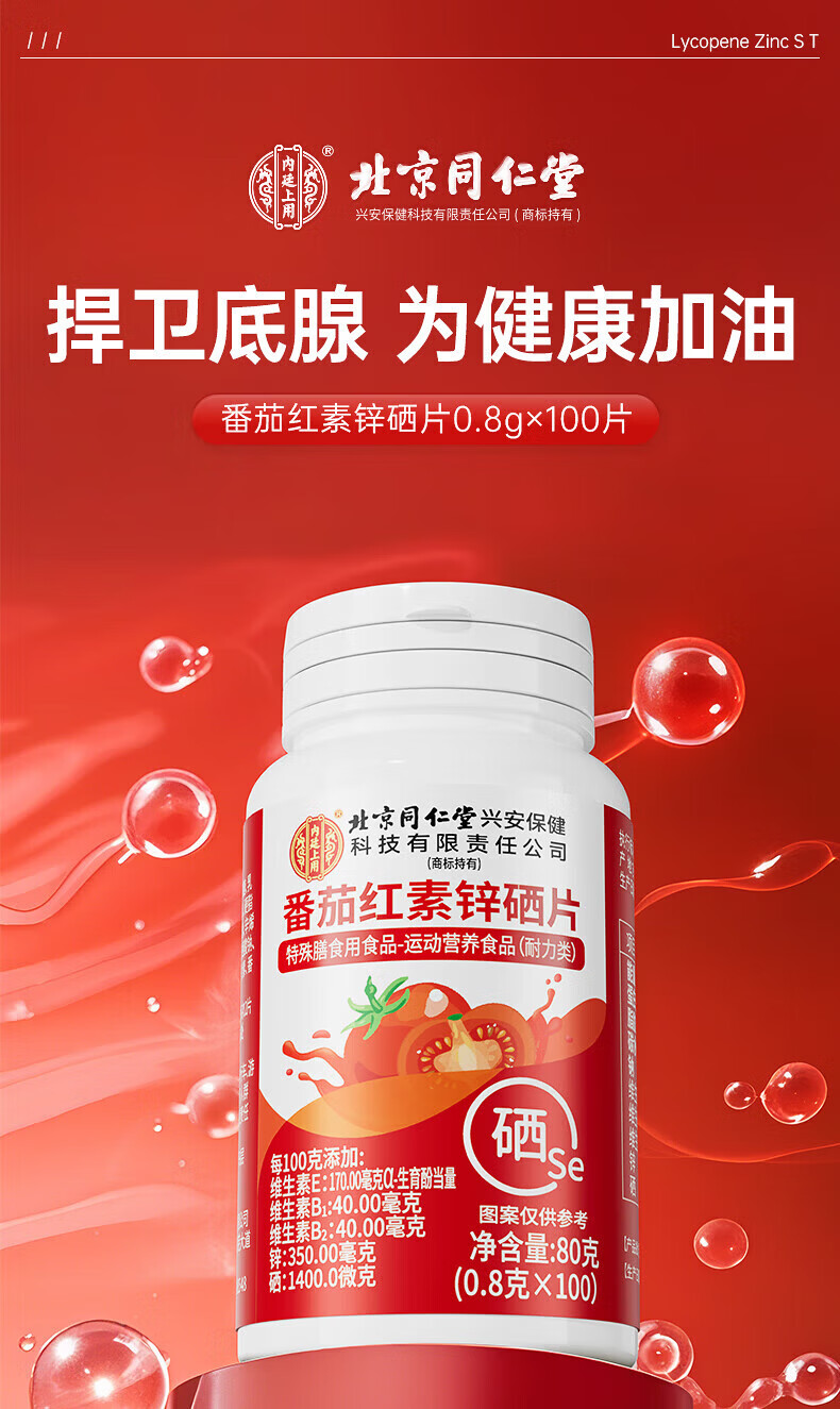 Tongrentang (TRT) Tomato Zinc and Selenium 80g 100 capsules Lycopene Zinc and Selenium Tablets Men's Zinc and Selenium Tablets Lycopene Tablets Men's Pregnancy Preparation 3 Boxes Tomato Zinc and Selenium