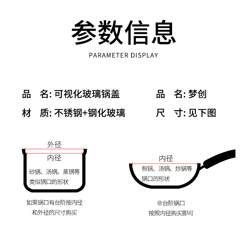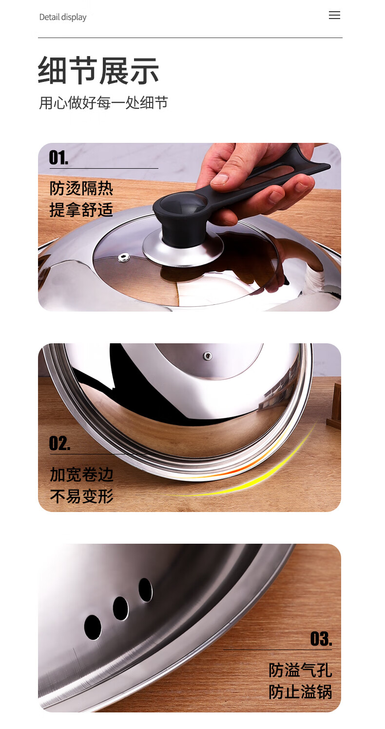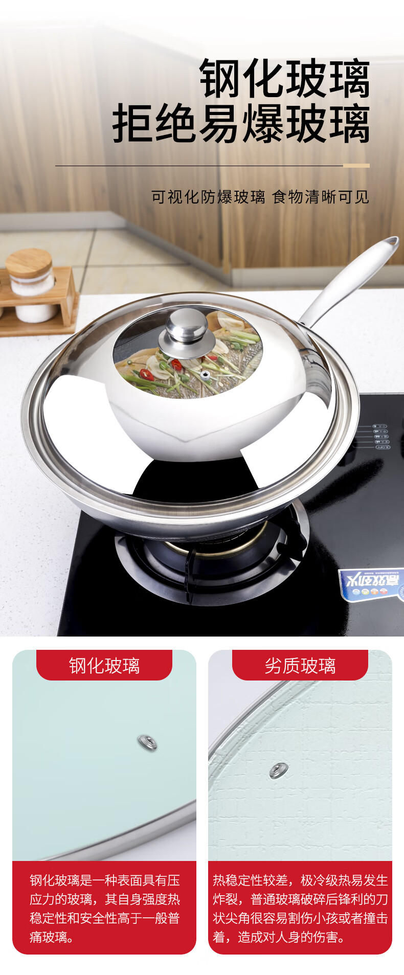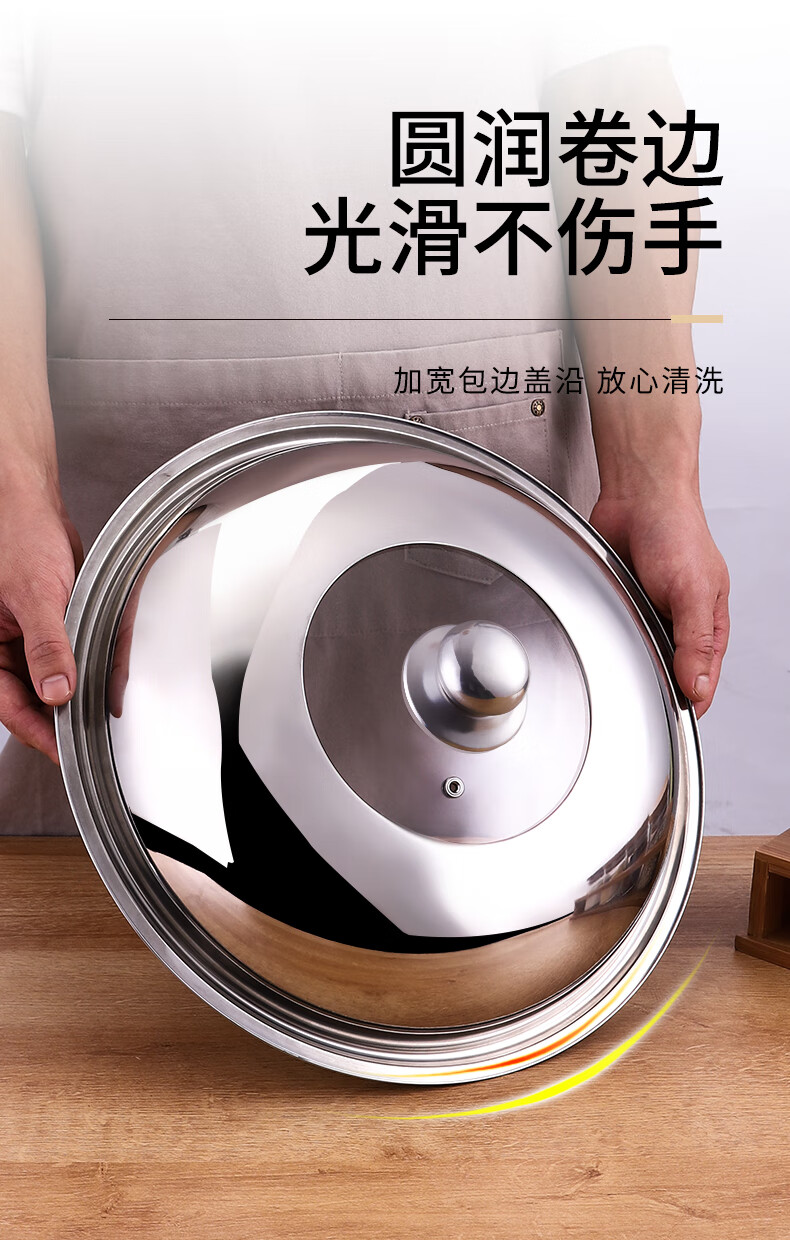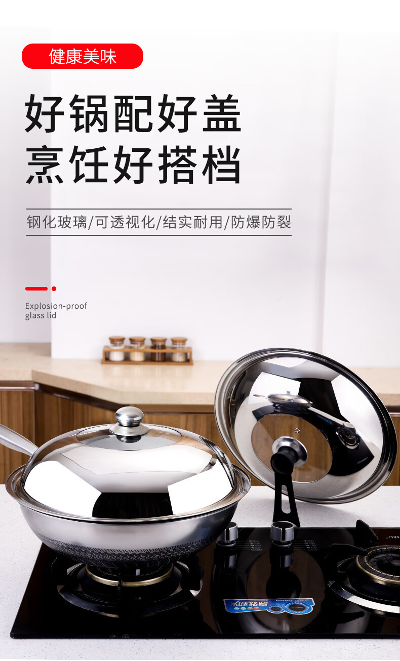 Chuangjingyi chooses stainless steel pot lid for household cooking pot lid 32cm34cm wok lid universal transparent pot lid glass lid 4MM thickened stainless steel can stand handle) 36 applicable diameter 36-37.5
