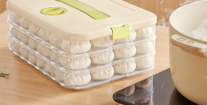 Muyou dumpling crisper refrigerator frozen household food-grade storage dumpling crisper kitchen wonton quick-frozen box dumpling storage box (2 layers) pink