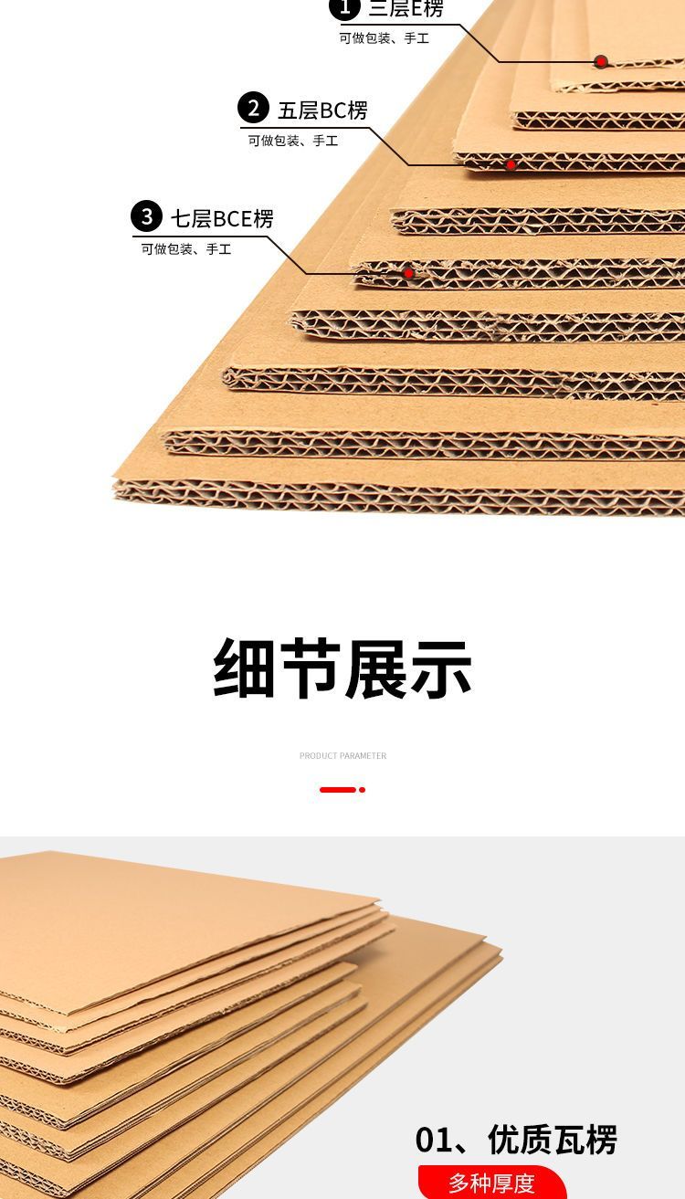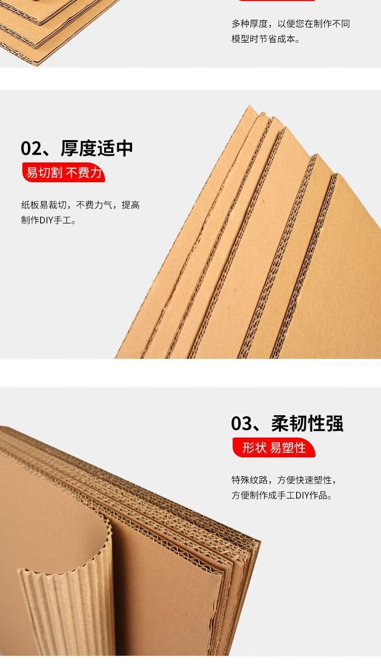 Mo Peng cardboard packaging special corrugated custom three/five/seven-layer thick kindergarten diy handmade a4 three-layer E corrugated/extra hard thin 1-2mm corrugated cardboard pads/partitions can be customized
