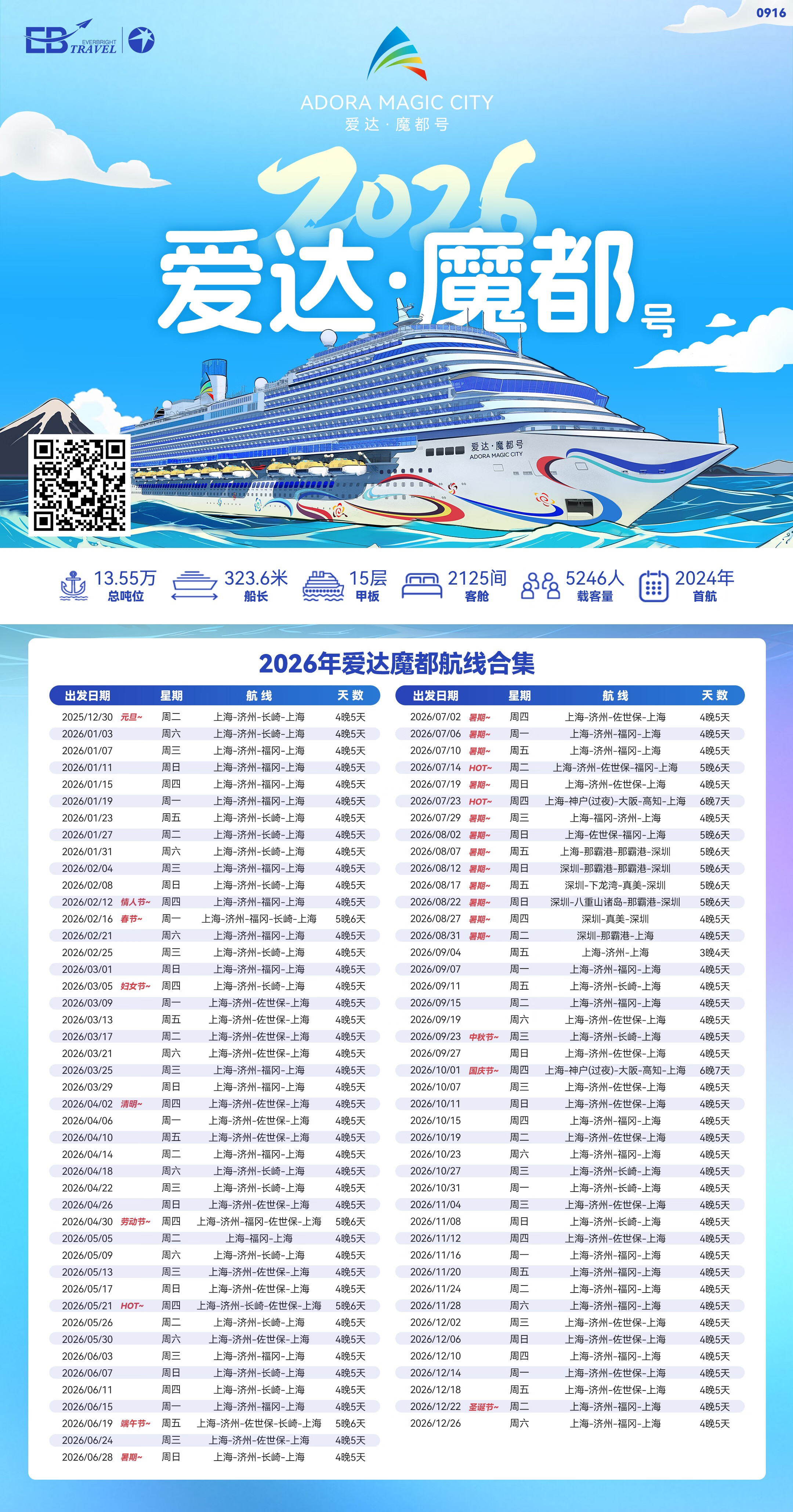(Inner cabin) Port trip: 5 days and 4 nights single person Shanghai cruise trip on the Edama City Shanghai-Jeju-Fukuoka-Shanghai 4 nights and 5 days Random inner cabin double room + 100 yuan/person Upgrade to superior inner cabin