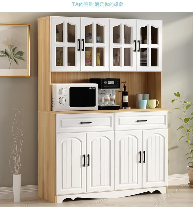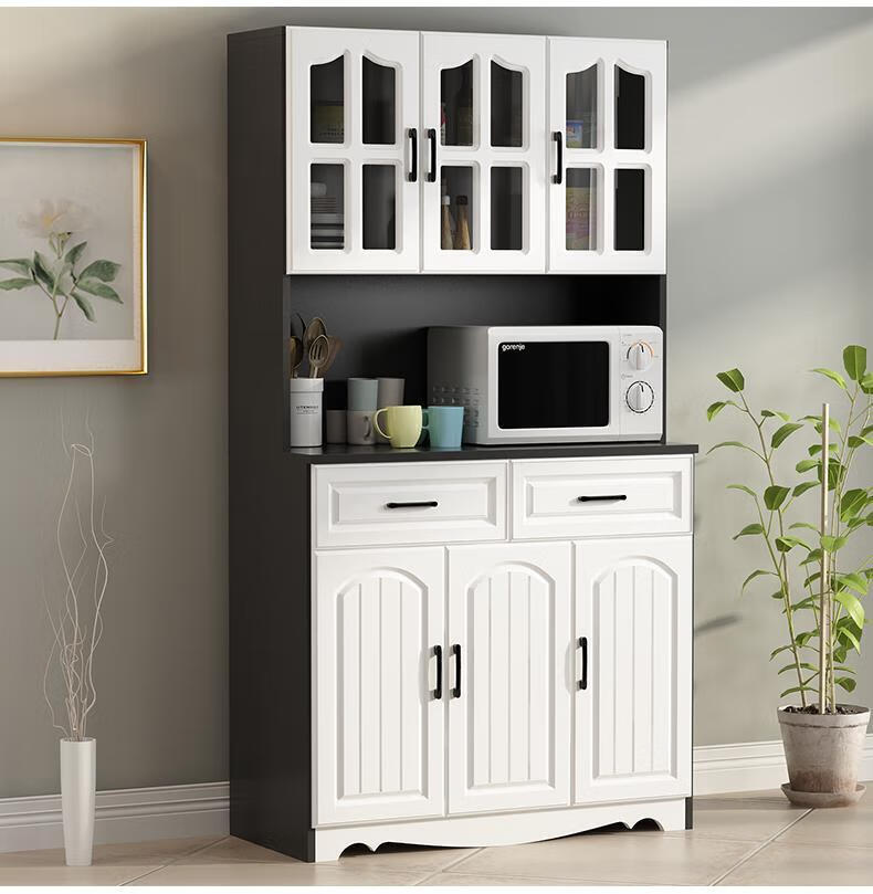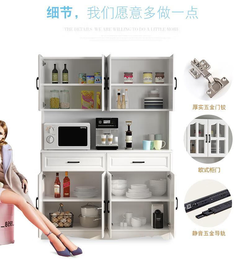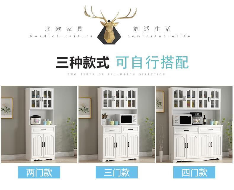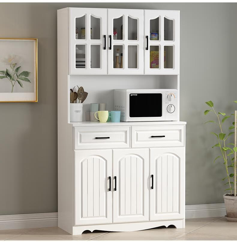 Jieyunmao European kitchen sideboard simple cupboard simple storage cabinet living room cabinet dining room tea cabinet multi-functional wine cabinet white double draw three doors 90*40*185cm-spot worry-free package master installation solid wood back panel