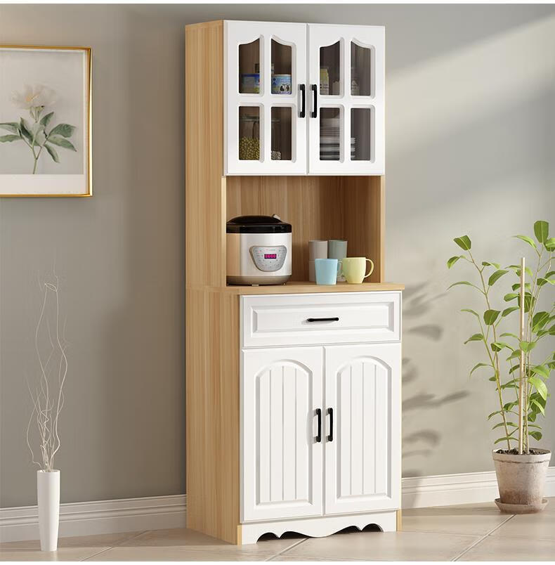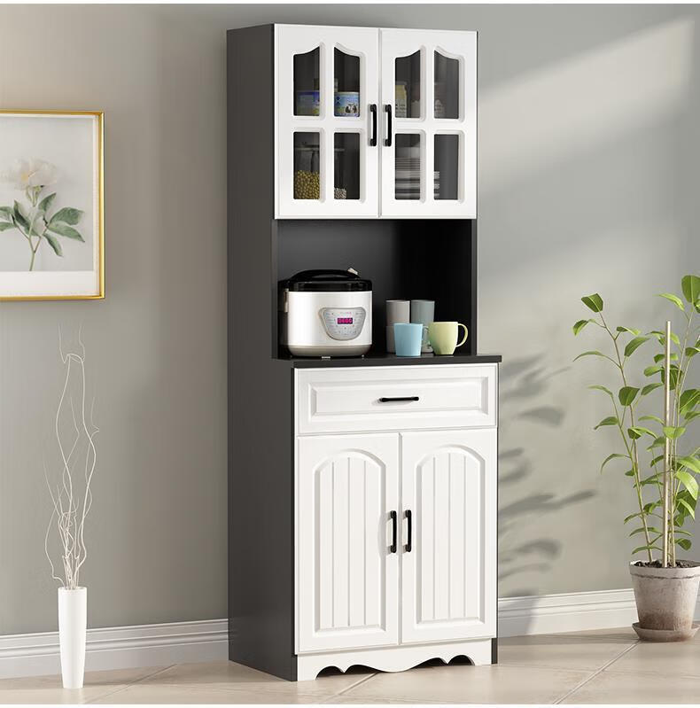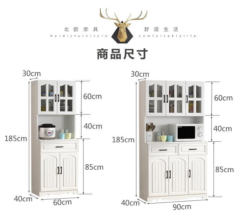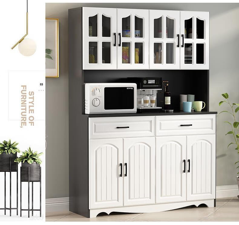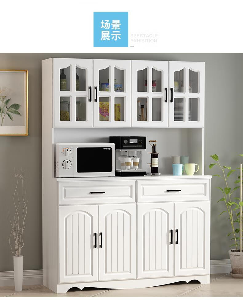 Jieyunmao European kitchen sideboard simple cupboard simple storage cabinet living room cabinet dining room tea cabinet multi-functional wine cabinet white double draw three doors 90*40*185cm-spot worry-free package master installation solid wood back panel