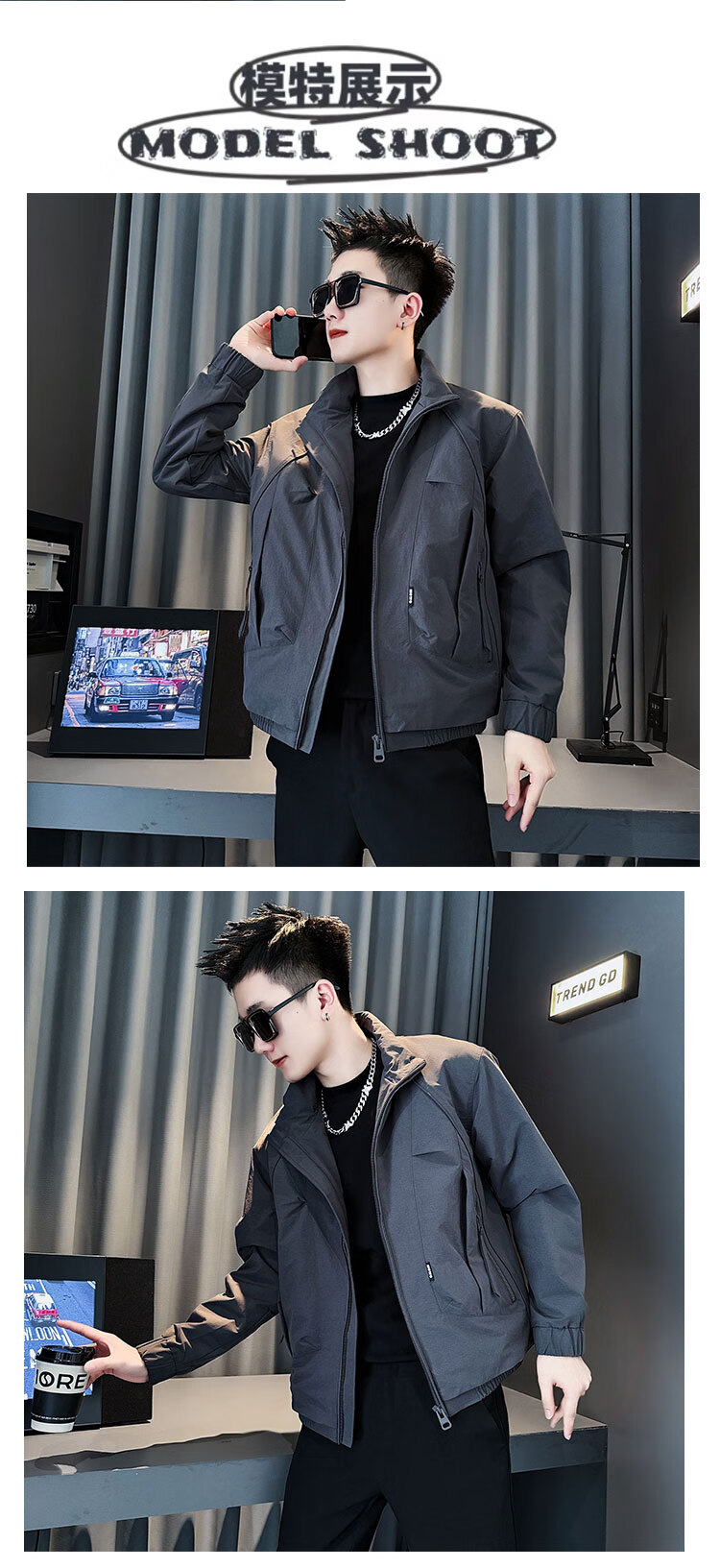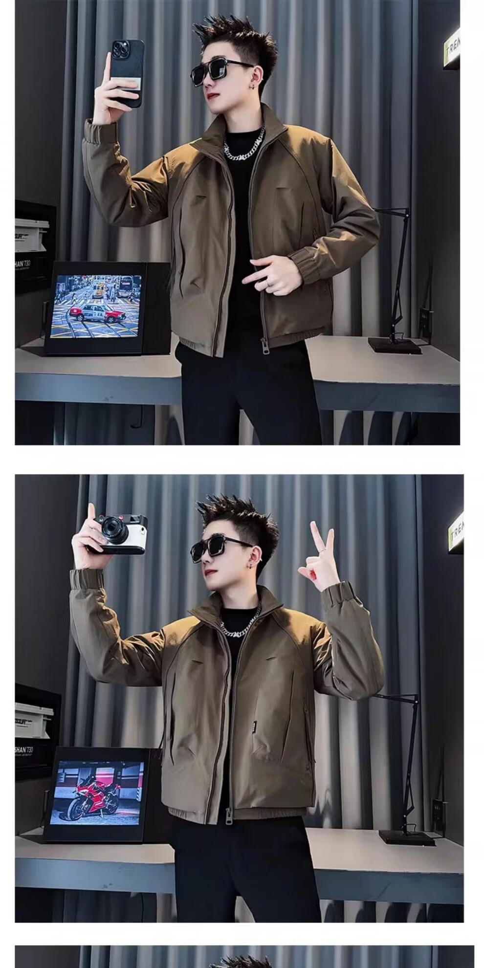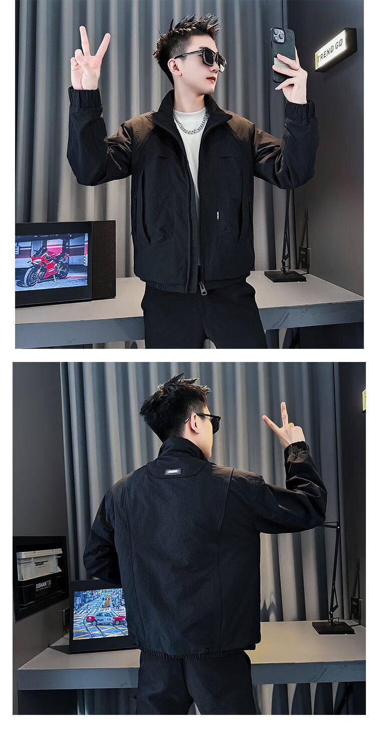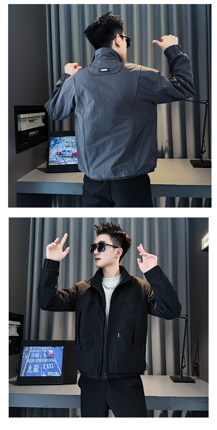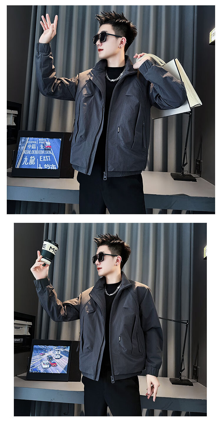 ROMON autumn and winter thickened jacket men's warm and cotton-padded jacket 2025 new high-end popular casual jacket coffee color upgraded cotton M recommended 90~110 catties