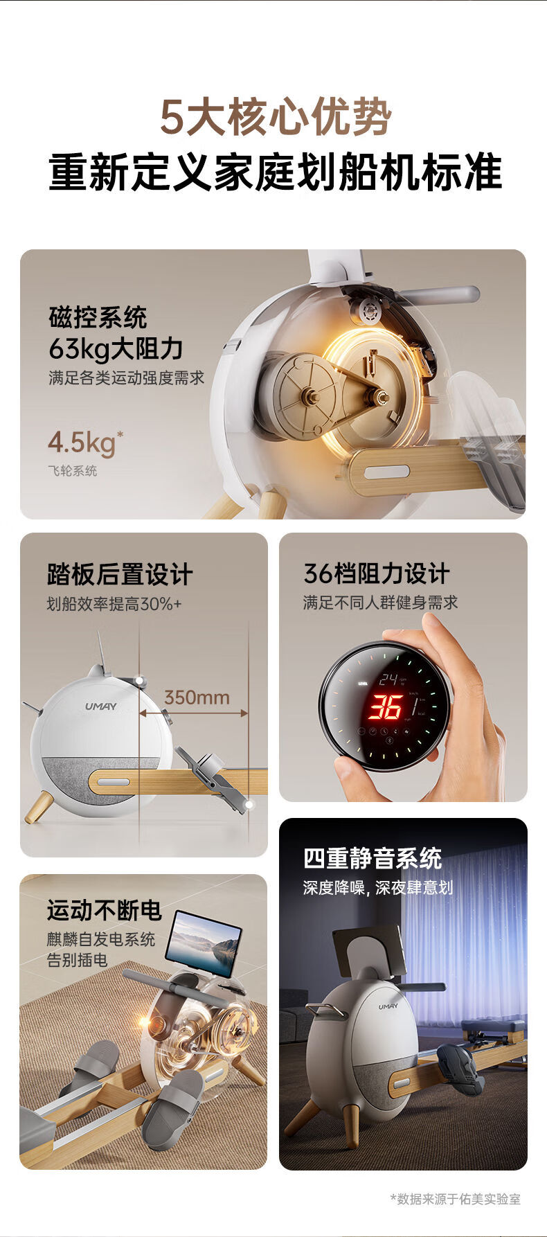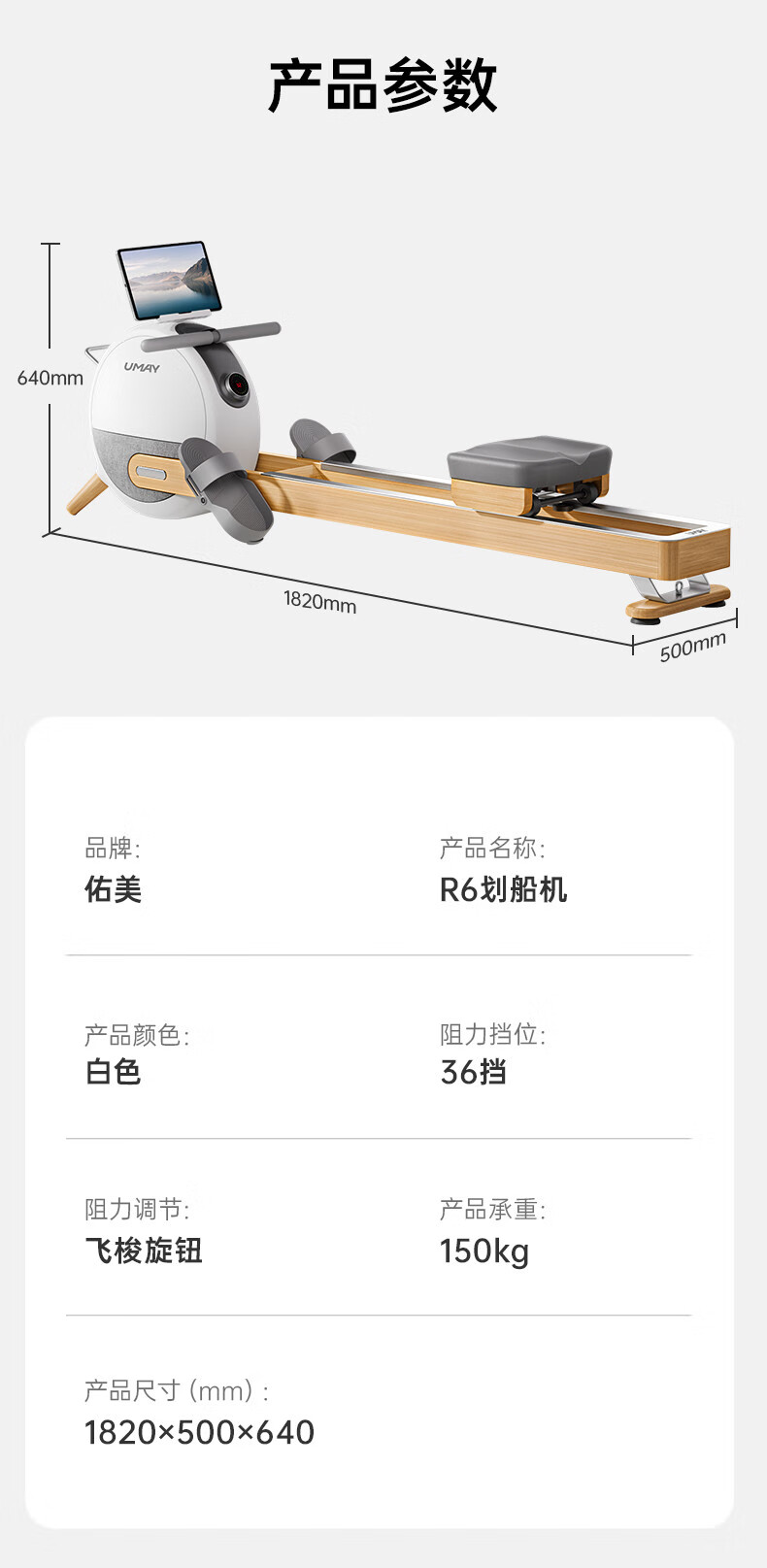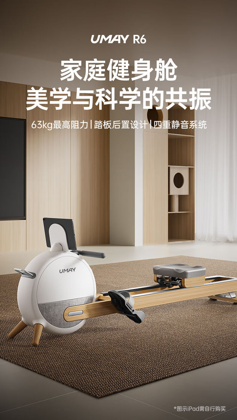 YOU MEI R6 rowing machine home fitness magnetic resistance silent comprehensive trainer intelligent boat sliding machine self-generated 36-block magnetic resistance aluminum alloy double slide rail 63KG resistance