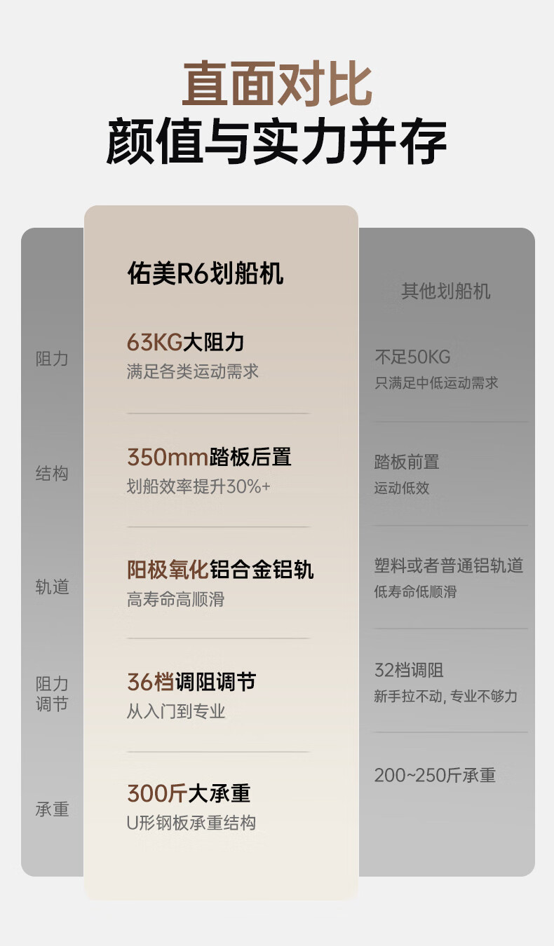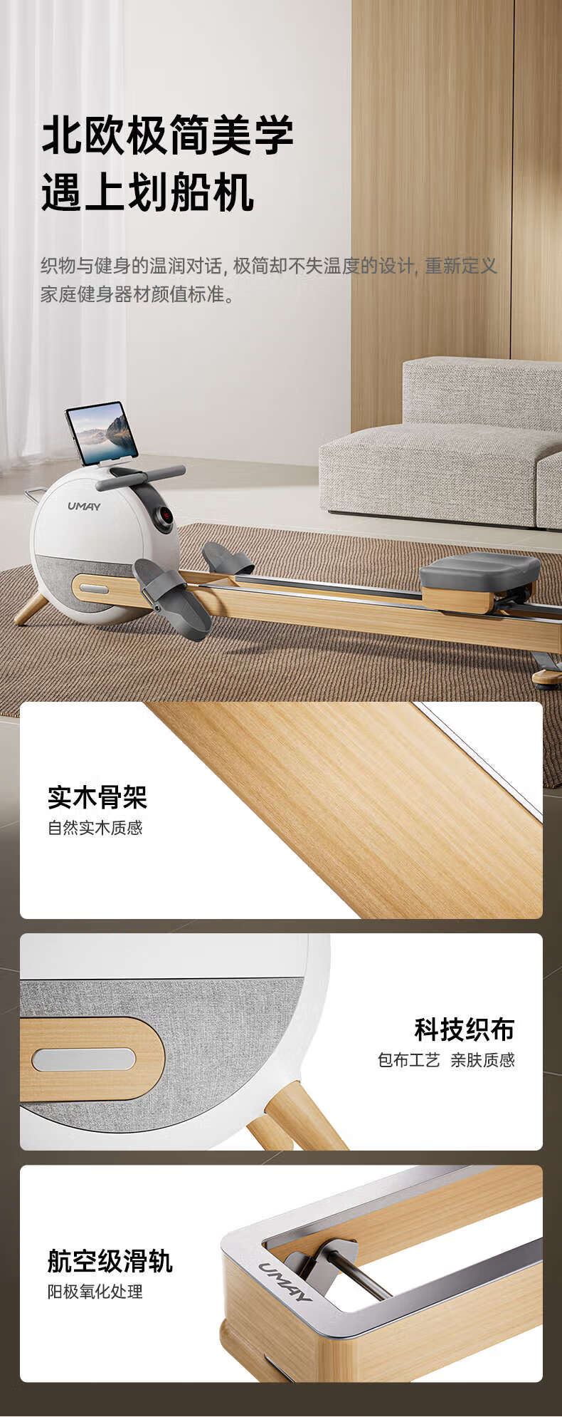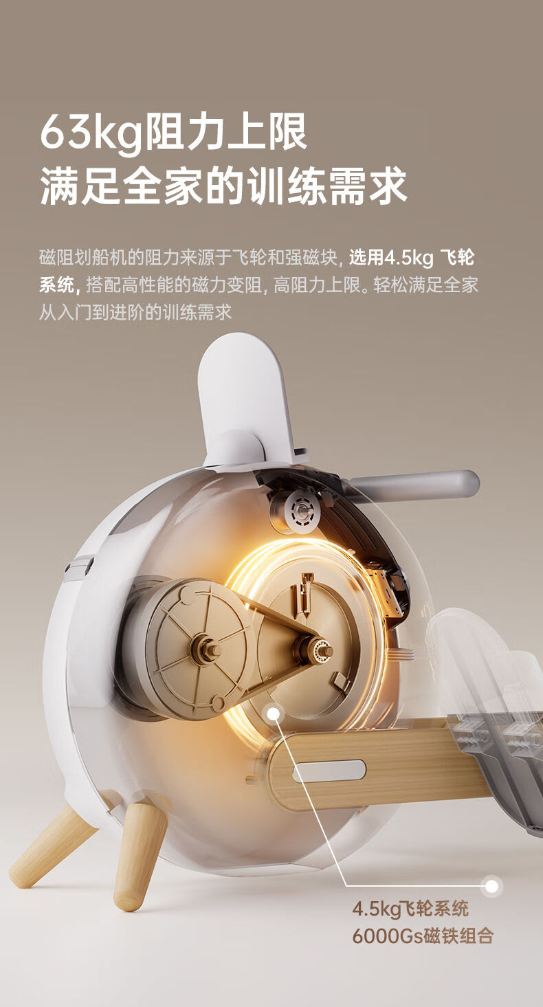 YOU MEI R6 rowing machine home fitness magnetic resistance silent comprehensive trainer intelligent boat sliding machine self-generated 36-block magnetic resistance aluminum alloy double slide rail 63KG resistance