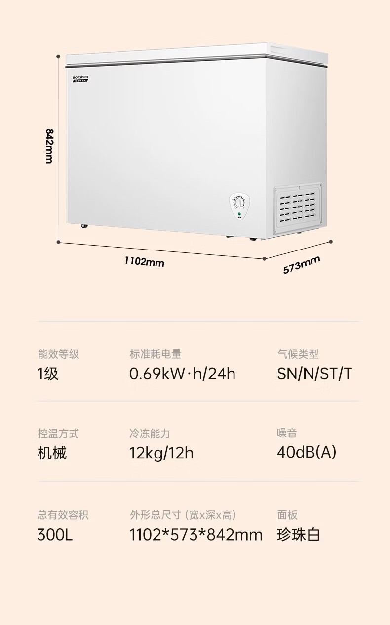 Rongsheng New Product Rongsheng 300 Large Capacity Freezer Home Refrigerated Freezer Single Temperature Energy Saving Freezer 300 New White 300L