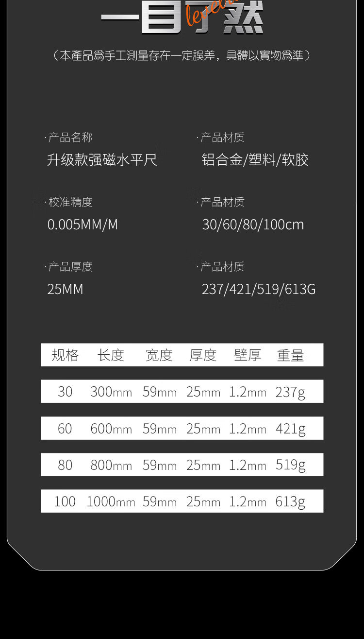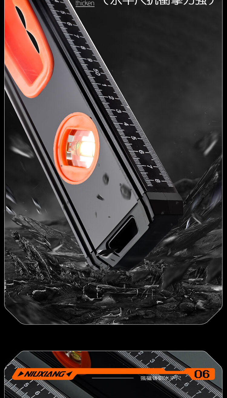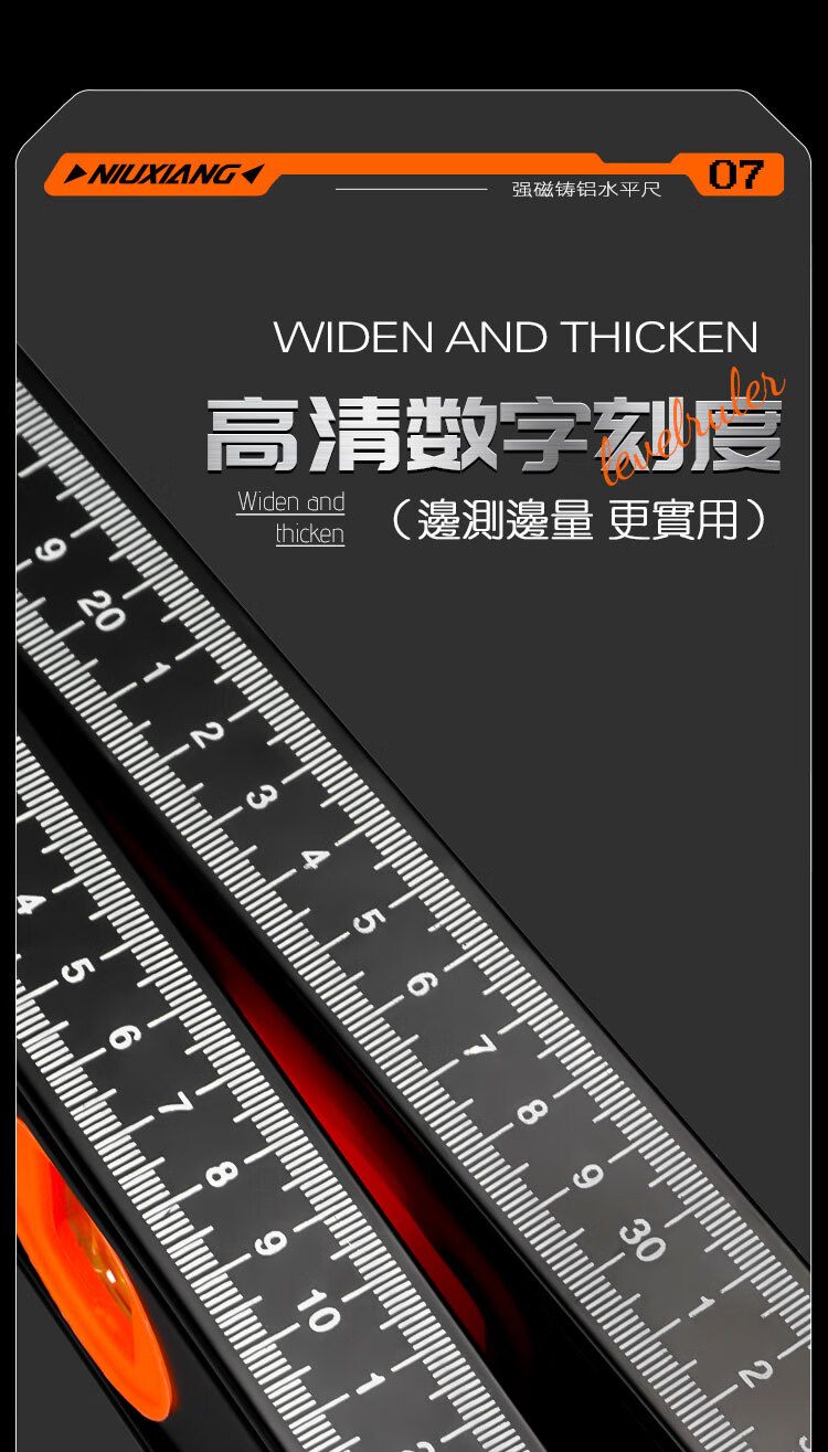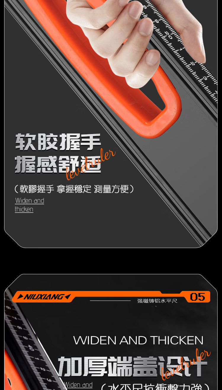 Niuxiang household level high-precision small with strong magnetic mini multi-functional flat water level aluminum alloy ruler level 800mm strong magnetic cast aluminum high-precision level