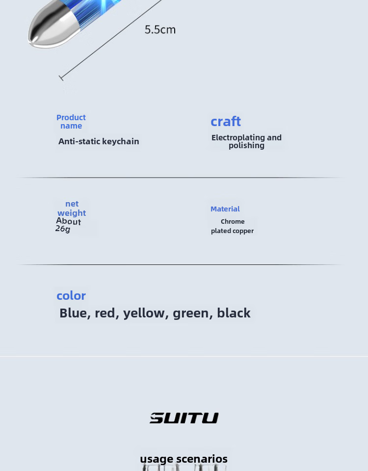 Xinyatong Static Eliminator Human Body Electrostatic Discharge Anti-static Artifact Car Static Removal Keychain Discharge Static Pen Blue-Upgraded Anti-static Keychain Level 2