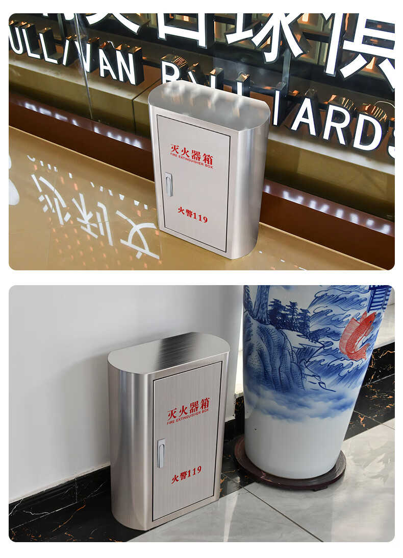 Longxiaoda arc-shaped stainless steel fire extinguisher box 4kg 5kg 2-pack special fire extinguisher box for shopping malls, hotels and schools 4-5kg stainless steel fire extinguisher box standard