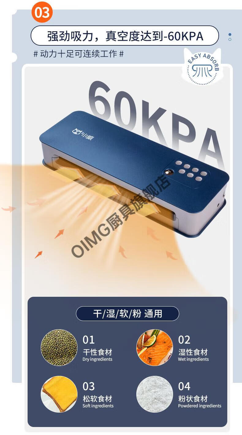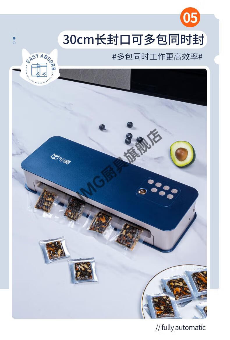 OGBI Commercial Fully Automatic Vacuum Sealing Machine Small Household Vacuum Machine Sealing Food Packaging Preservation Machine Fully Automatic No Pressing Top Version Xiaowei Blue Gets 4