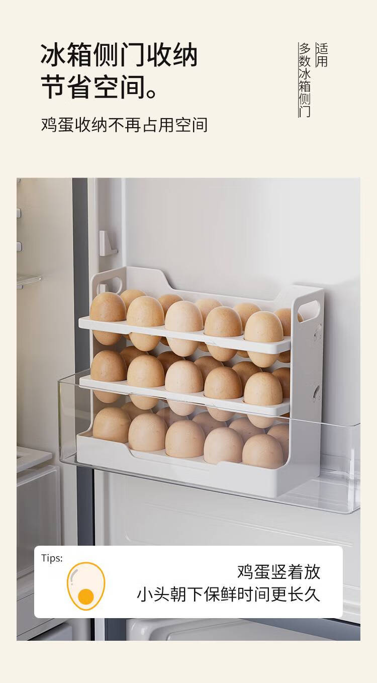 The fantasy organizer recommends the refrigerator side door egg storage box egg storage box for eggs special storage rack storage box white three layers can store 30 eggs