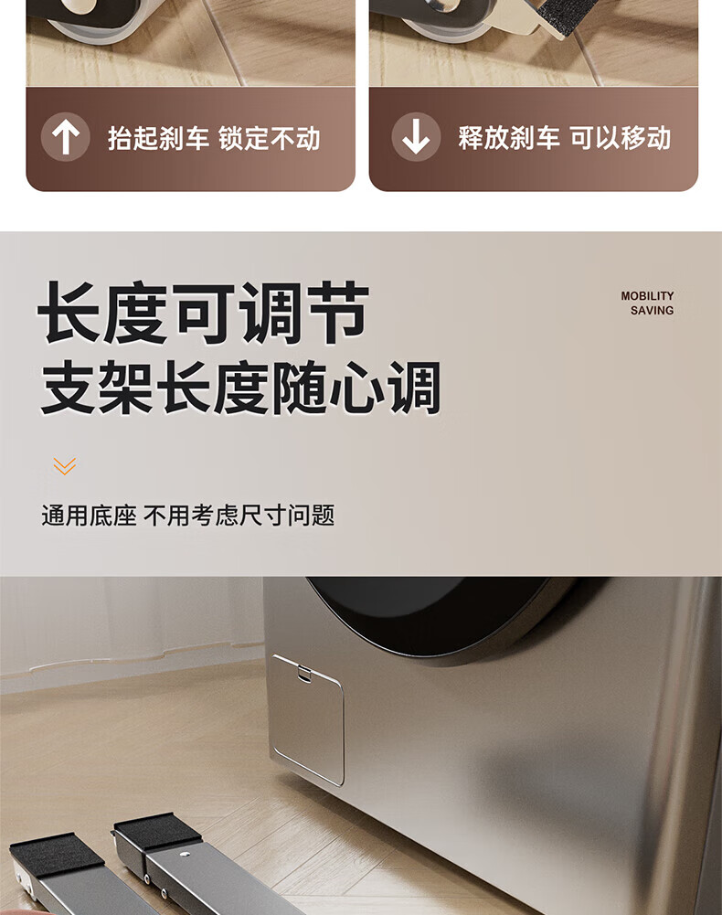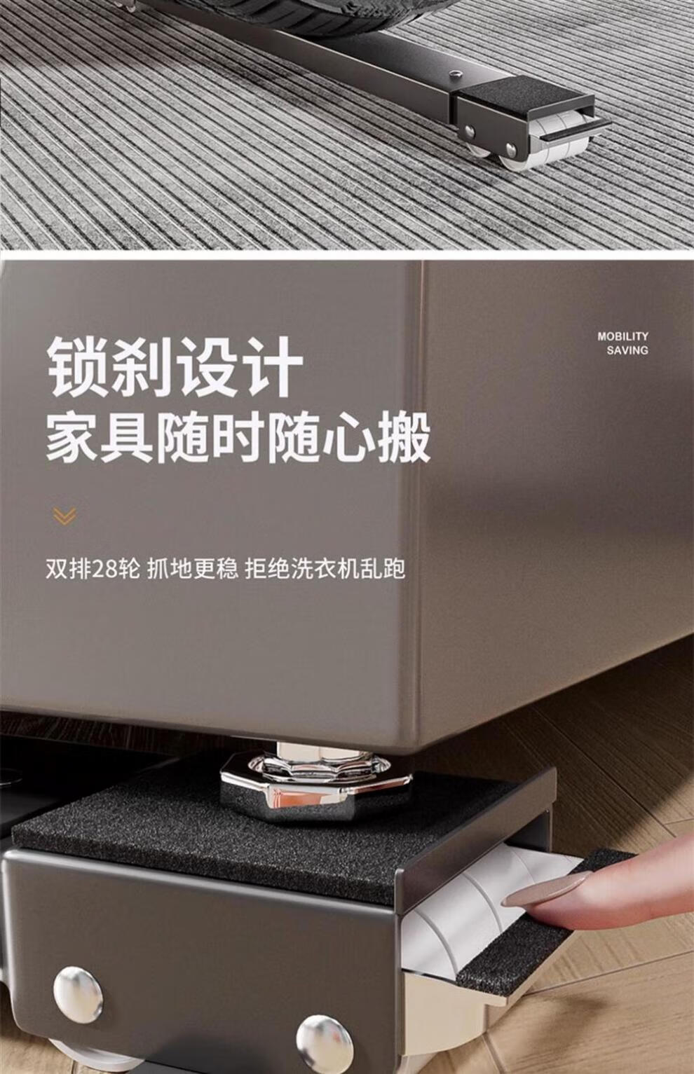 Meschute German washing machine base frame removable universal pulley refrigerator base shock-proof pulley storage rack elegant black model 24 wheels + brake design + retractable
