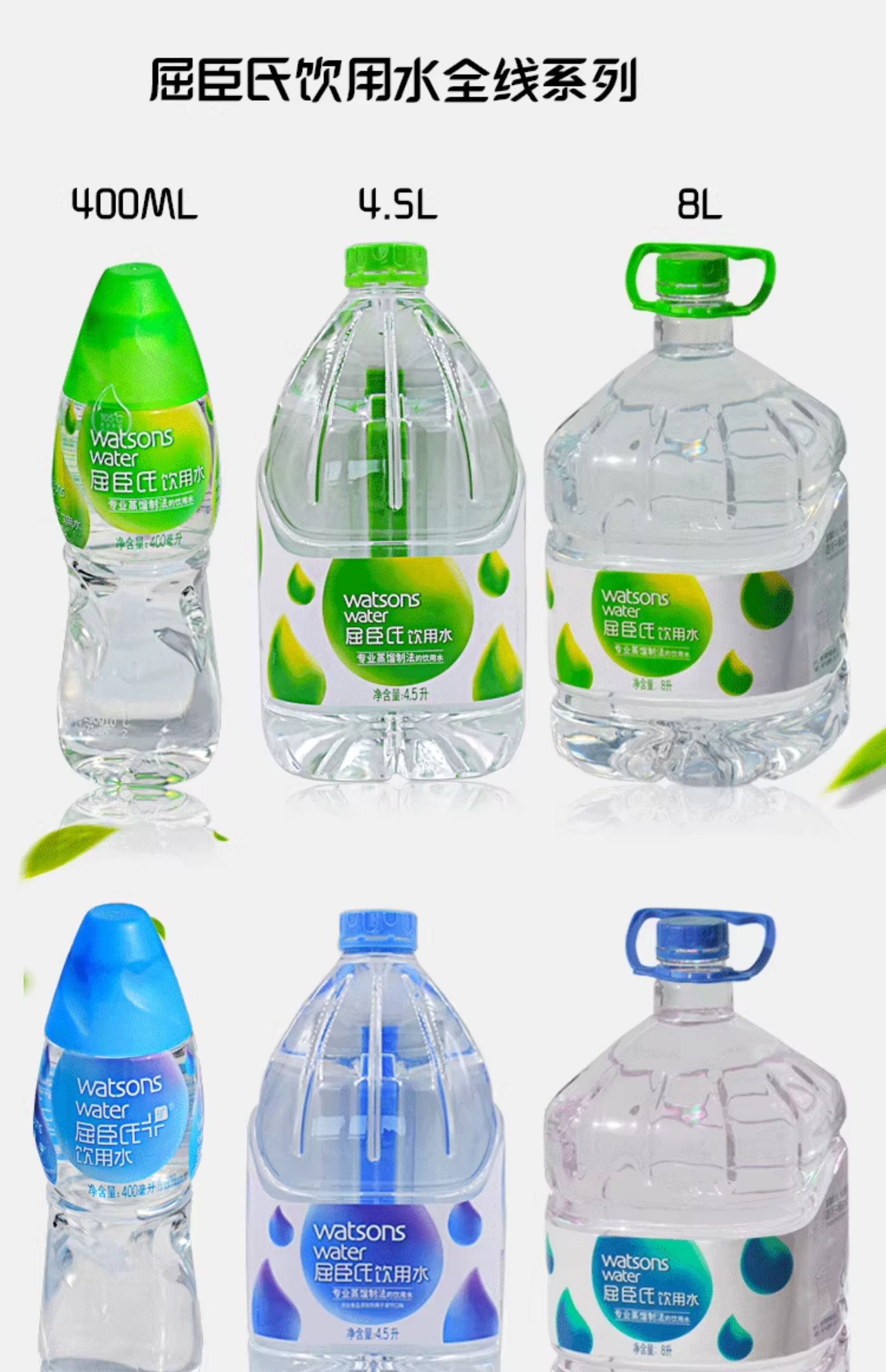 Yuanchen's Watsons distilled water distilled water mineral water 4.5L*4 barreled water large barrel drinking water moisturizing Watsons (green bottle) distilled water 500ml*15 bottles