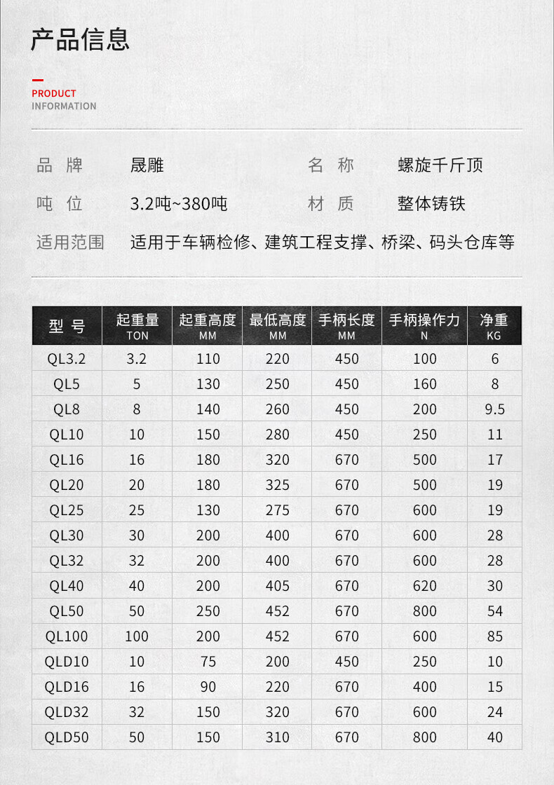 Shengdiao short body hand jack gear vertical jack 3 tons 51032 mechanical jack national standard 320T