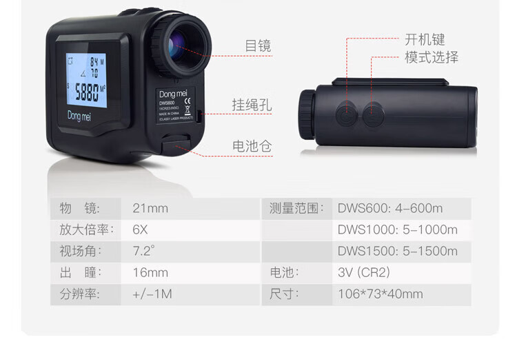 Dongmei telescope rangefinder outdoor golf dual-screen laser precision measurement electronic ruler 600 meters 1500 meters dual-screen distance measurement height DWS1500