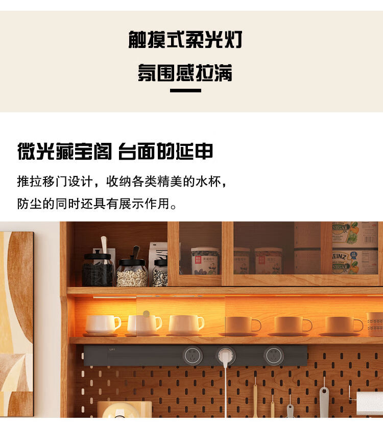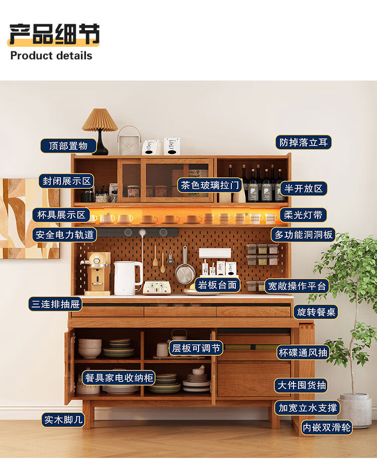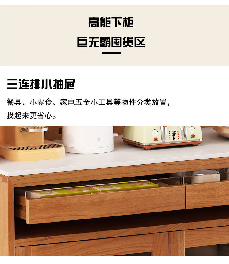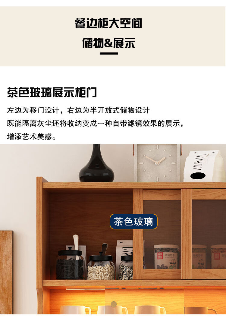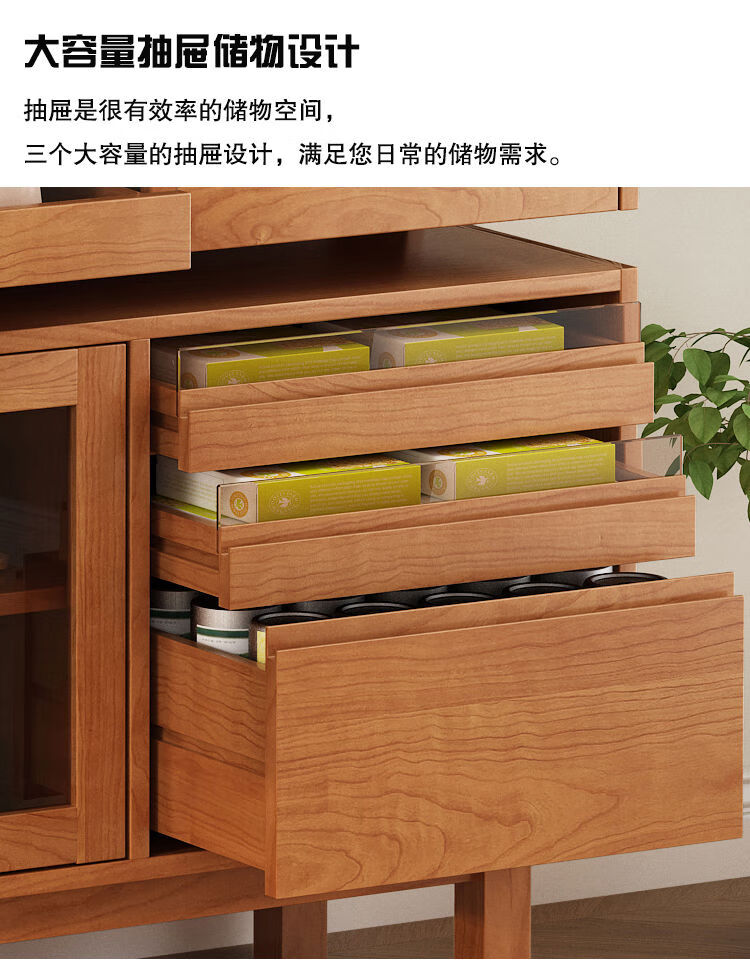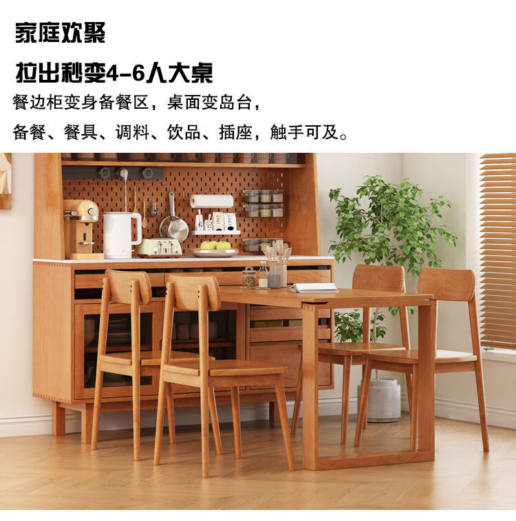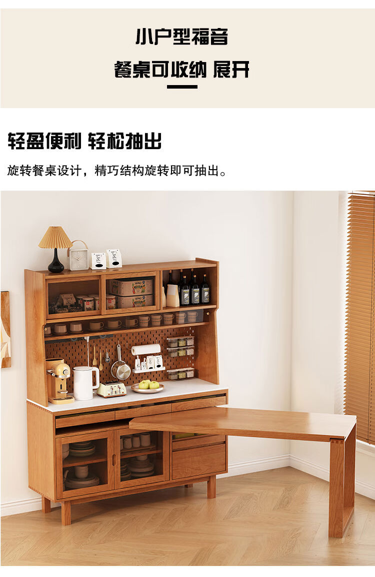 Jie Yu Mao solid wood sideboard rotating built-in sliding dining table integrated cabinet cherry wood wine cabinet living room wall storage cabinet living room 130 cherry wood table
