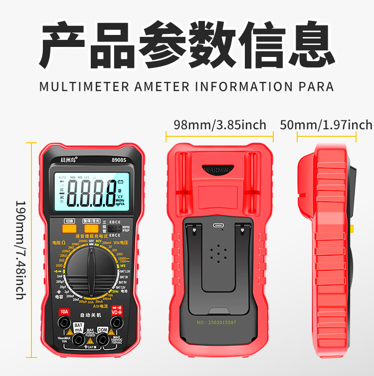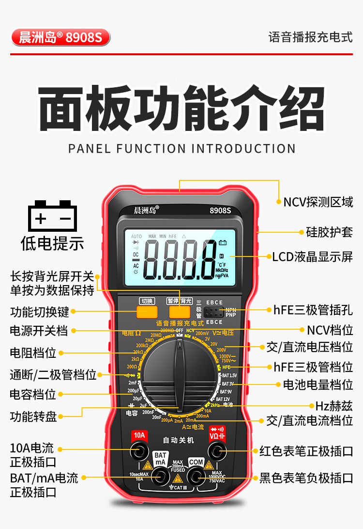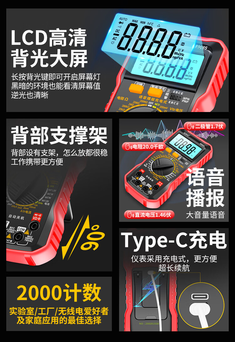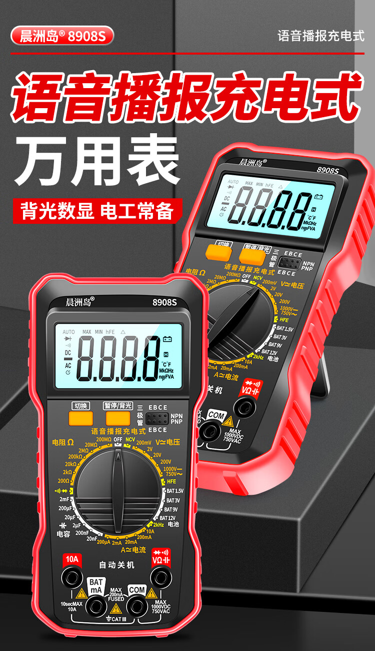 High-precision intelligent anti-burn multimeter with loud voice charging multimeter electrician digital display voltage measurement 8902S multimeter standard (no voice)