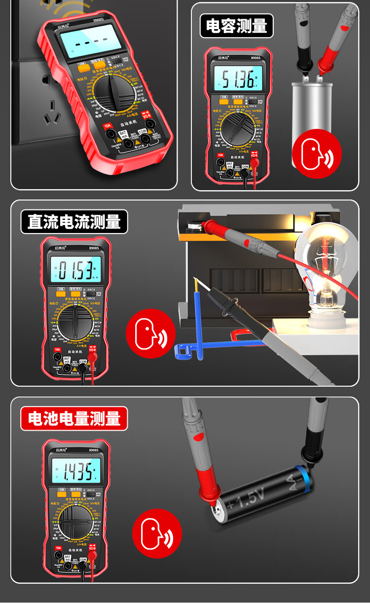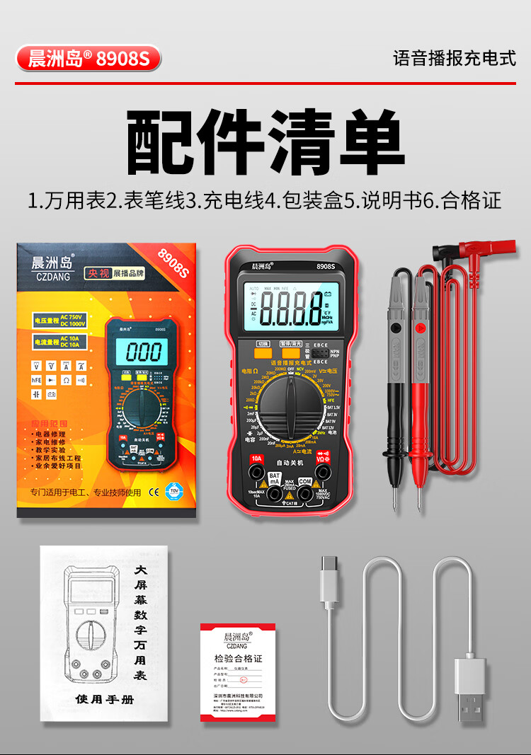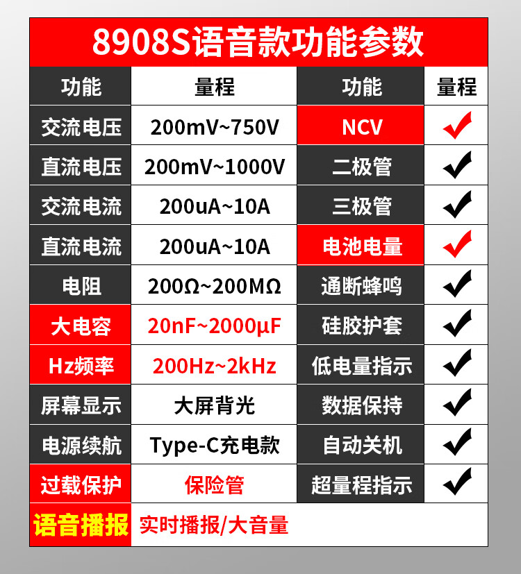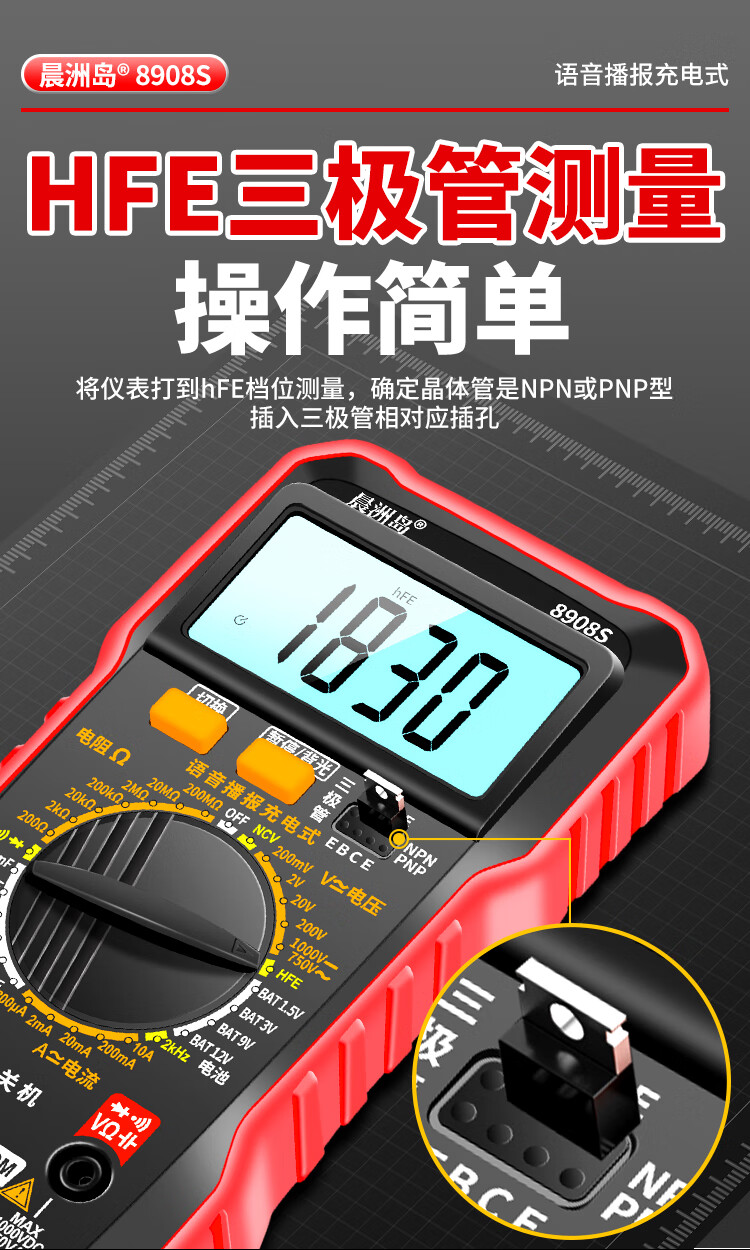 High-precision intelligent anti-burn multimeter with loud voice charging multimeter electrician digital display voltage measurement 8902S multimeter standard (no voice)