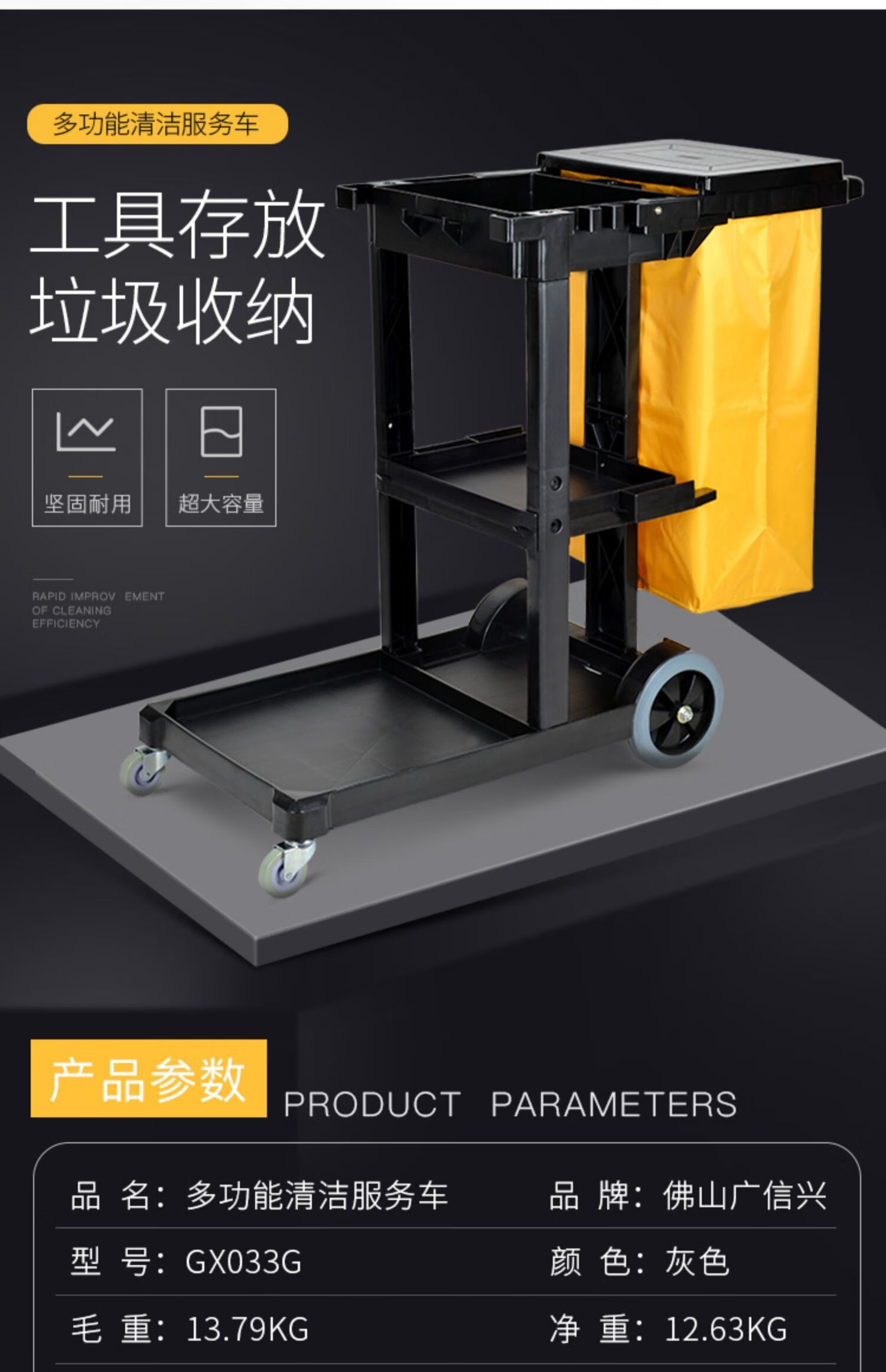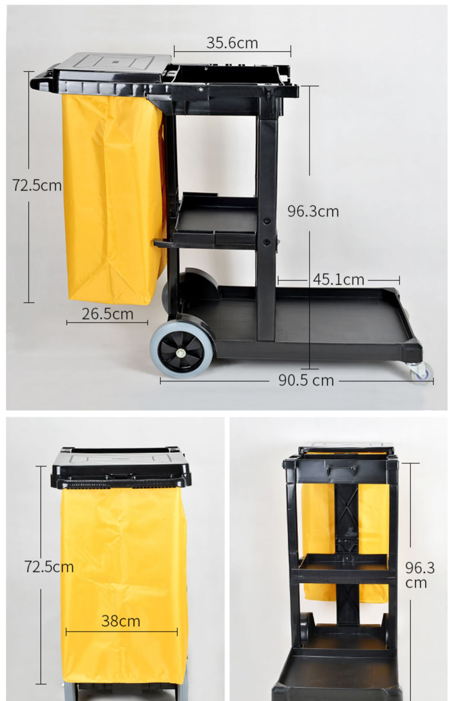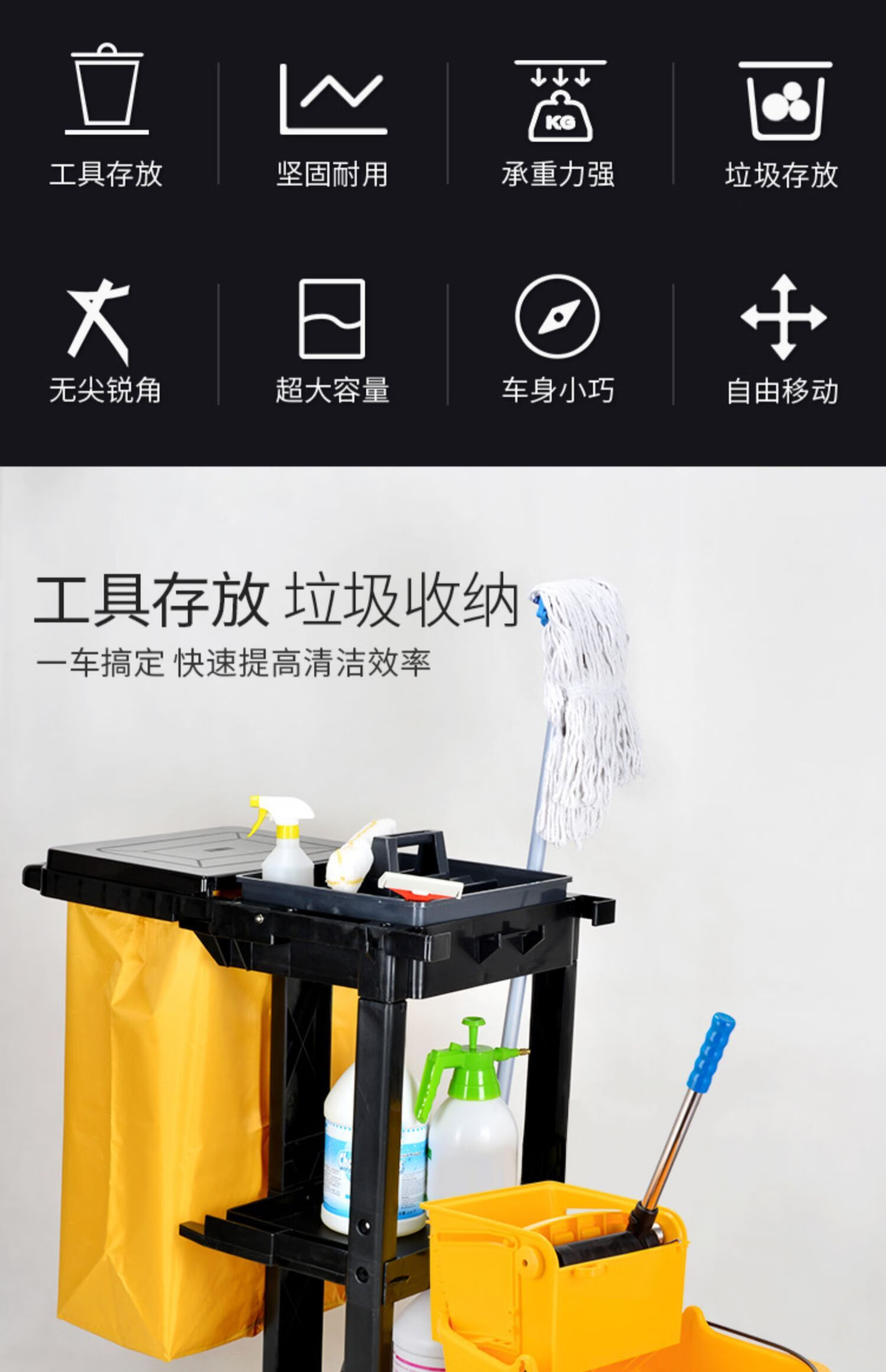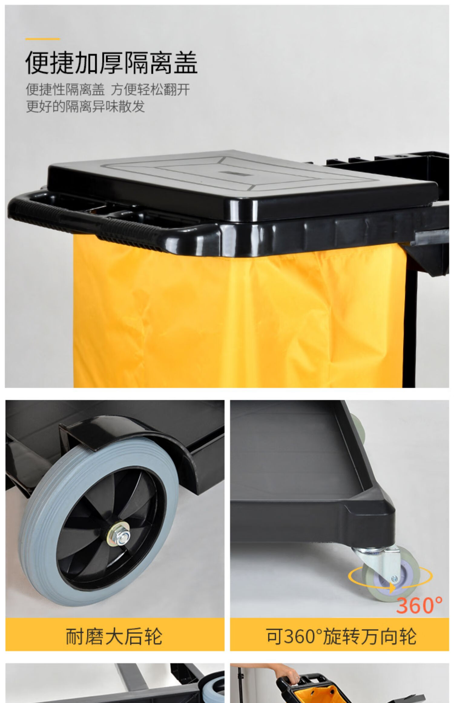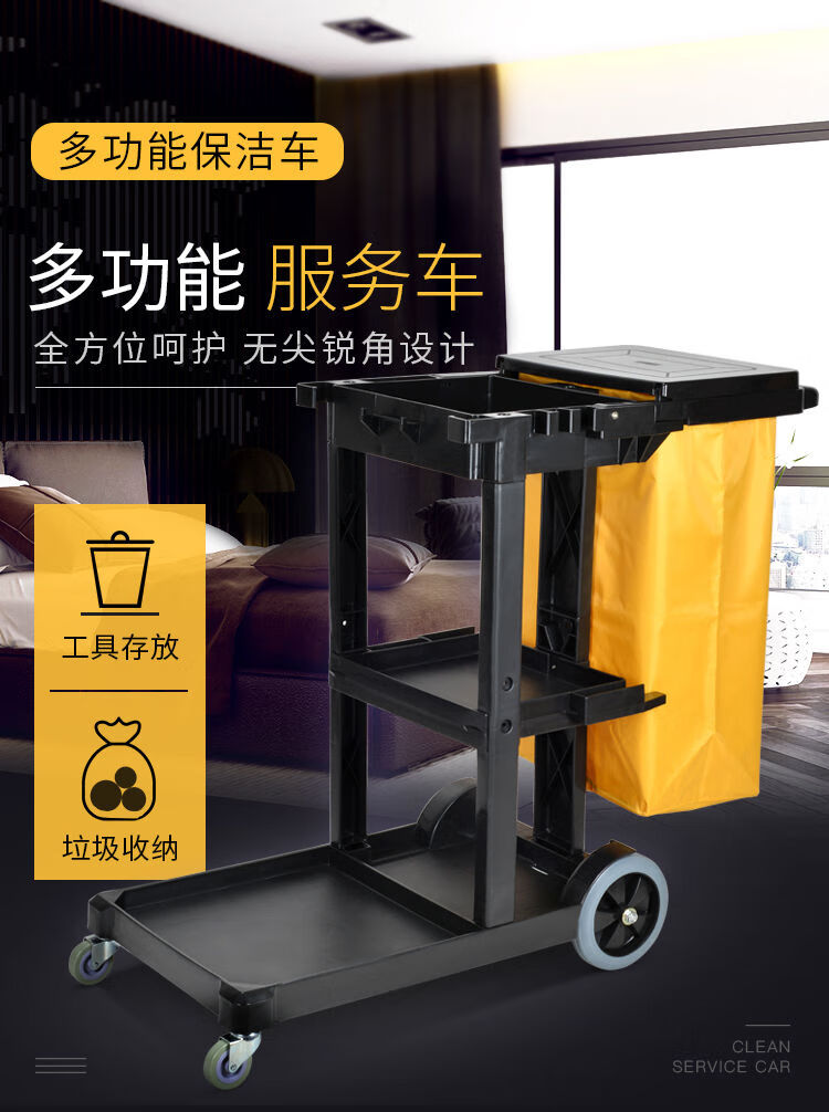 Multifunctional cleaning cart, linen cart, property shopping mall, hotel room service cart, cleaning chartered cart Shukou SK-330 black with cover, extra heavy duty - extra thick