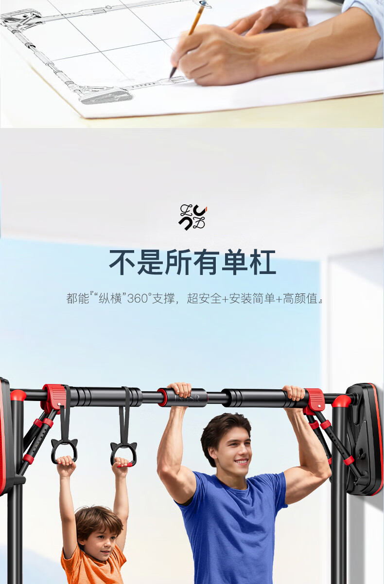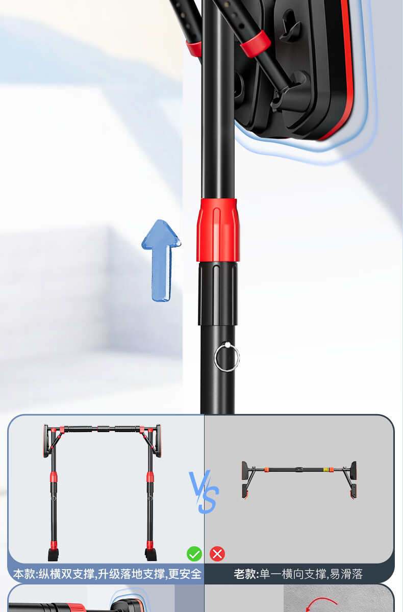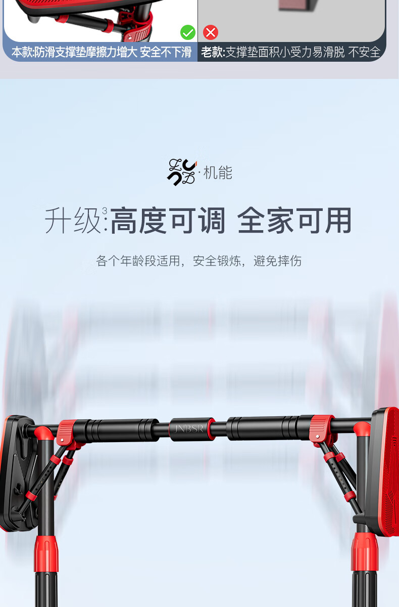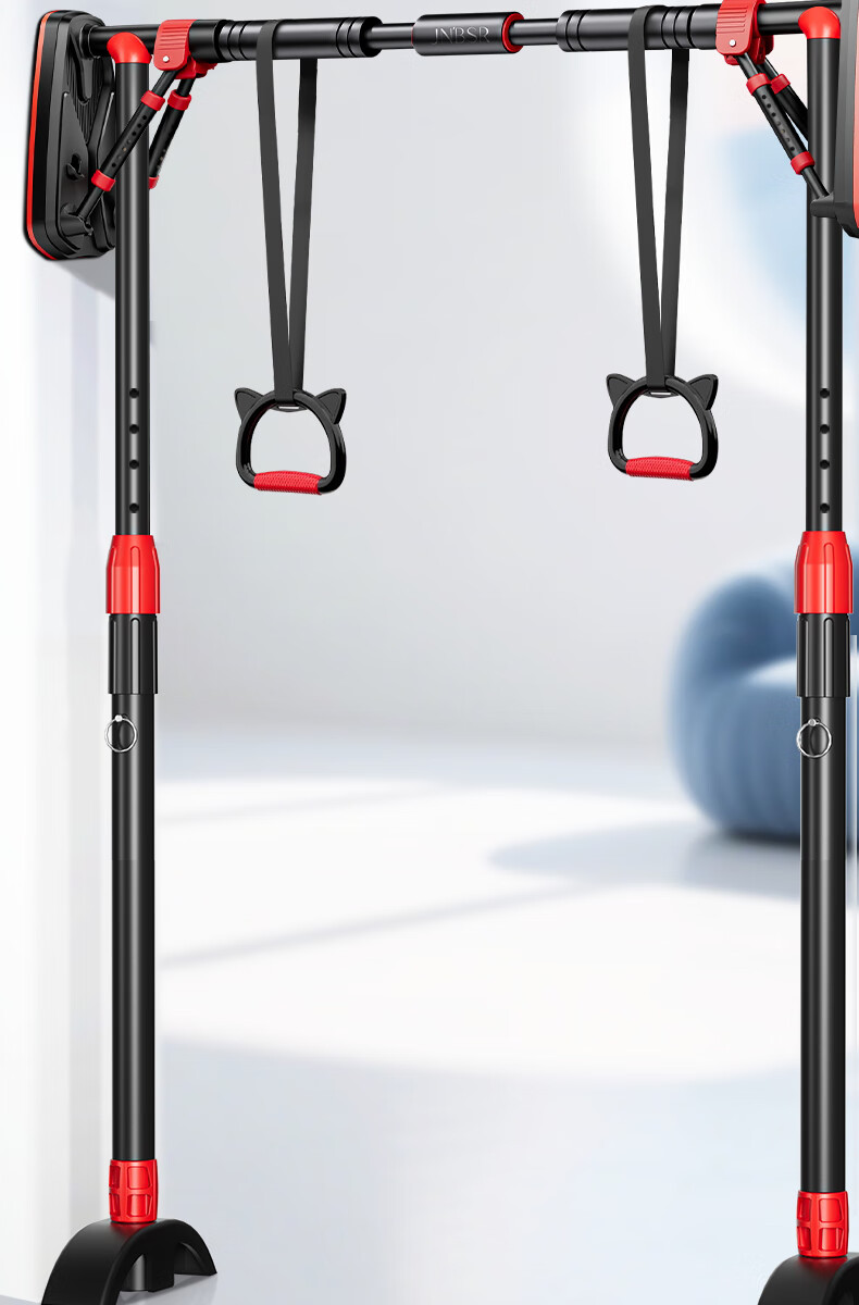 JNBSR horizontal bar indoor home pull-up horizontal bar punch-free junior high school students and children home wall door frame floor-standing black and red horizontal bar + hanging ring + hammock + yoga mat 130-160CM