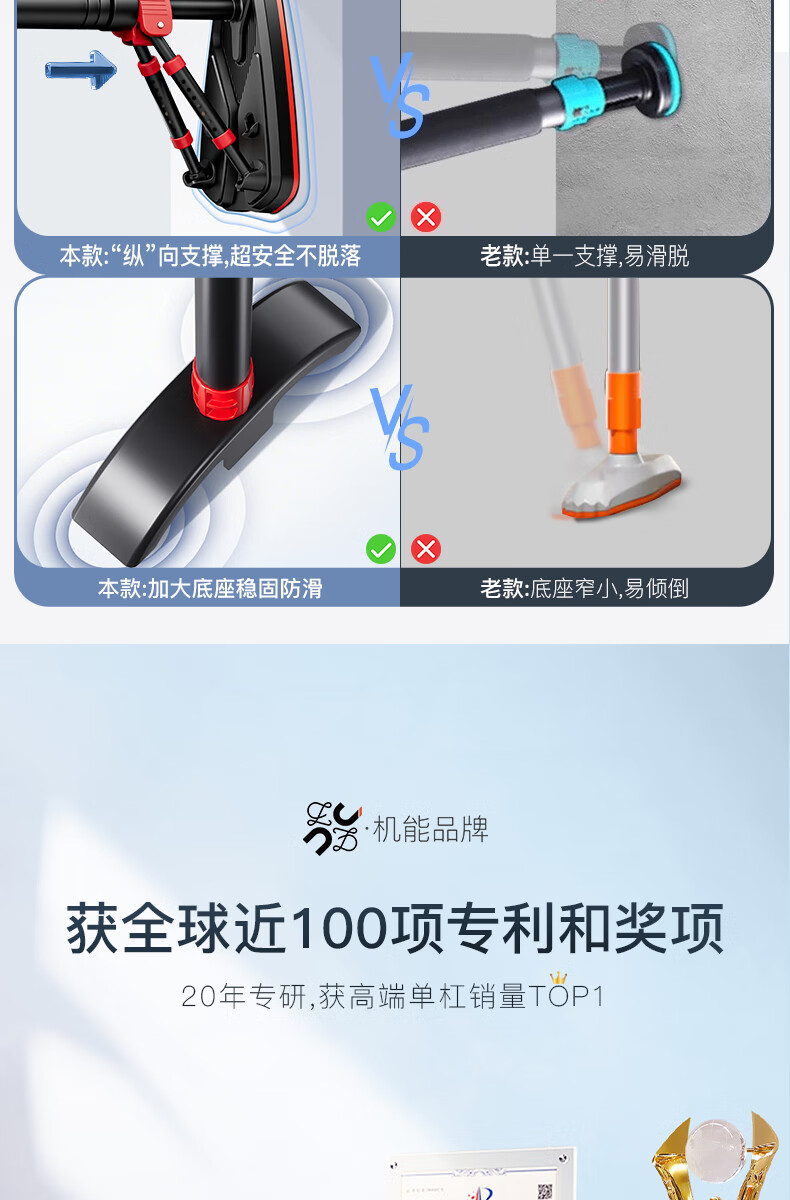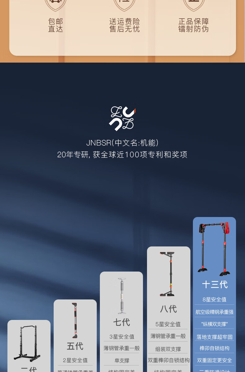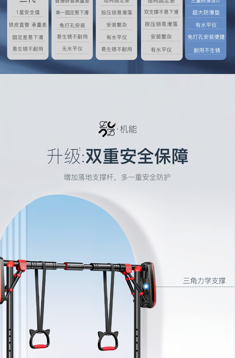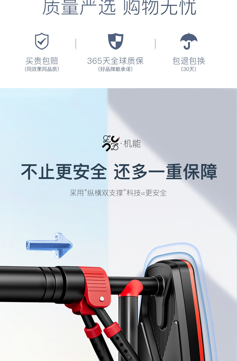 JNBSR horizontal bar indoor home pull-up horizontal bar punch-free junior high school students and children home wall door frame floor-standing black and red horizontal bar + hanging ring + hammock + yoga mat 130-160CM