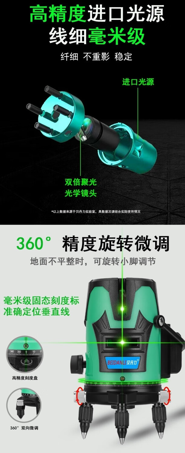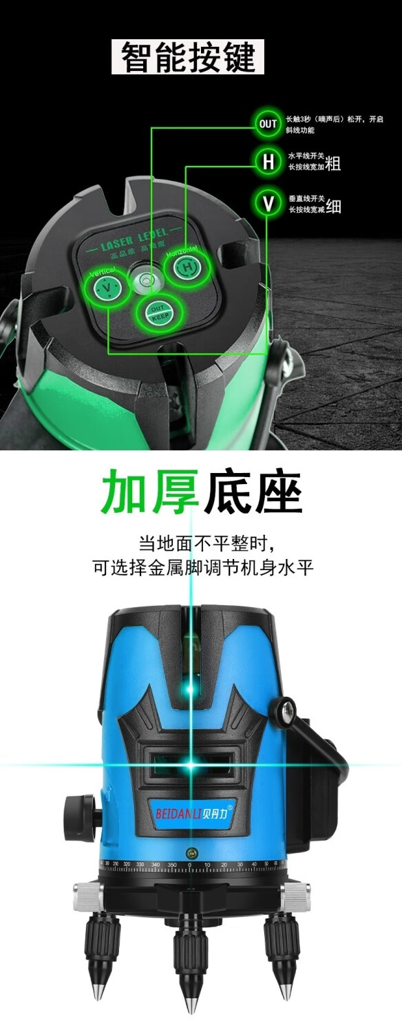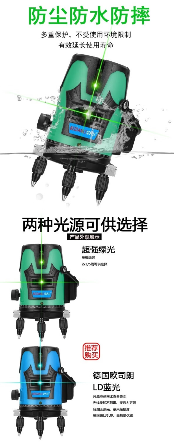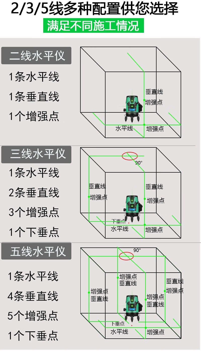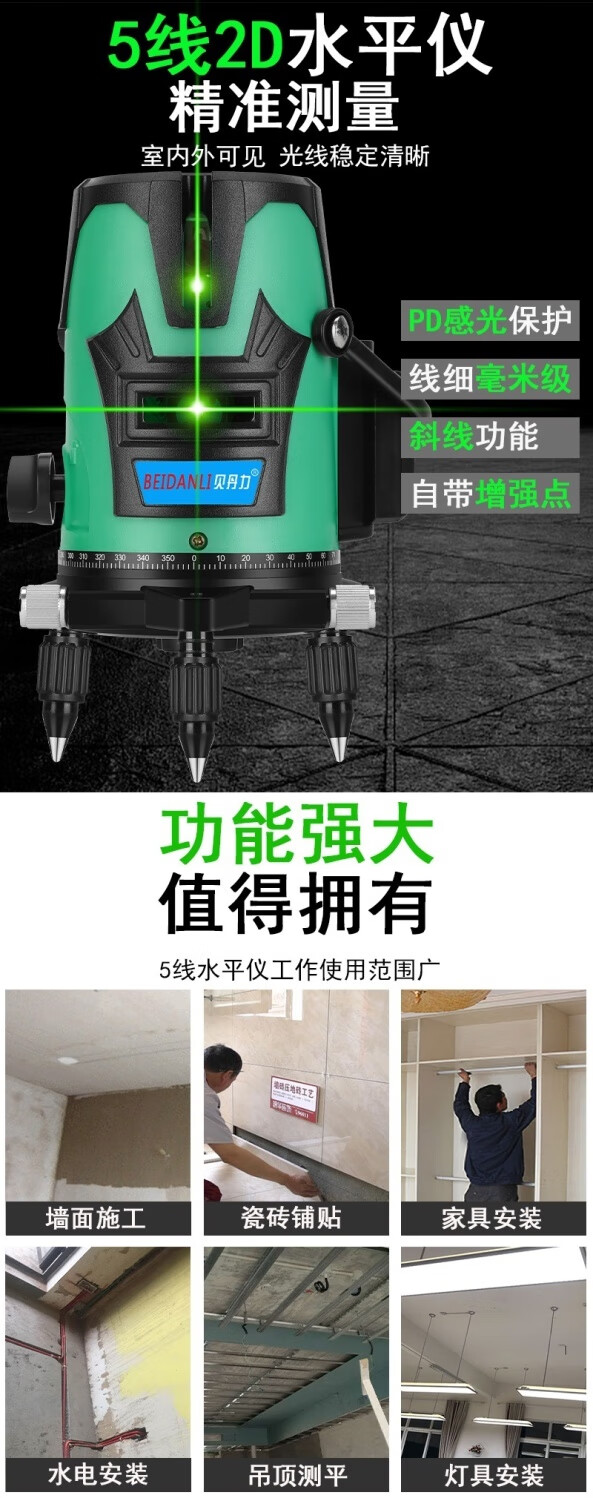 Sailoto green light level meter laser water level meter 2 lines 5 lines thin line strong light high precision automatic leveling blue light meter indoor and outdoor movable green light 2 lines + 1 lithium battery appearance random