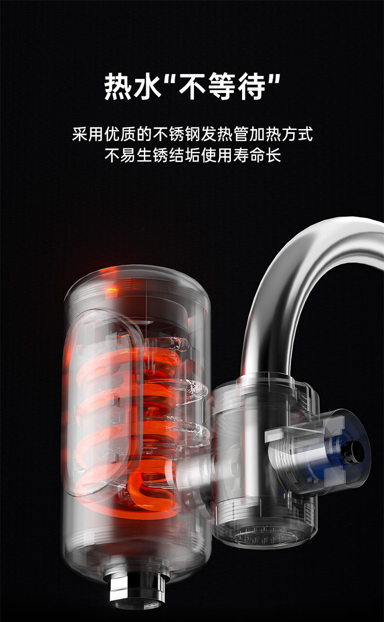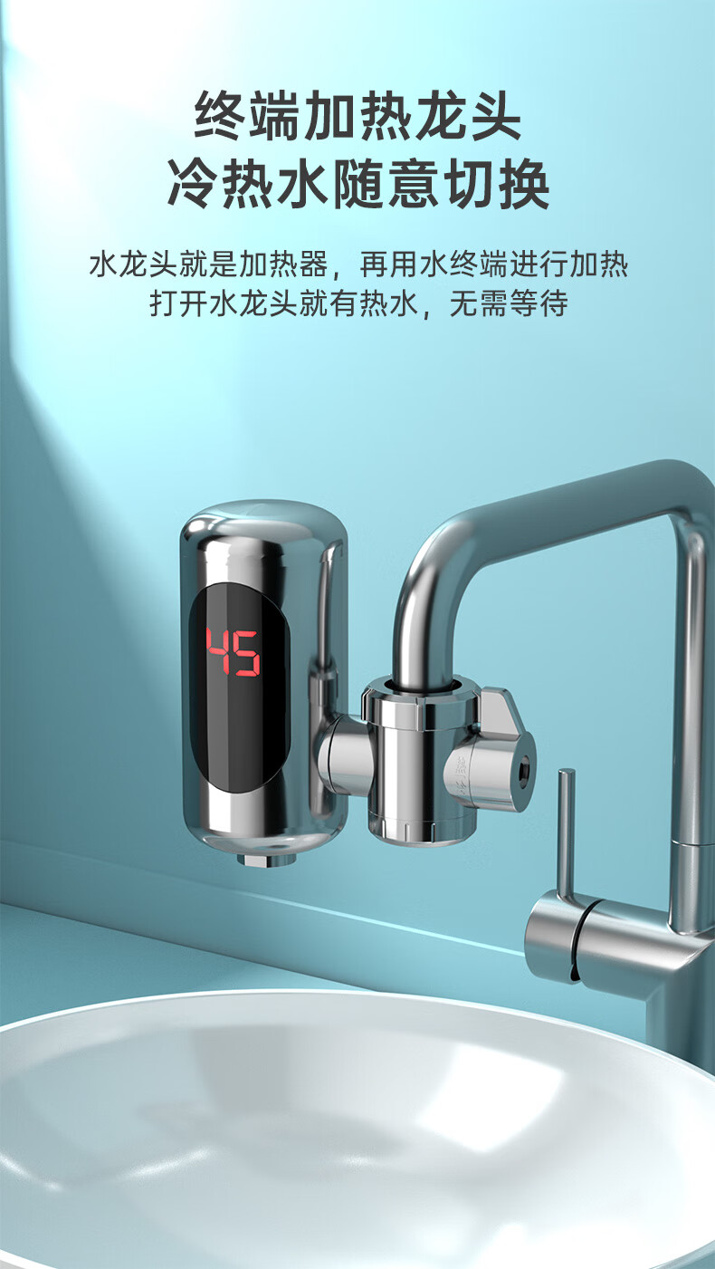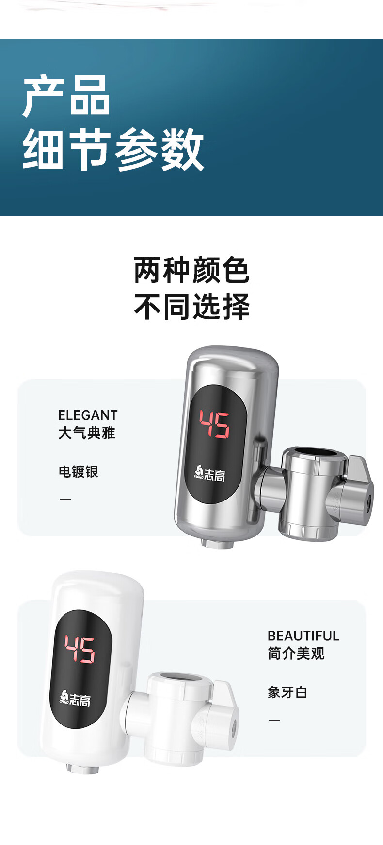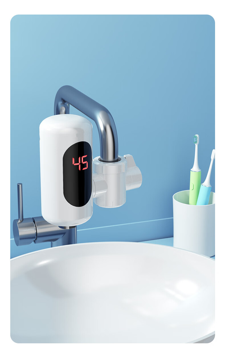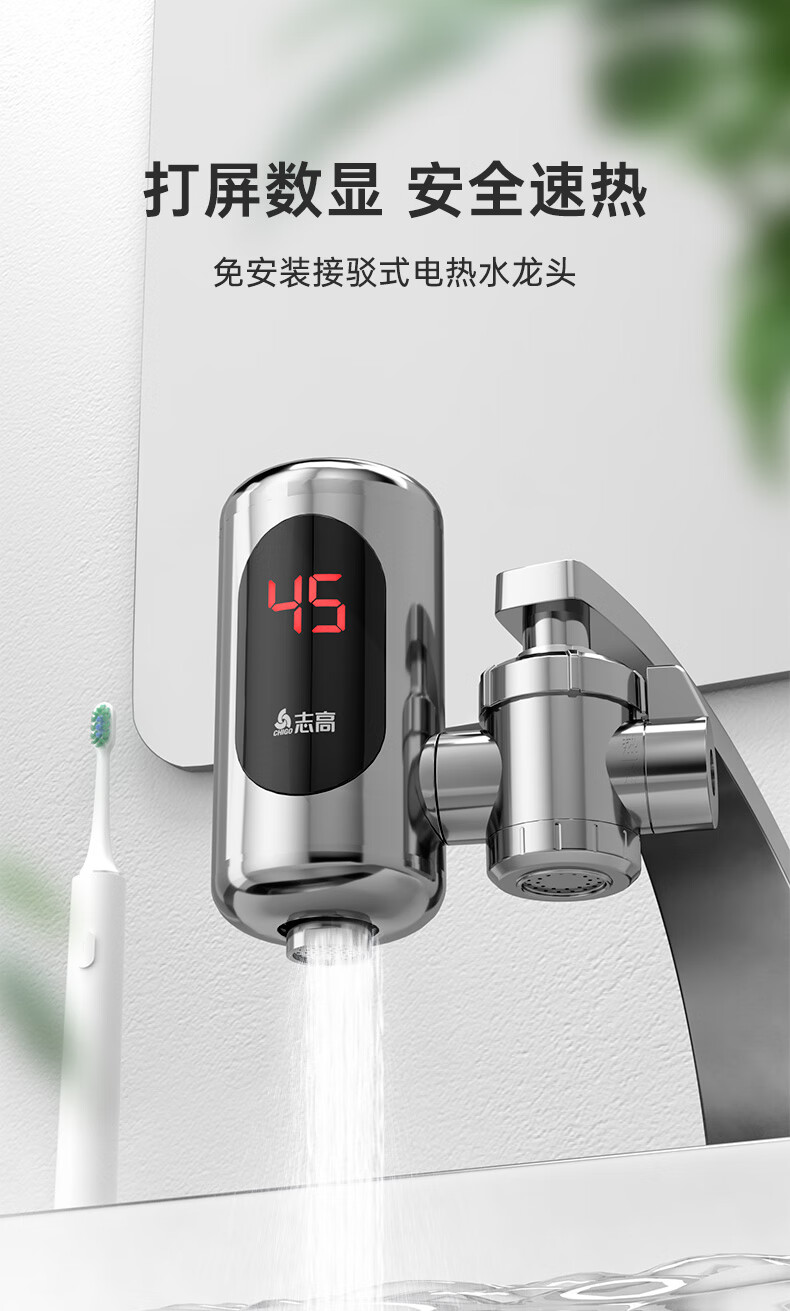 CHIGO electric hot water faucet installation-free stainless steel heating kitchen bathroom kitchen treasure instant hot water heater intelligent digital display snow mountain white + leakage protector