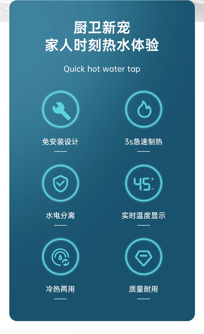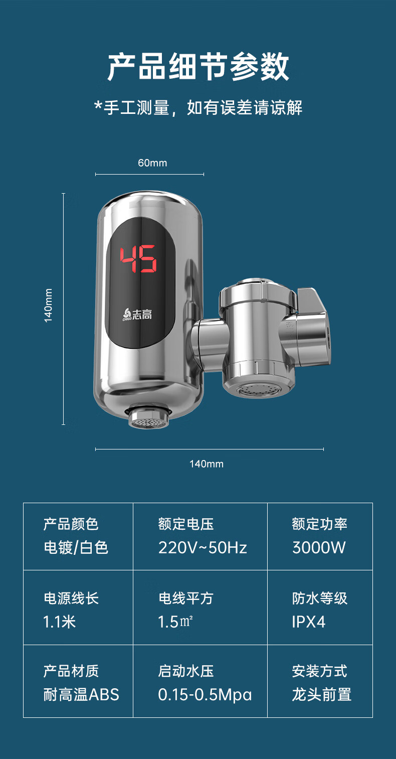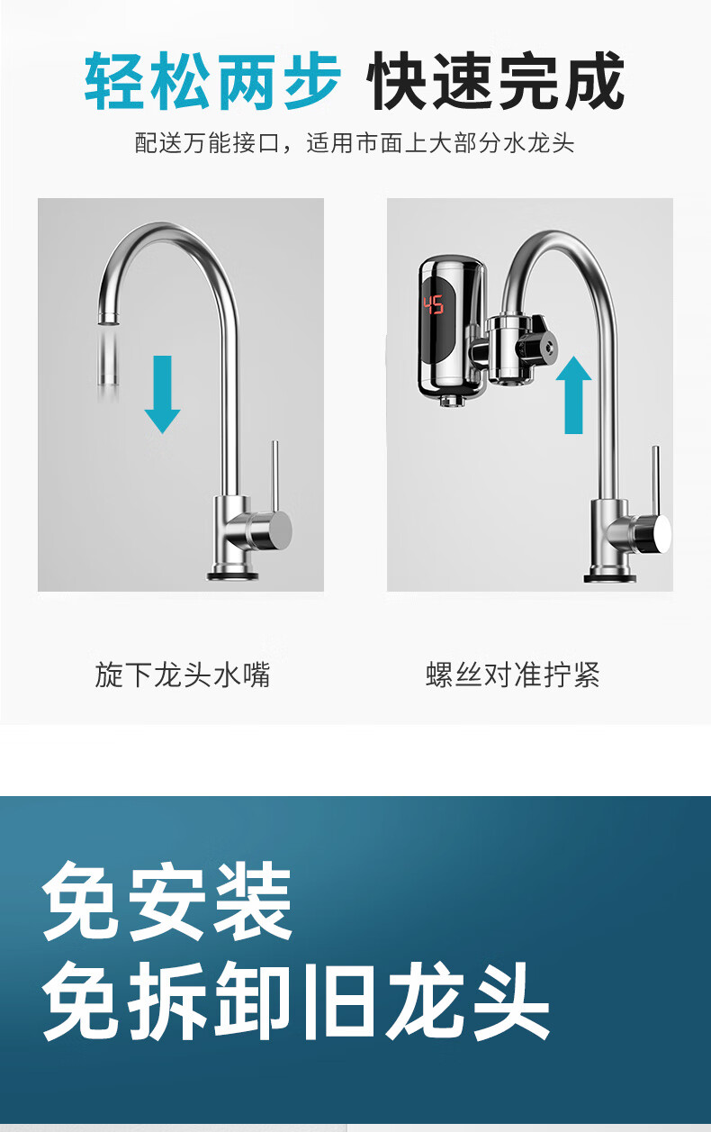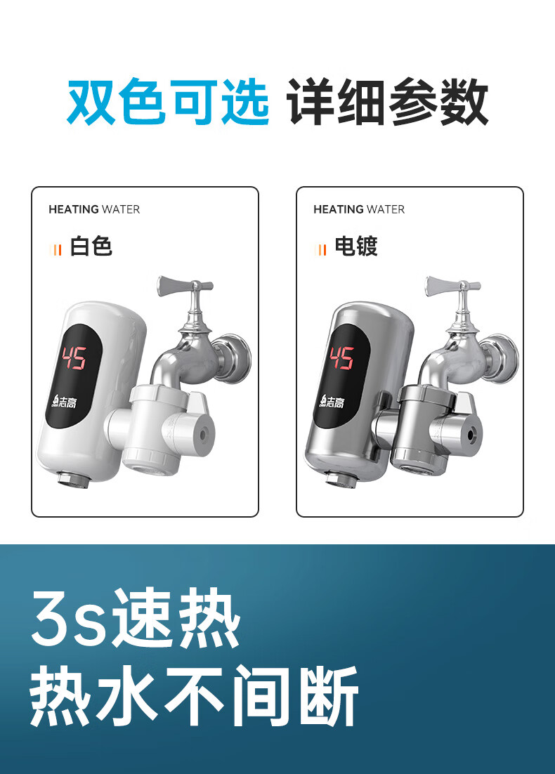 CHIGO electric hot water faucet installation-free stainless steel heating kitchen bathroom kitchen treasure instant hot water heater intelligent digital display snow mountain white + leakage protector