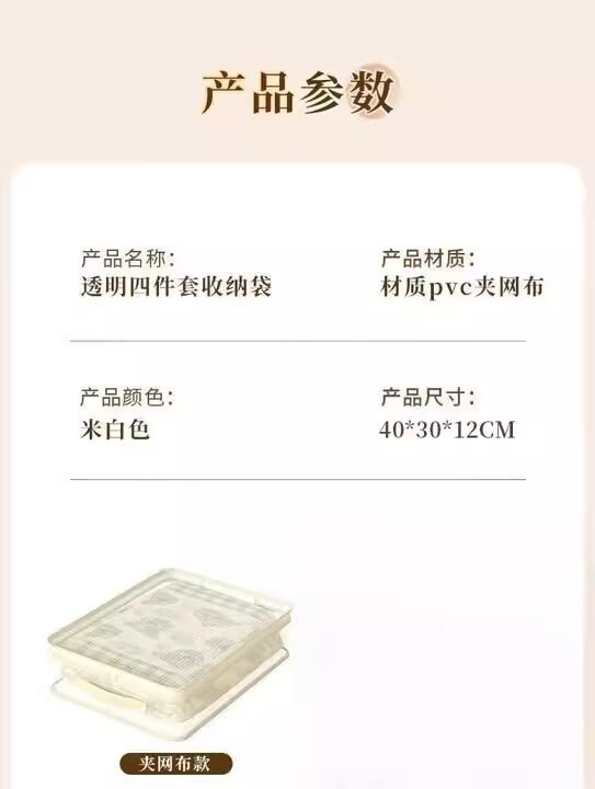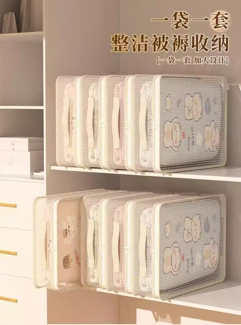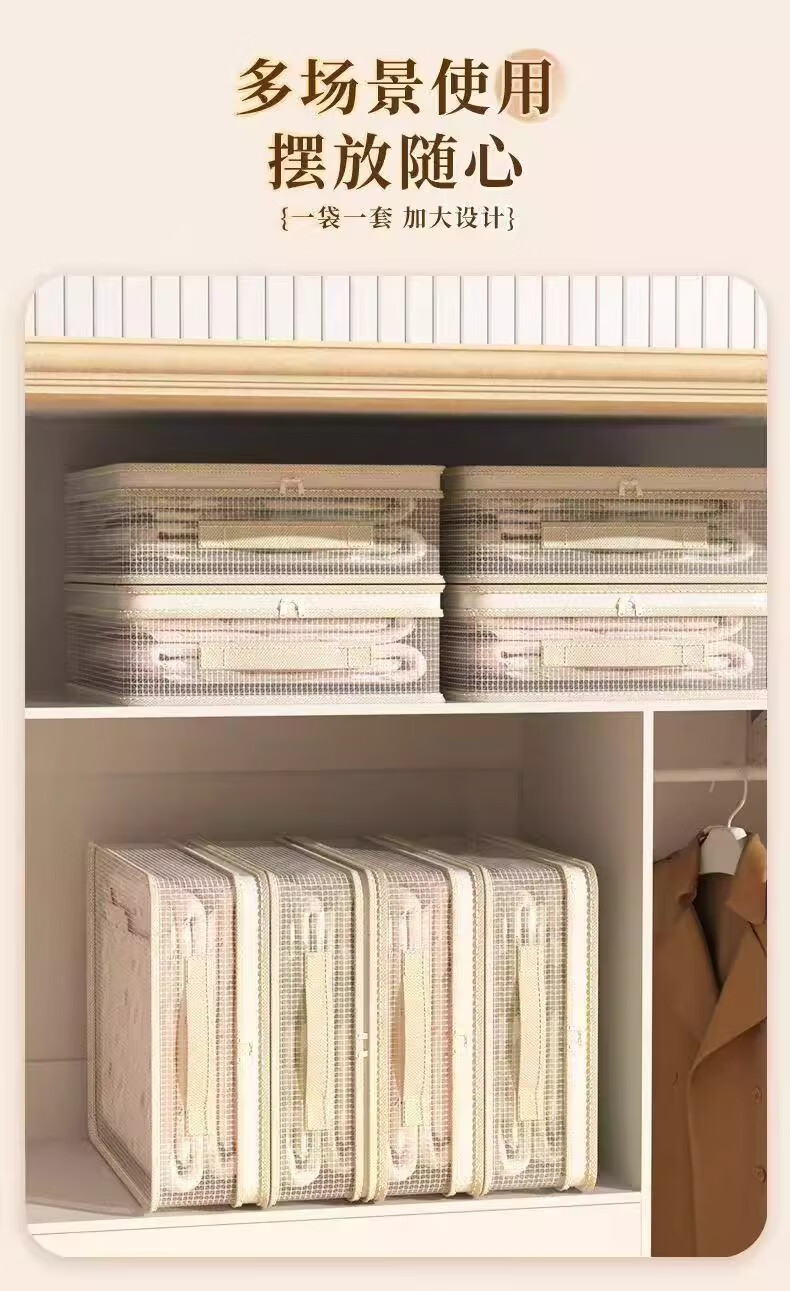 Bonnymeijia mesh four-piece set storage bag wardrobe clothes clothing organization bag household bed sheet quilt cover dust-proof transparent storage bag 4-pack - can store four-piece set dust-proof and moisture-proof selected materials no odor