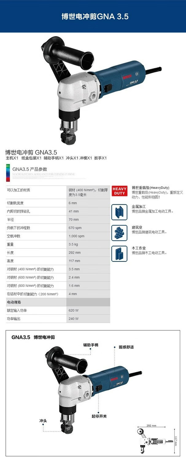 Fujiwara (BOSCH) Bosch German electric scissors GSC28 electric punching shear GNA20 metal iron shear aluminum into electric punching shear GNA 3 points 5