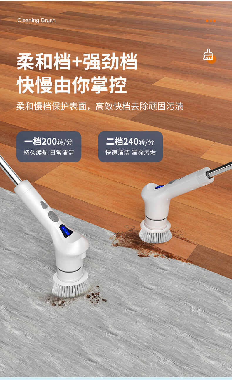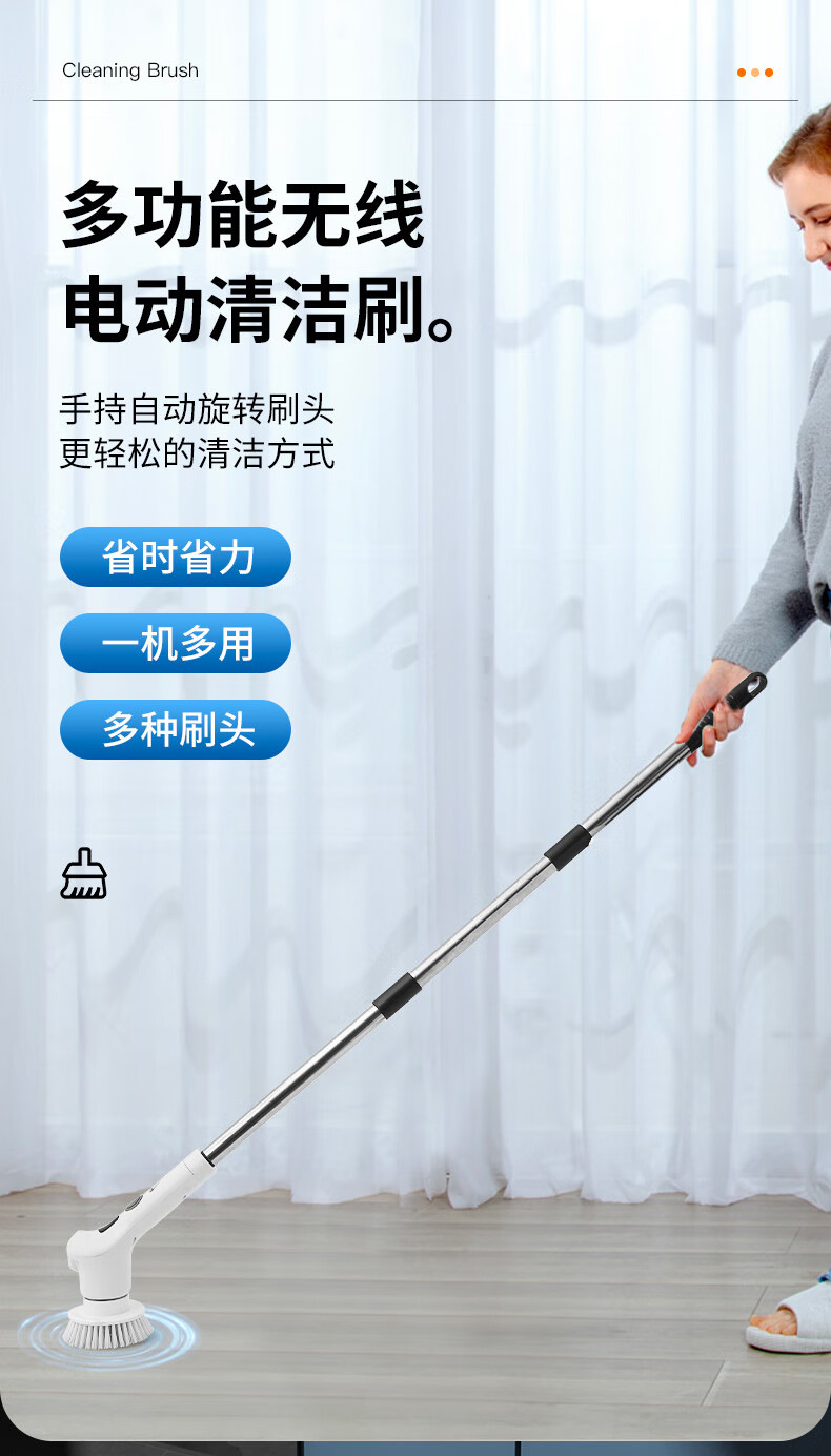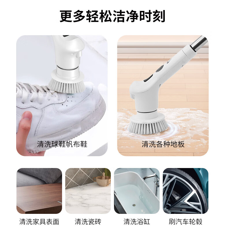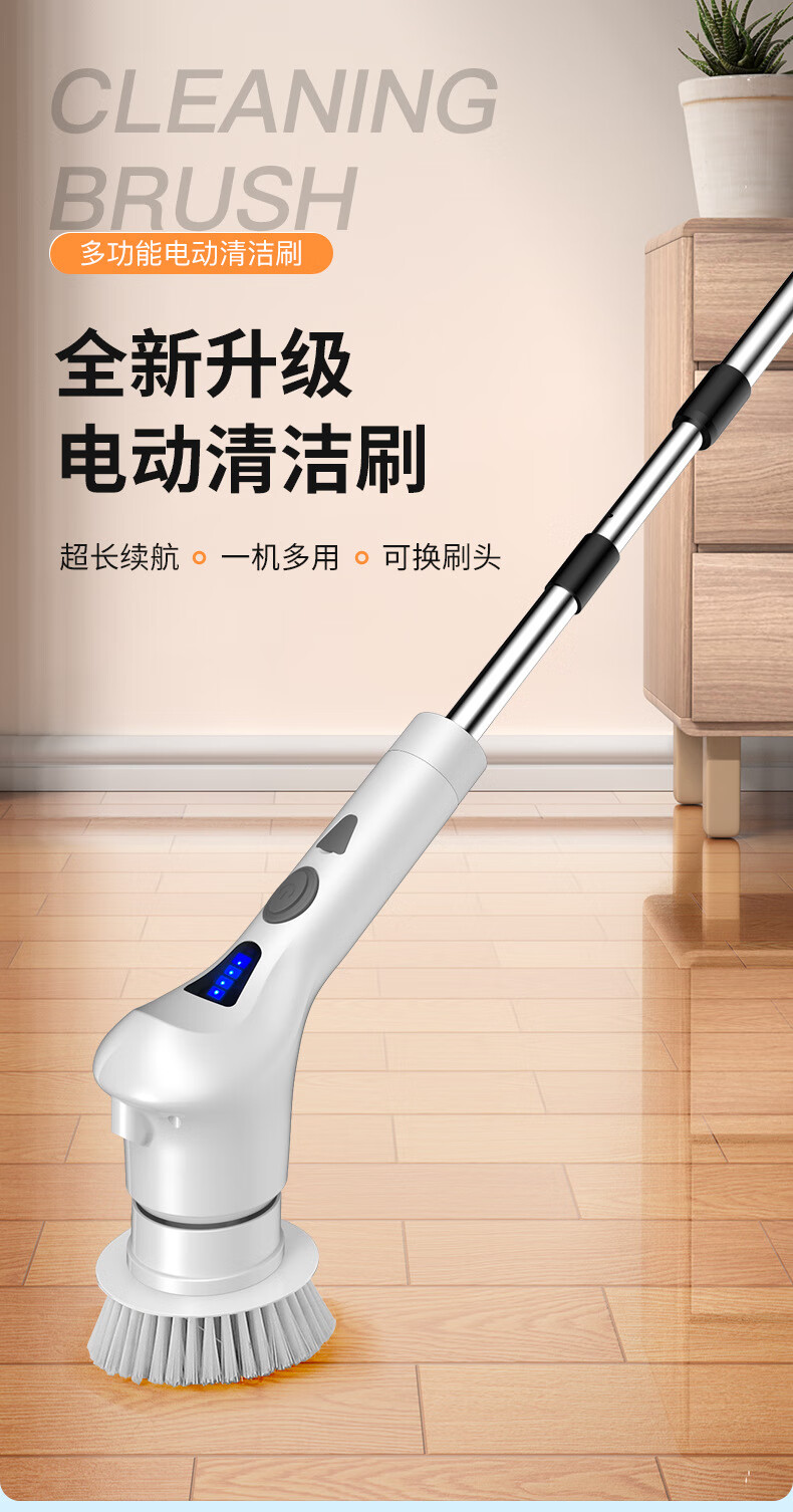 Electric cleaning brush three-speed waterproof bathroom toilet multi-functional household floor brush electric brush bathroom automatic floor scrubber white five-in-one brush head