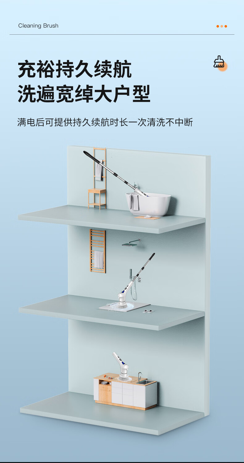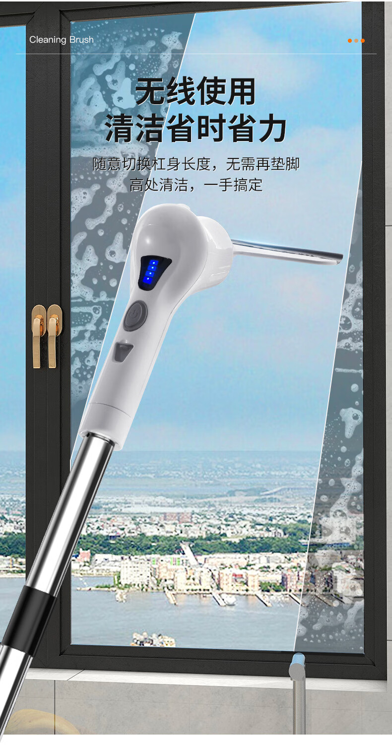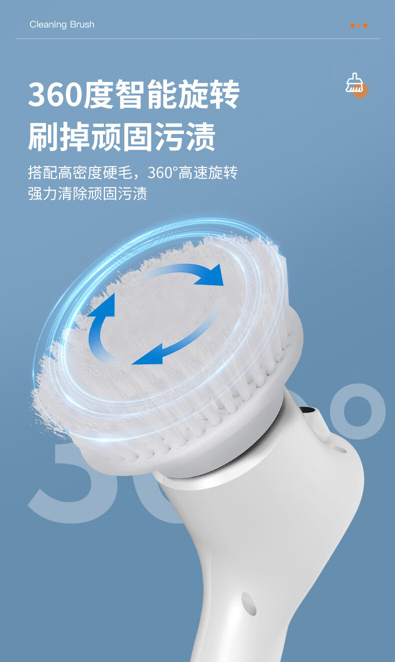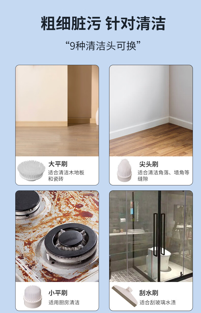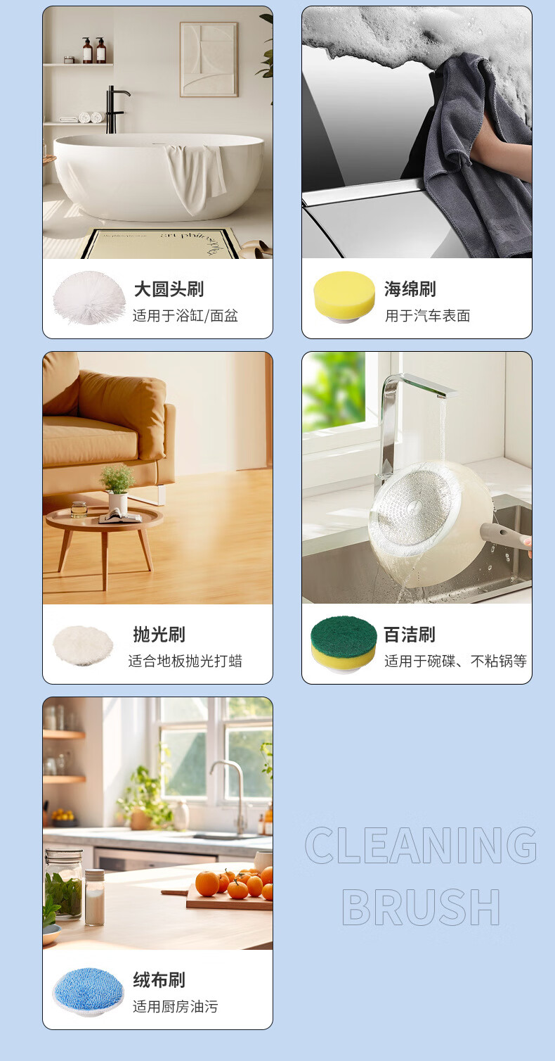 Electric cleaning brush three-speed waterproof bathroom toilet multi-functional household floor brush electric brush bathroom automatic floor scrubber white five-in-one brush head