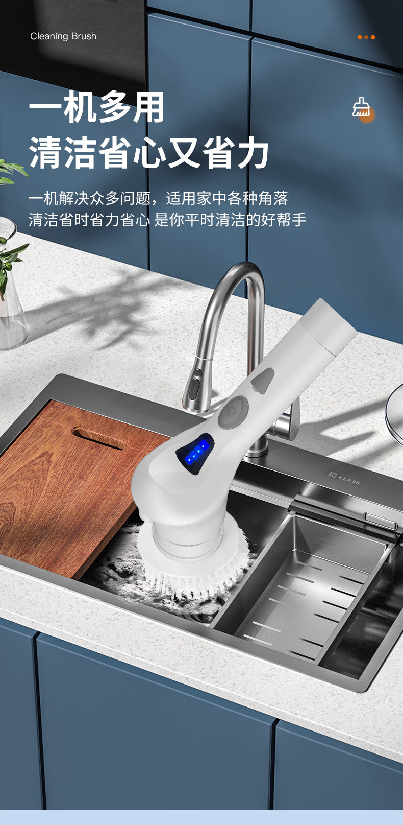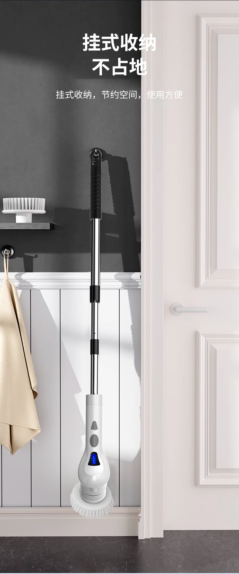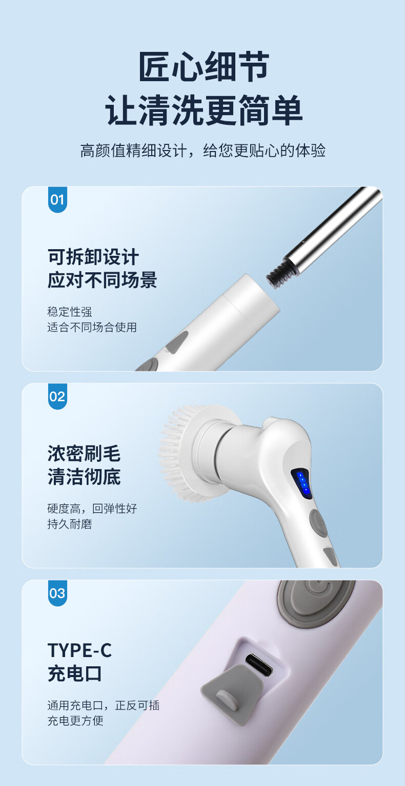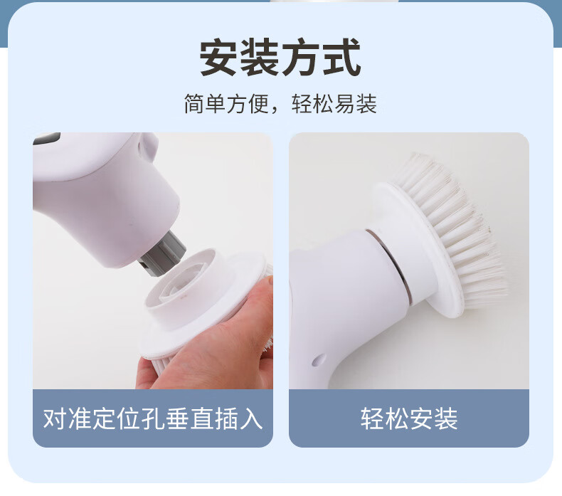 Electric cleaning brush three-speed waterproof bathroom toilet multi-functional household floor brush electric brush bathroom automatic floor scrubber white five-in-one brush head