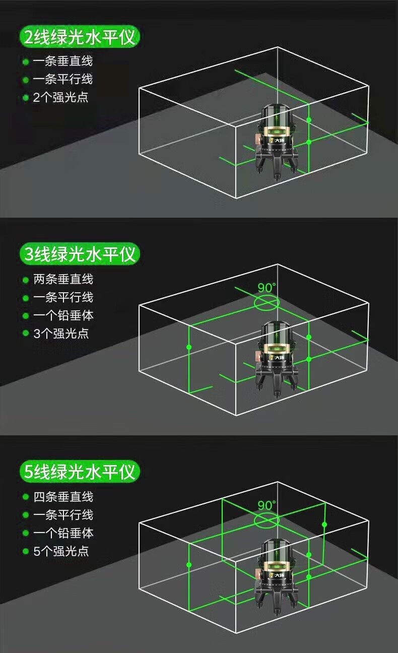 Aoyanlai craftsman large ring level meter green light 2 lines 3 lines 5 lines light source high precision strong light fully automatic laser level meter green light 2 lines brightness adjustable large lithium battery