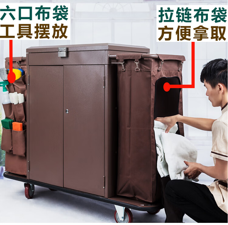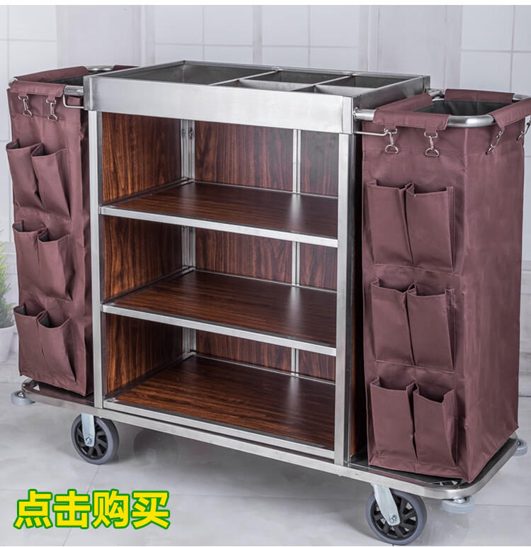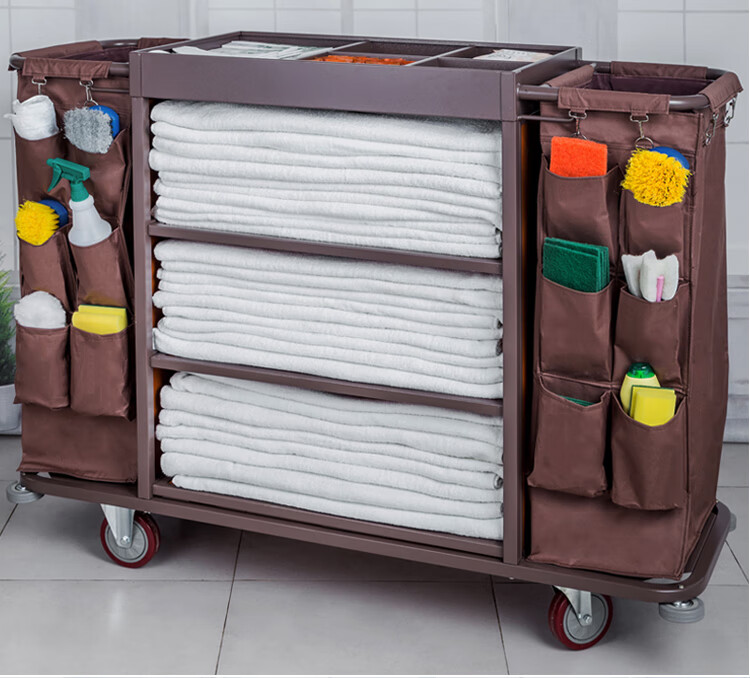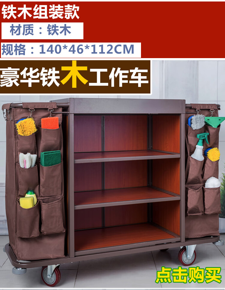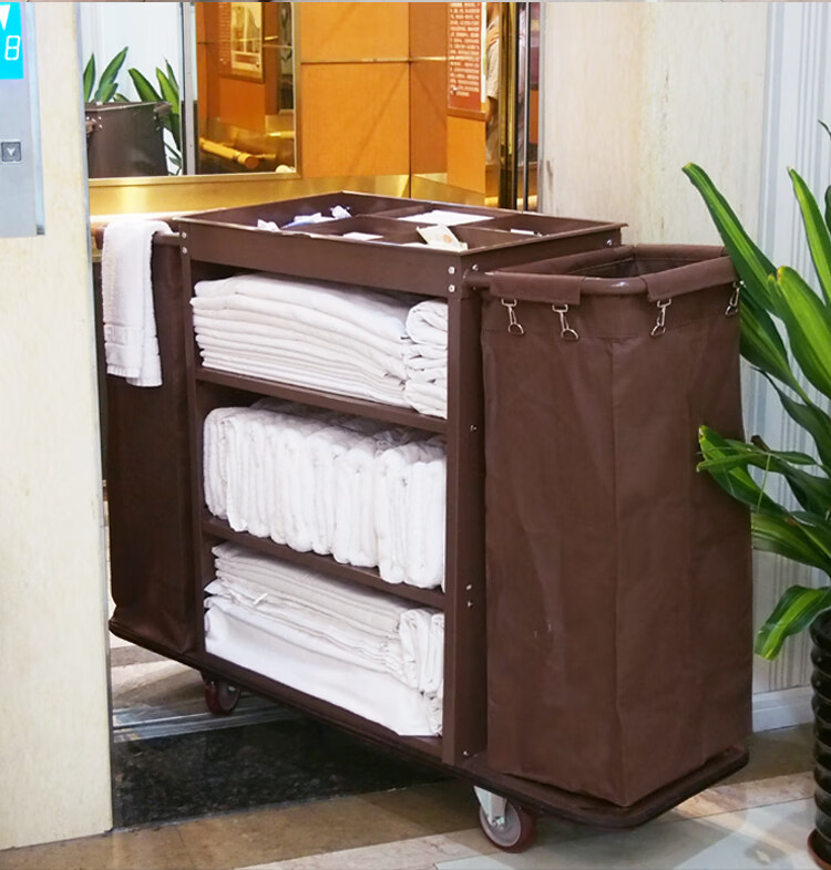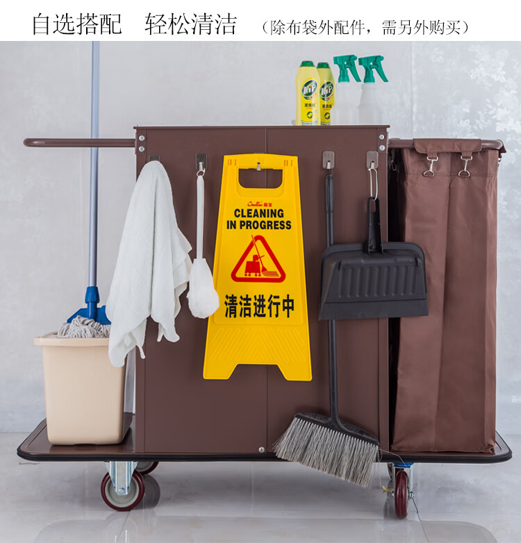 Hotel room multi-function hand push linen cart cleaning work cart cleaning cart bag room entrance hygiene service cart (ordinary model) single side (4-inch ordinary wheel)