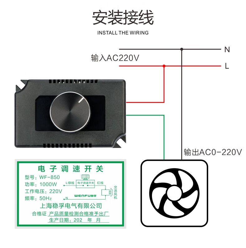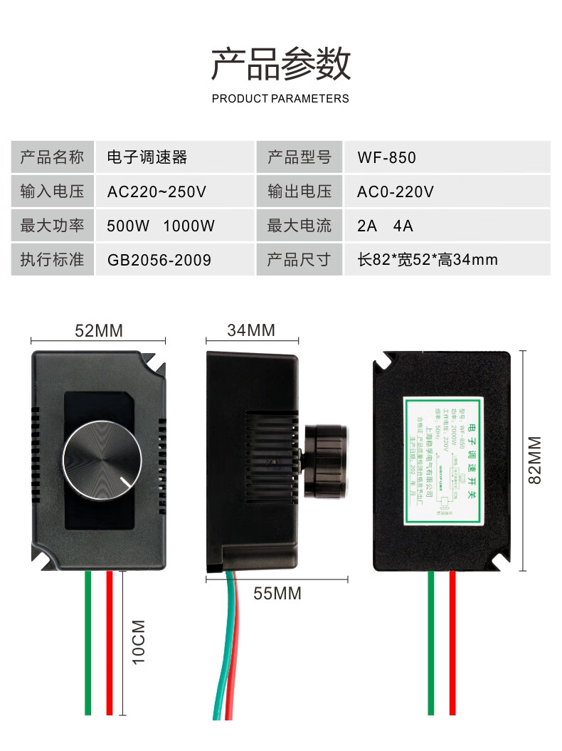 Ventilation fan exhaust fan blower electronic stepless speed regulator switch 220v angle grinder motor controller peak power 500W load power 250W
