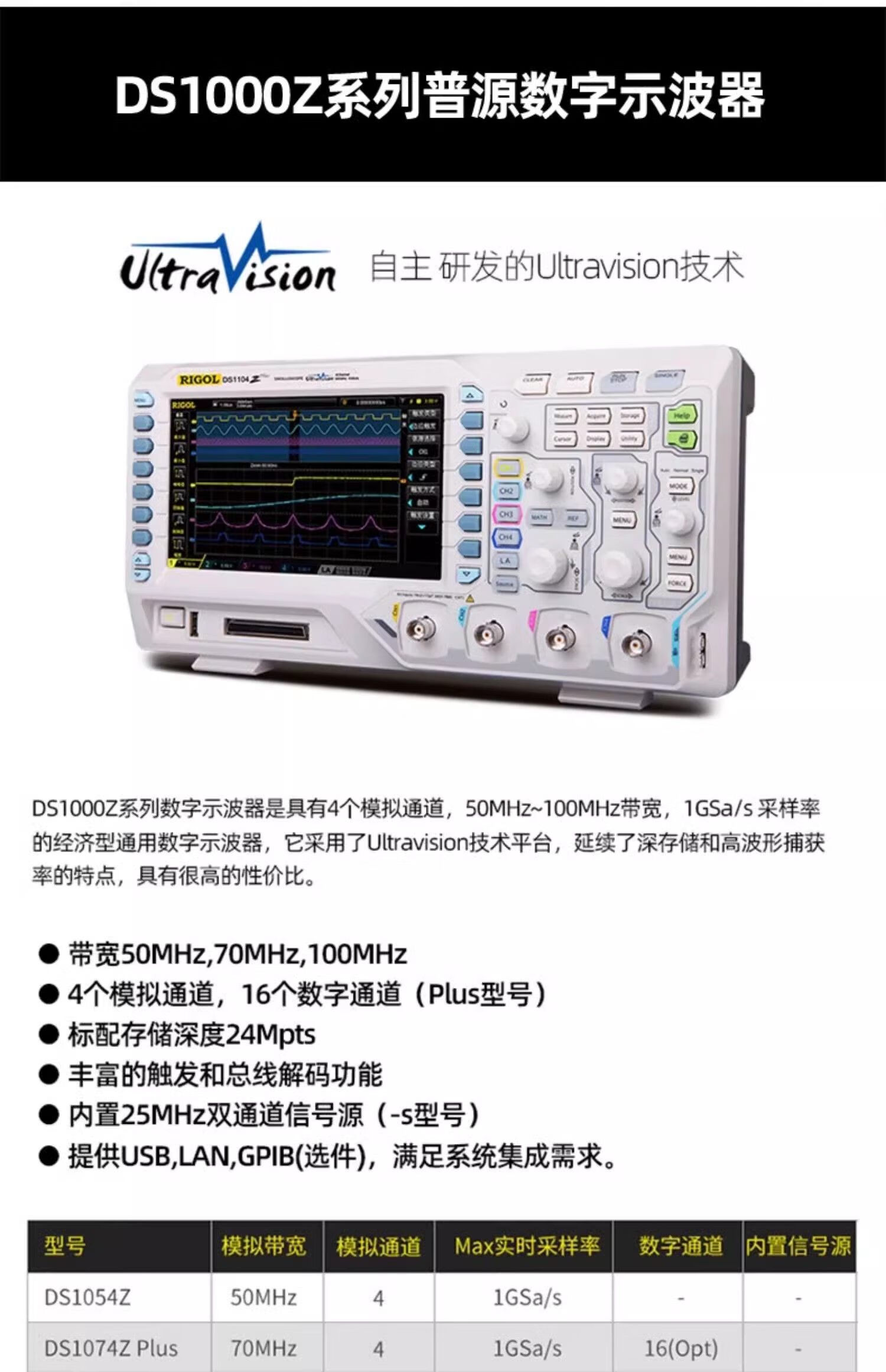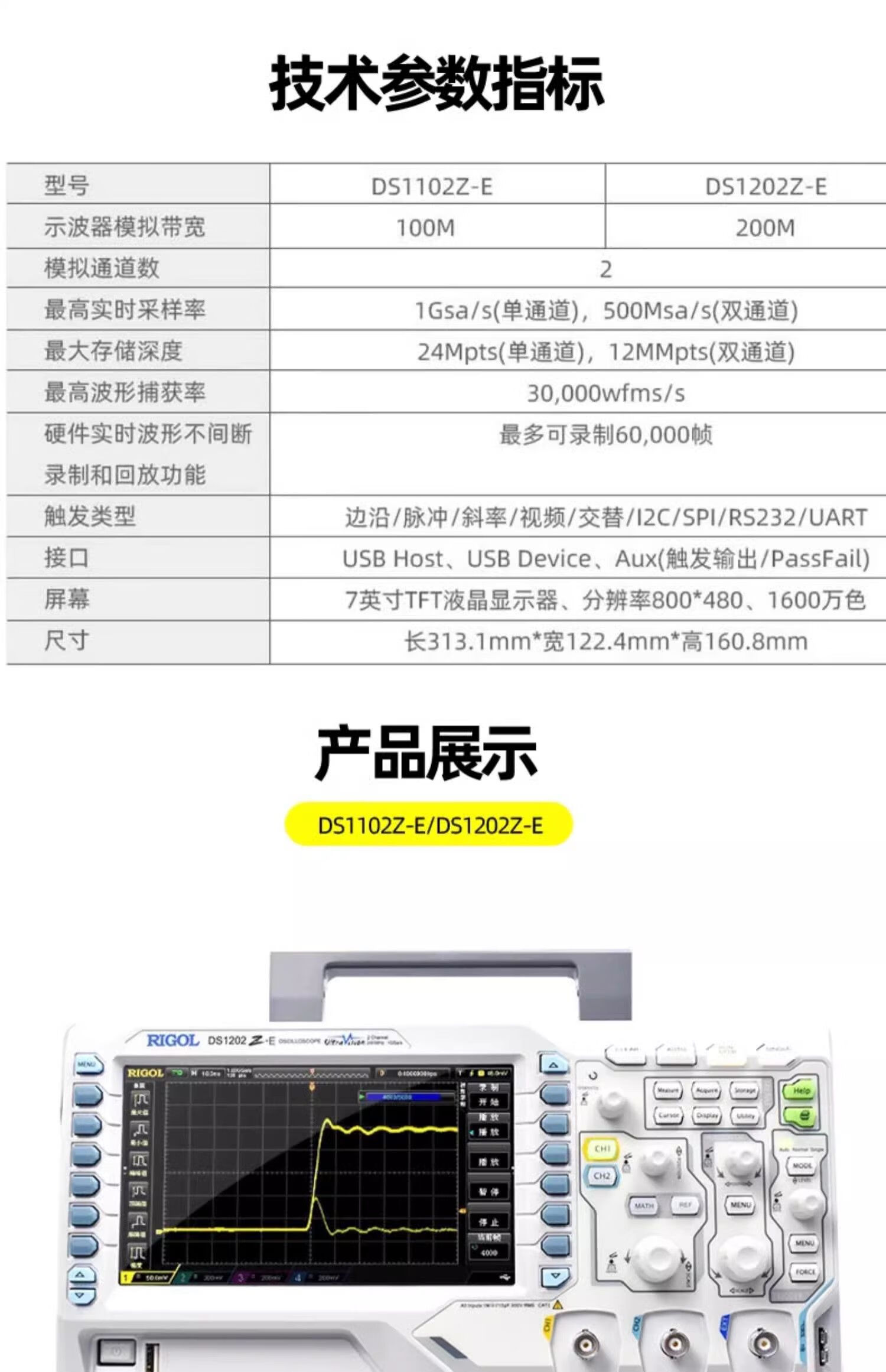 Jingdian RIGOL digital oscilloscope 24M storage 200M dual channel 1G sampling rate DS1202Z-E DS1104Z-S Plus +16 digital channel logic 10