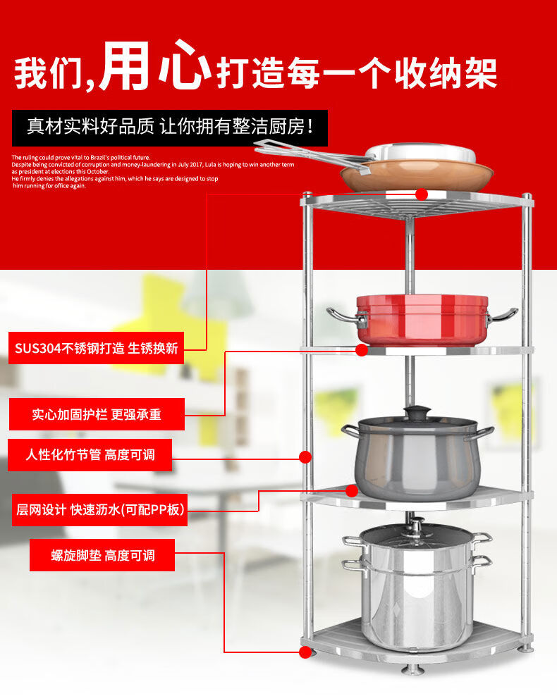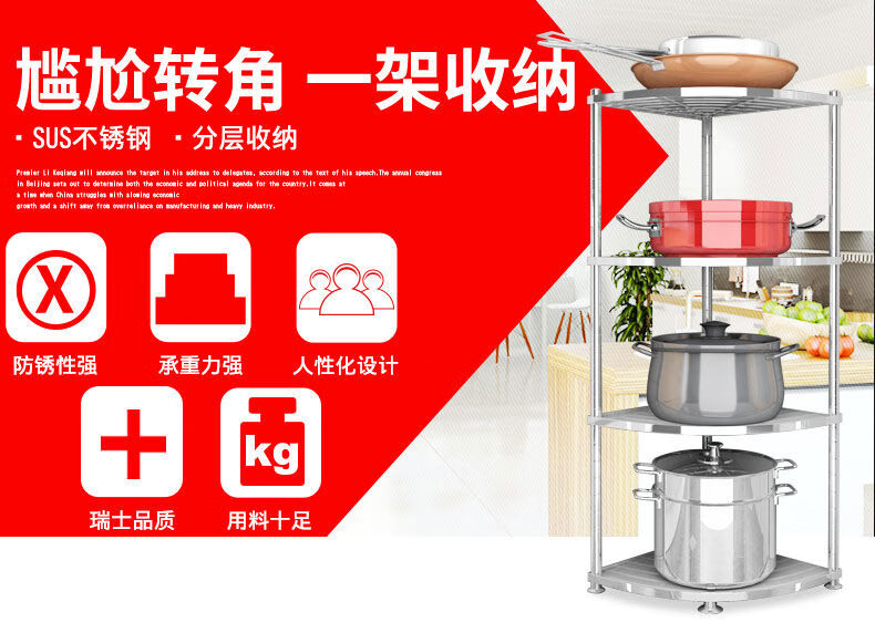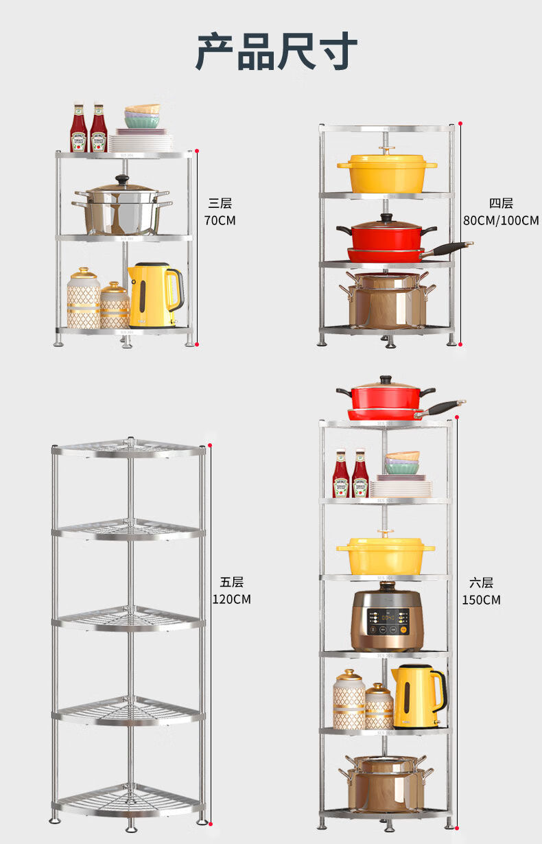 Sailotou 304 stainless steel kitchen triangle storage rack pot rack adjustable corner wall pot rack storage bathroom washbasin rack large three-layer 40*40 high 70 layer distance adjustable