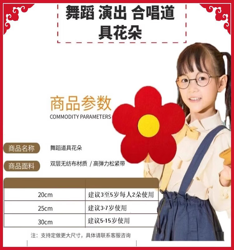 He Jiagong's Little Flower Dance Props gives you a little red flower for New Year's Day kindergarten children's chorus performance holding sunflower red flower wrist flower 20CM four pack