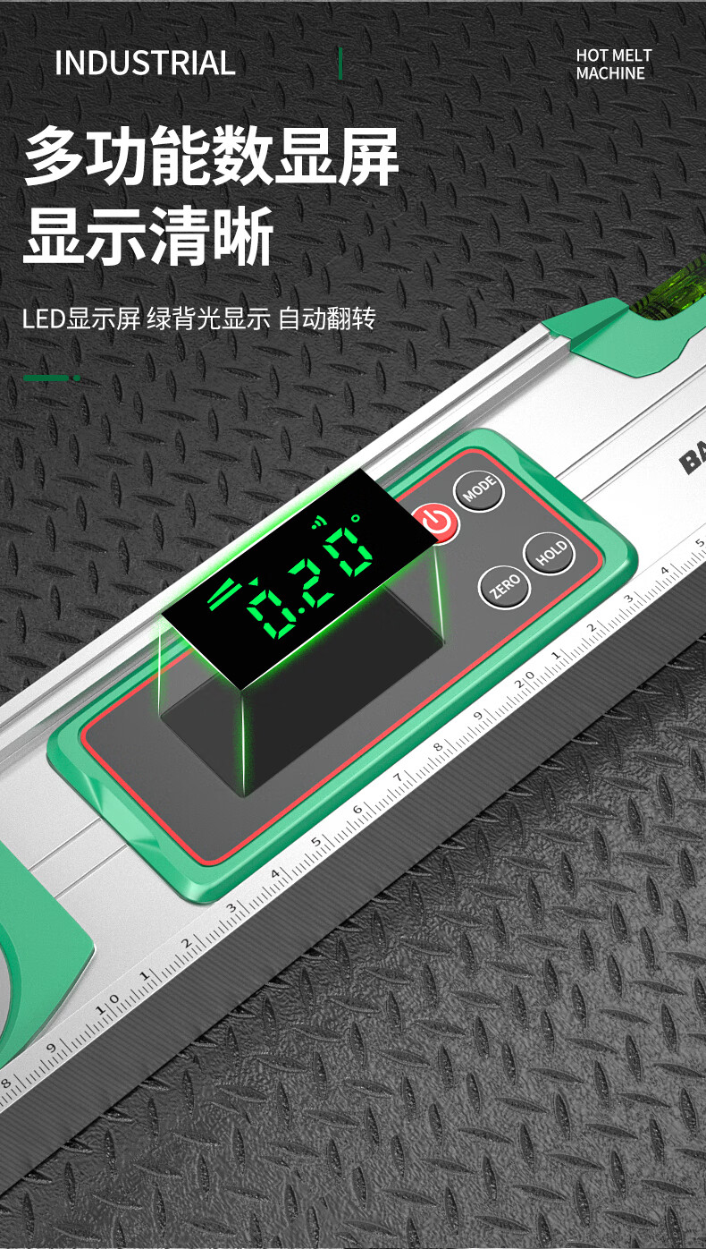 Baolian high-precision level ruler digital display electronic level angle measuring ruler small laser with strong magnetic level water ruler high-precision Silver Dragon 300 digital display laser coating hole slot