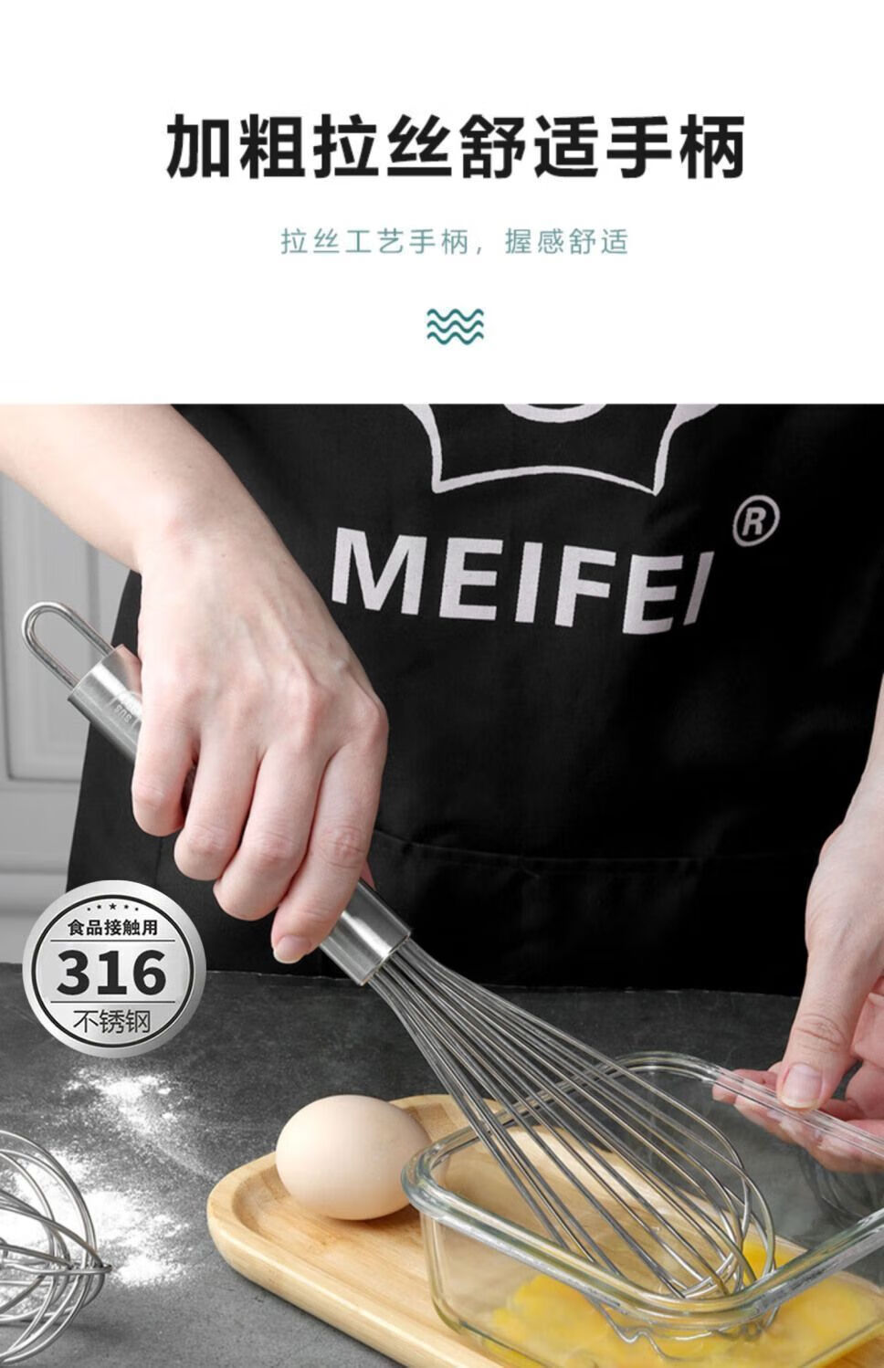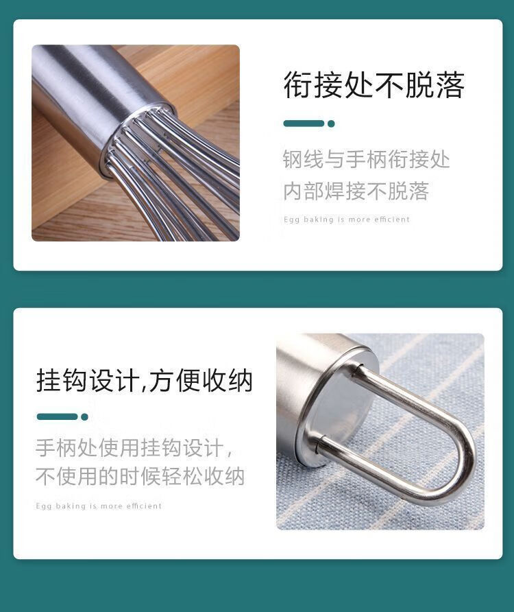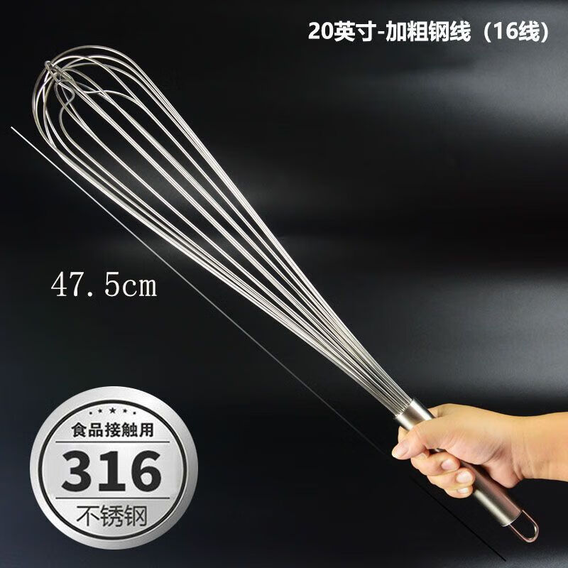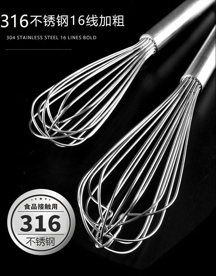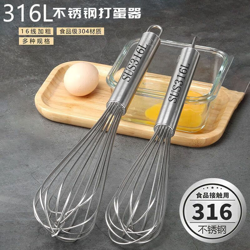 Ye Yu German 316 stainless steel manual egg beater whipped cream noodles commercial thickened and extended stirring baking artifact high quality - extra thick 316L 8-inch reinforced thread (22.5cm) - small size for household use