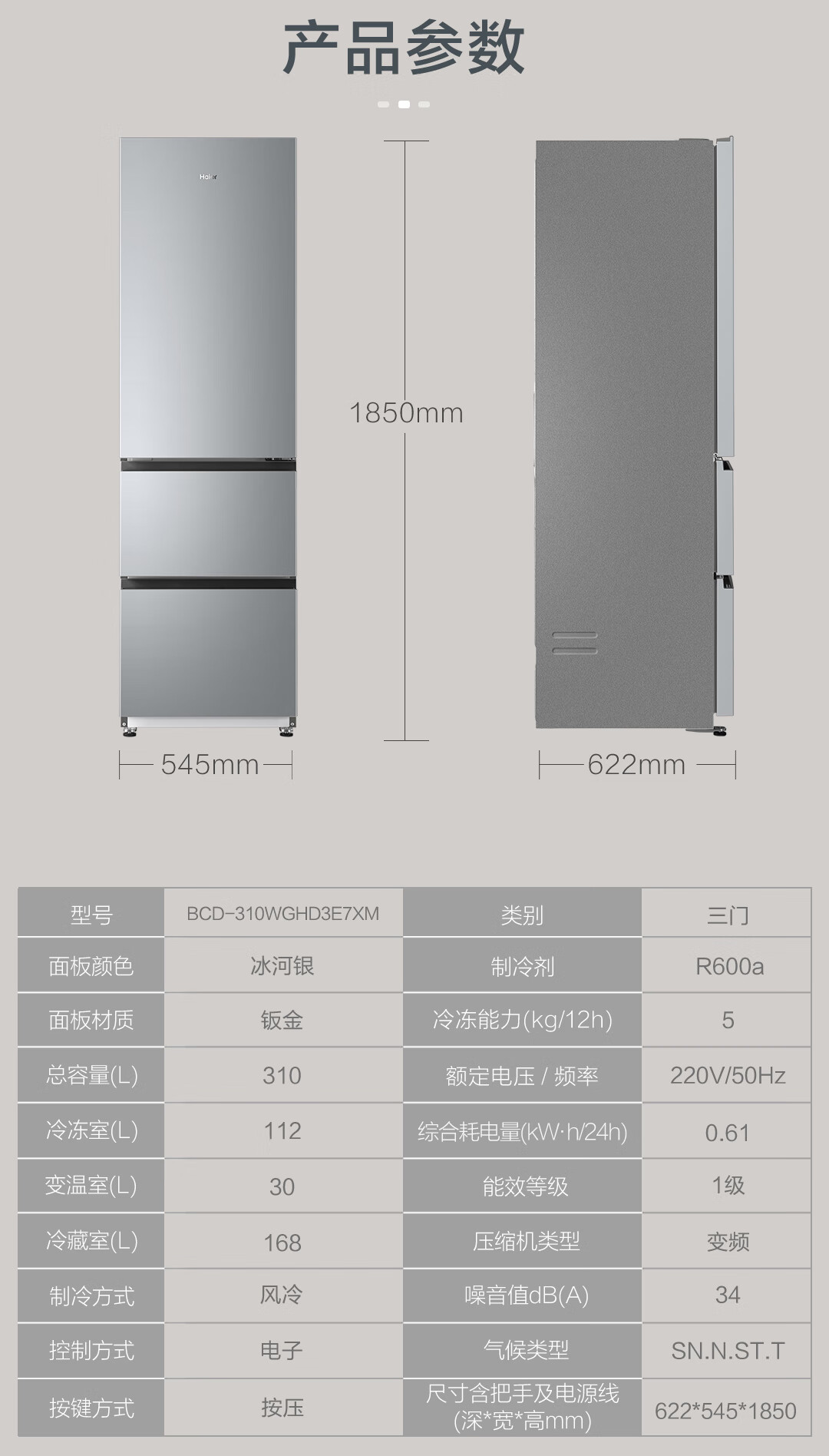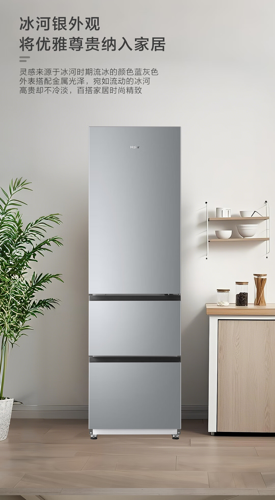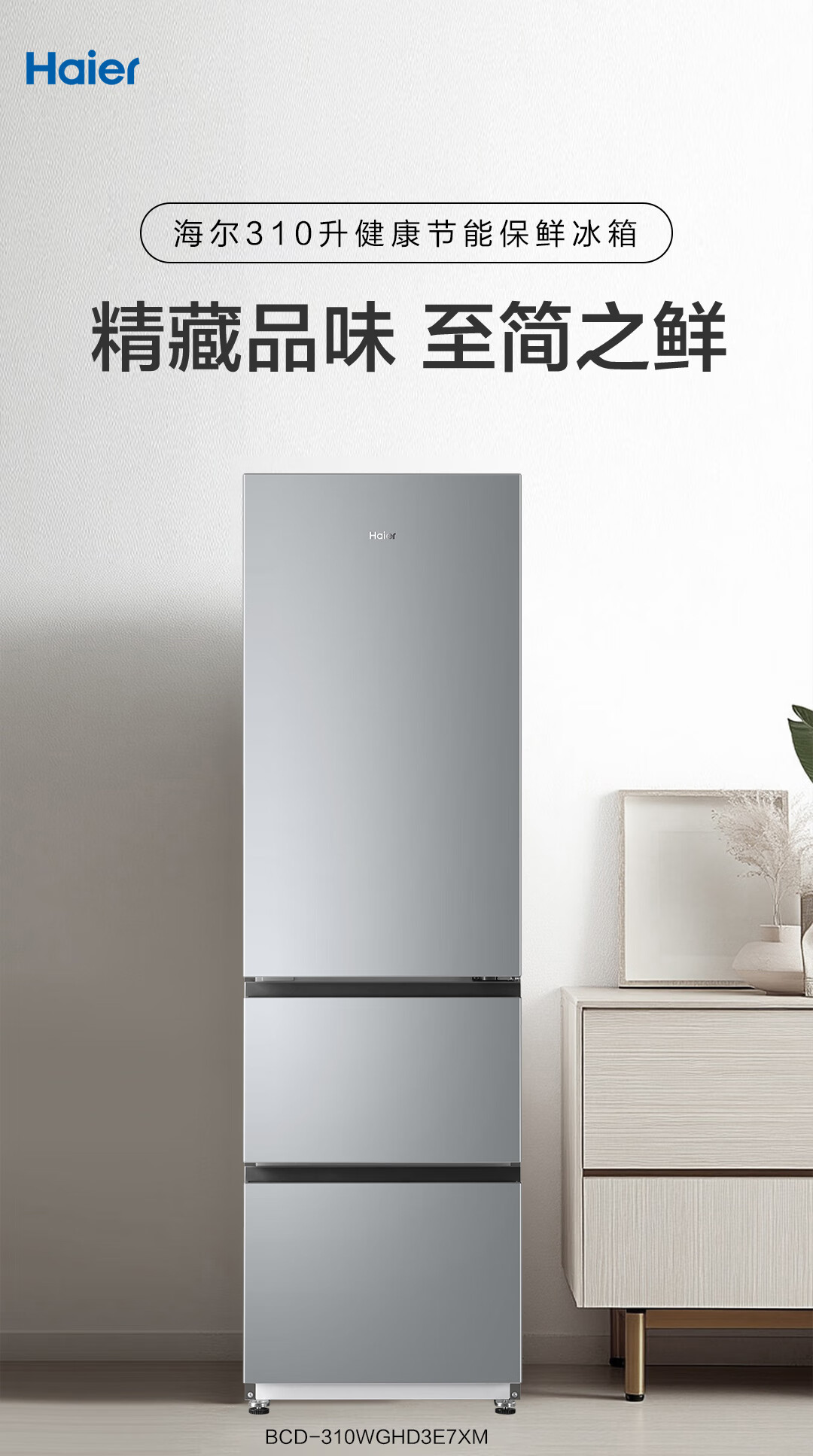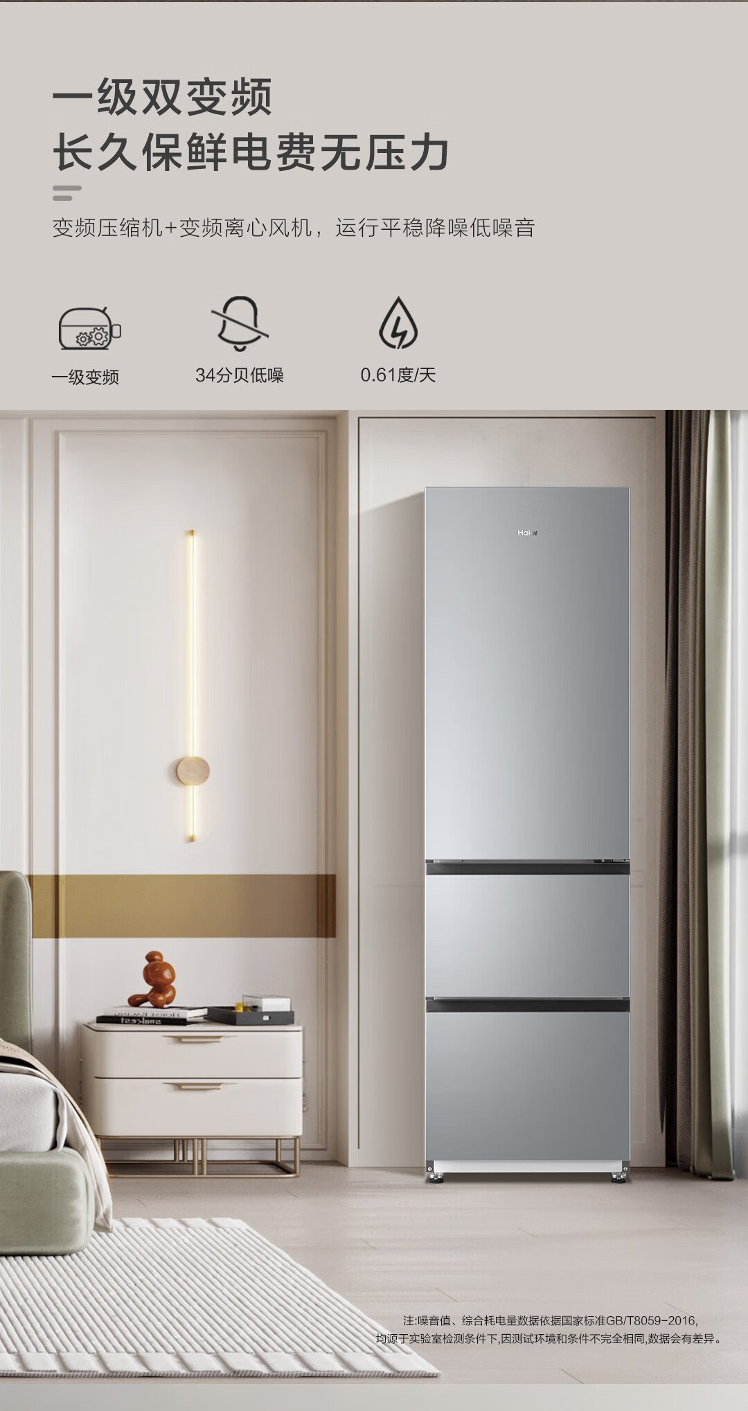 Haier refrigerator 310 liters three-door multi-door refrigerator first-class energy efficiency dual air-cooling frost-free frequency conversion energy-saving black gold purification three-speed variable temperature rental household large-capacity refrigerator